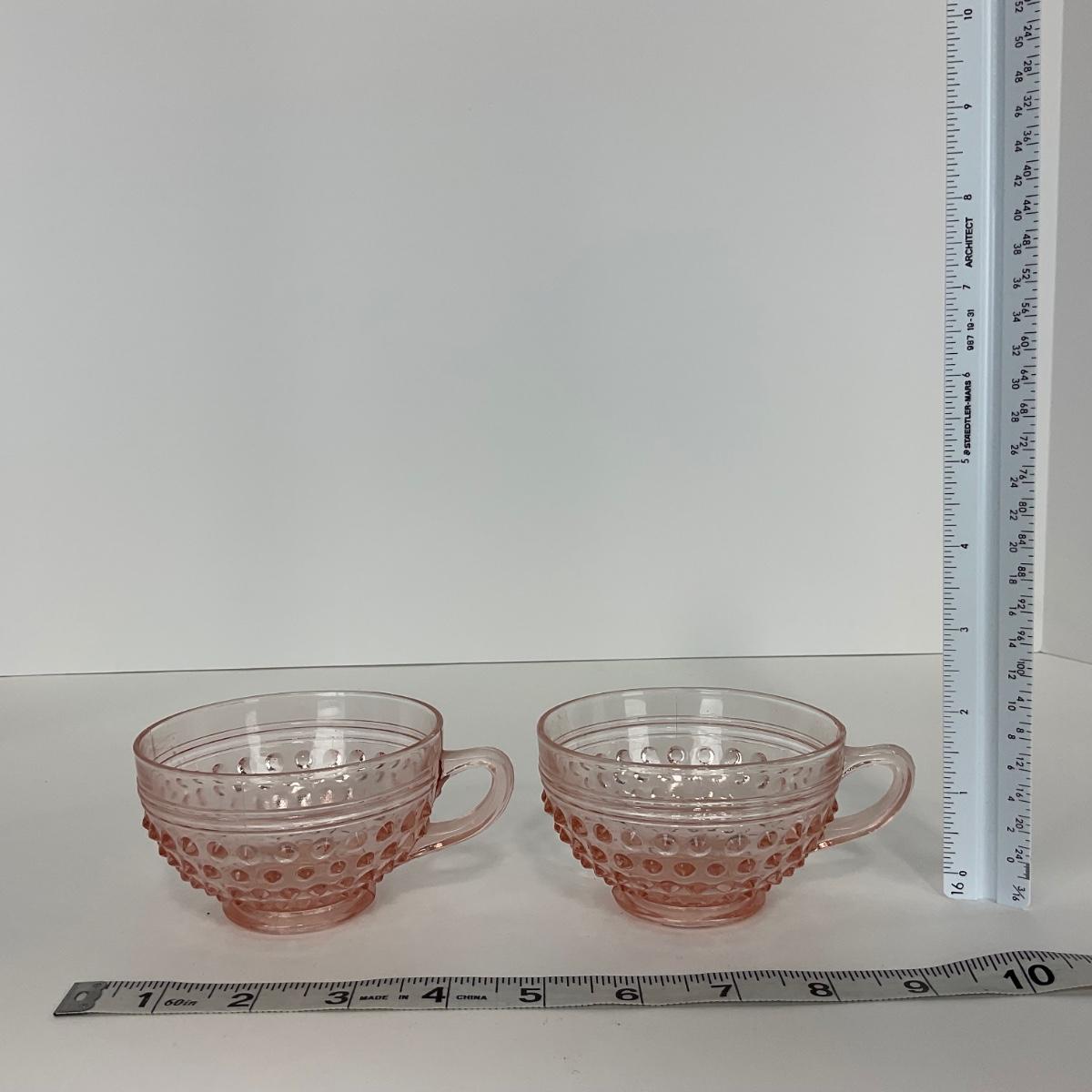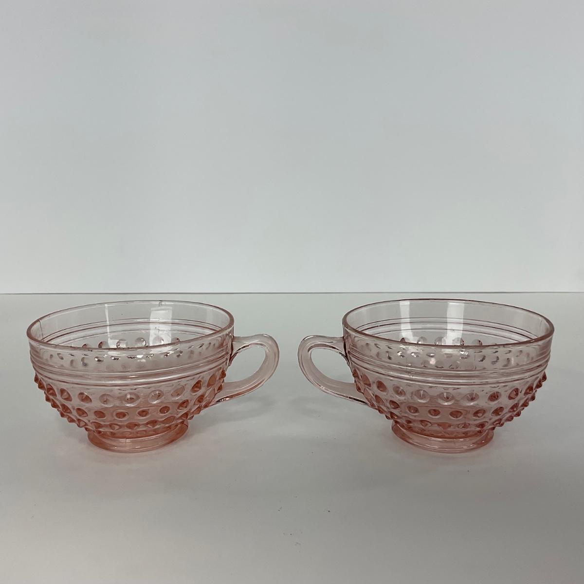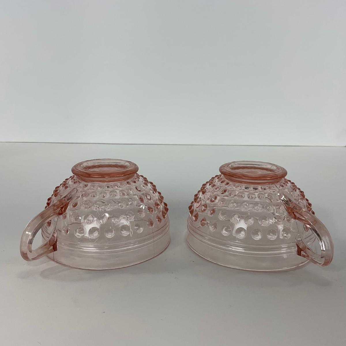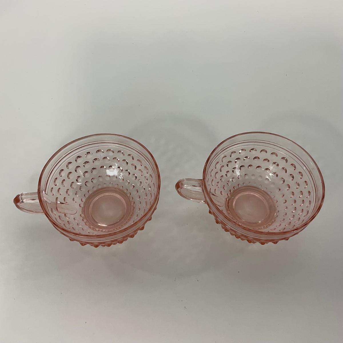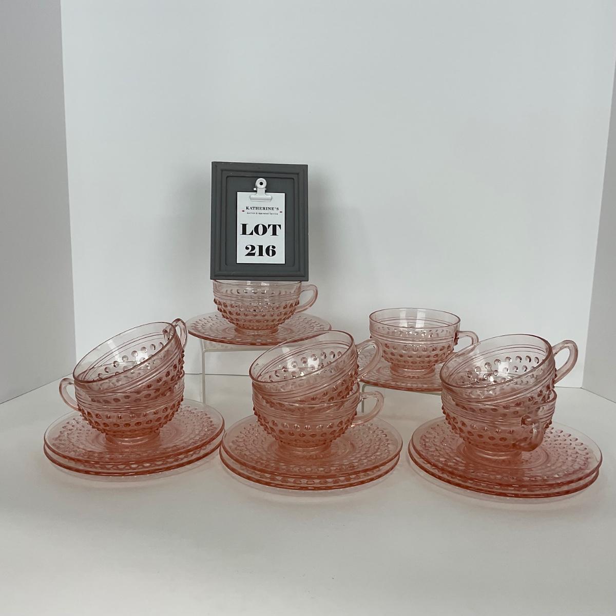 -216- GLASSWARE | Pink Hobnail Hocking Glass Co. | Cups & Saucers