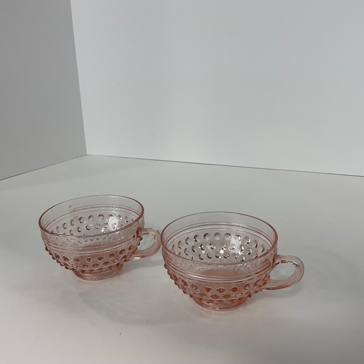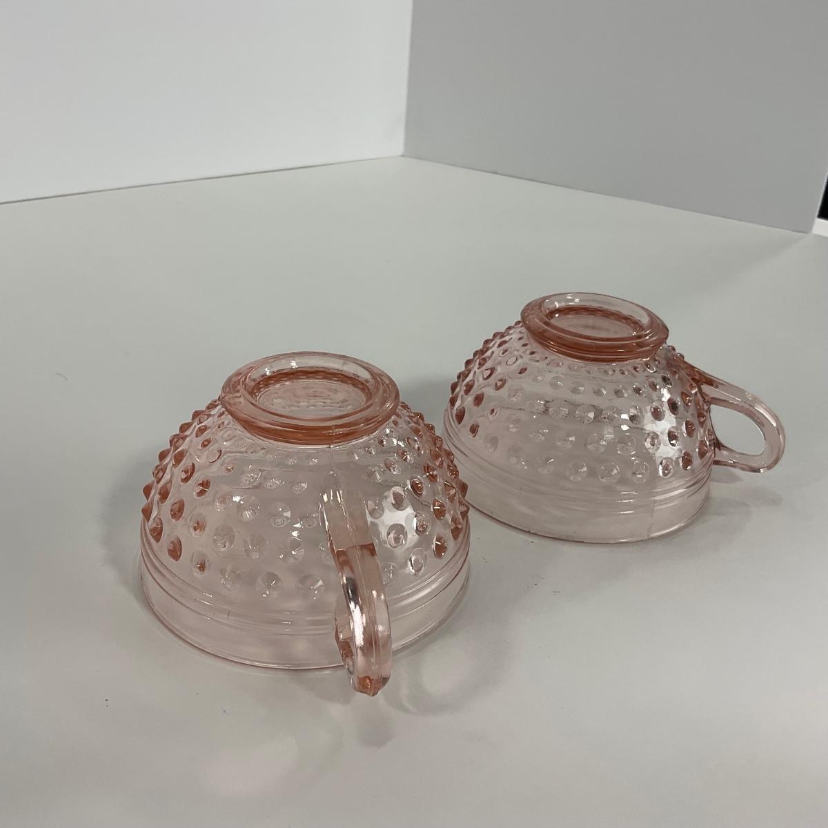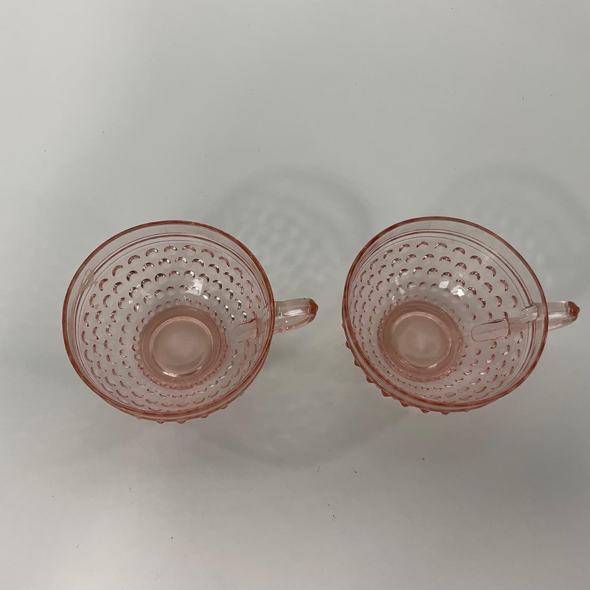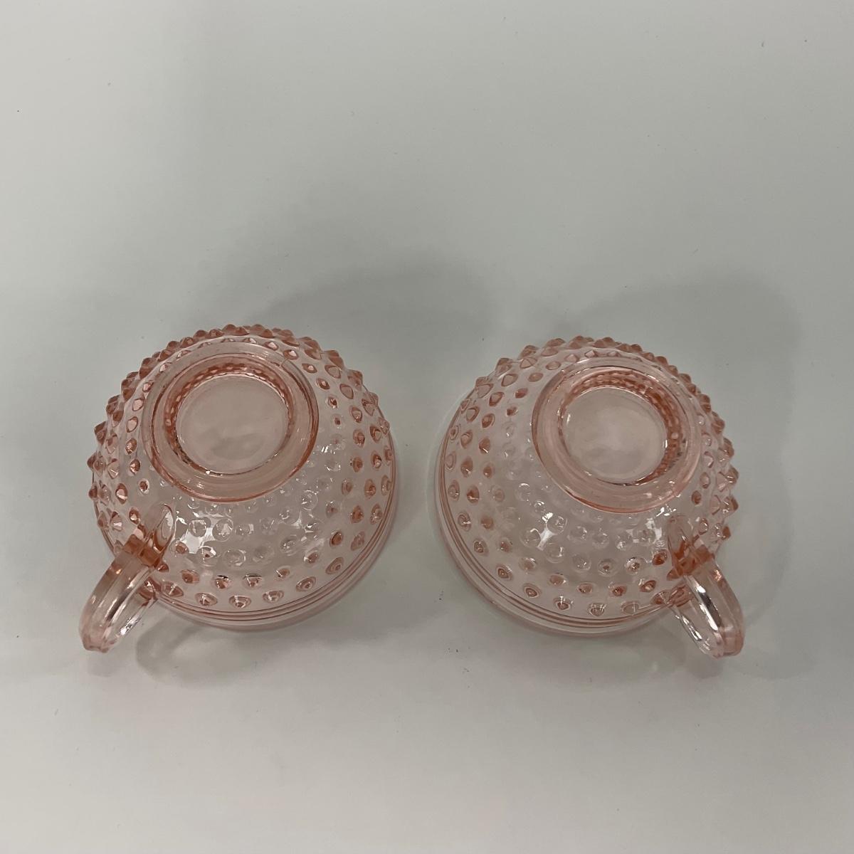 -216- GLASSWARE | Pink Hobnail Hocking Glass Co. | Cups & Saucers