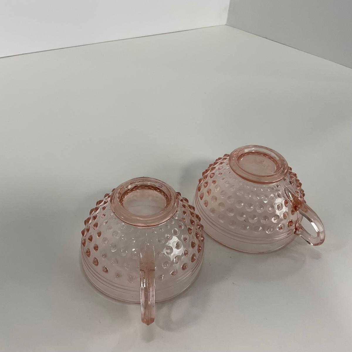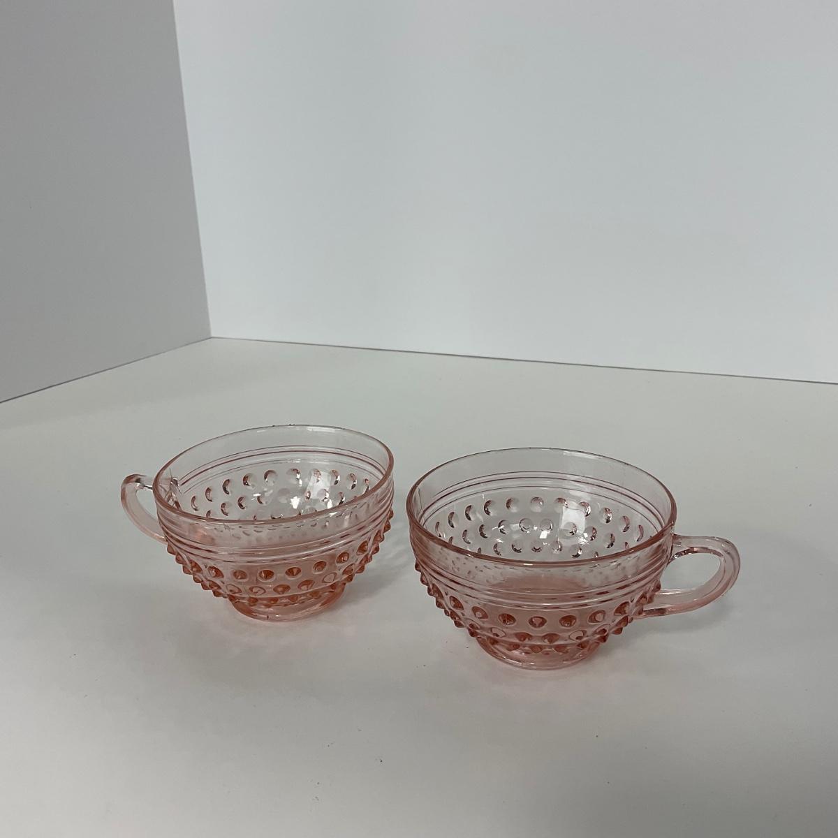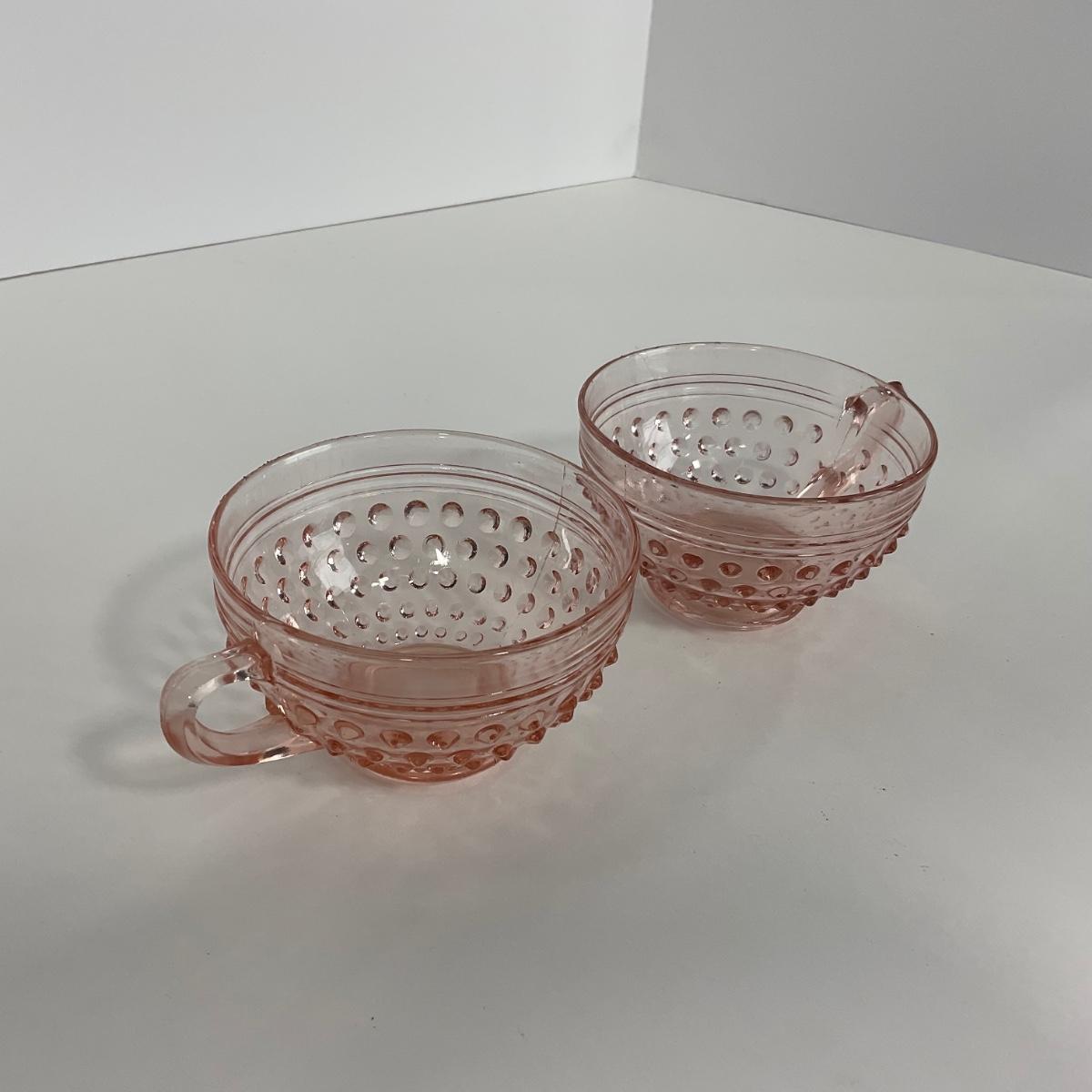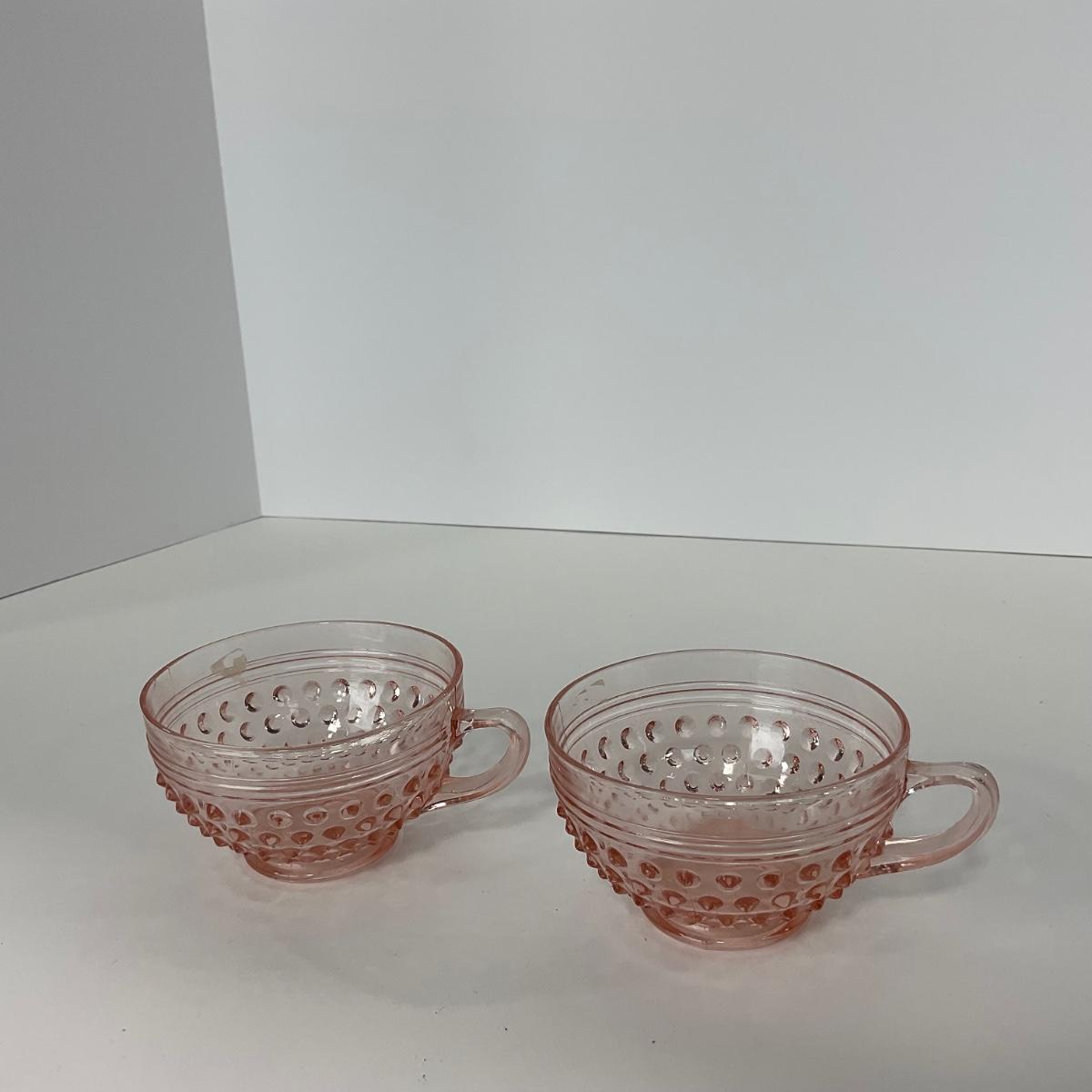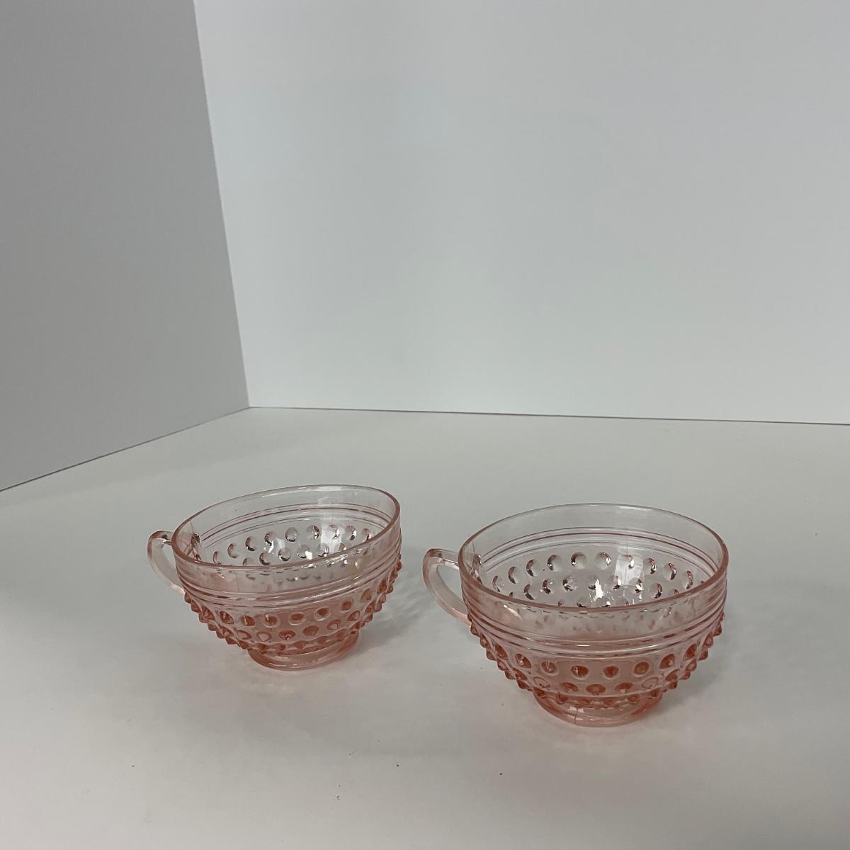 -216- GLASSWARE | Pink Hobnail Hocking Glass Co. | Cups & Saucers