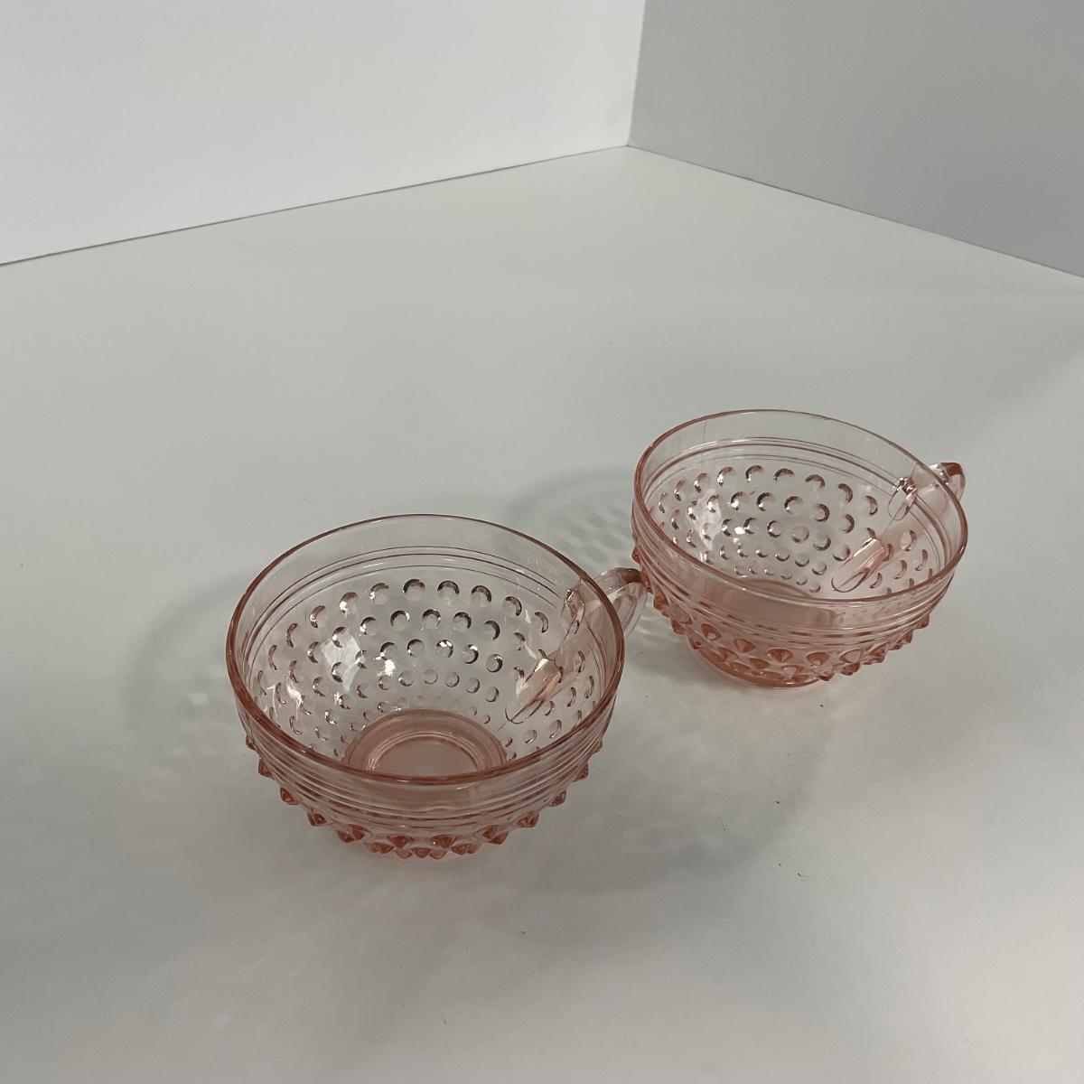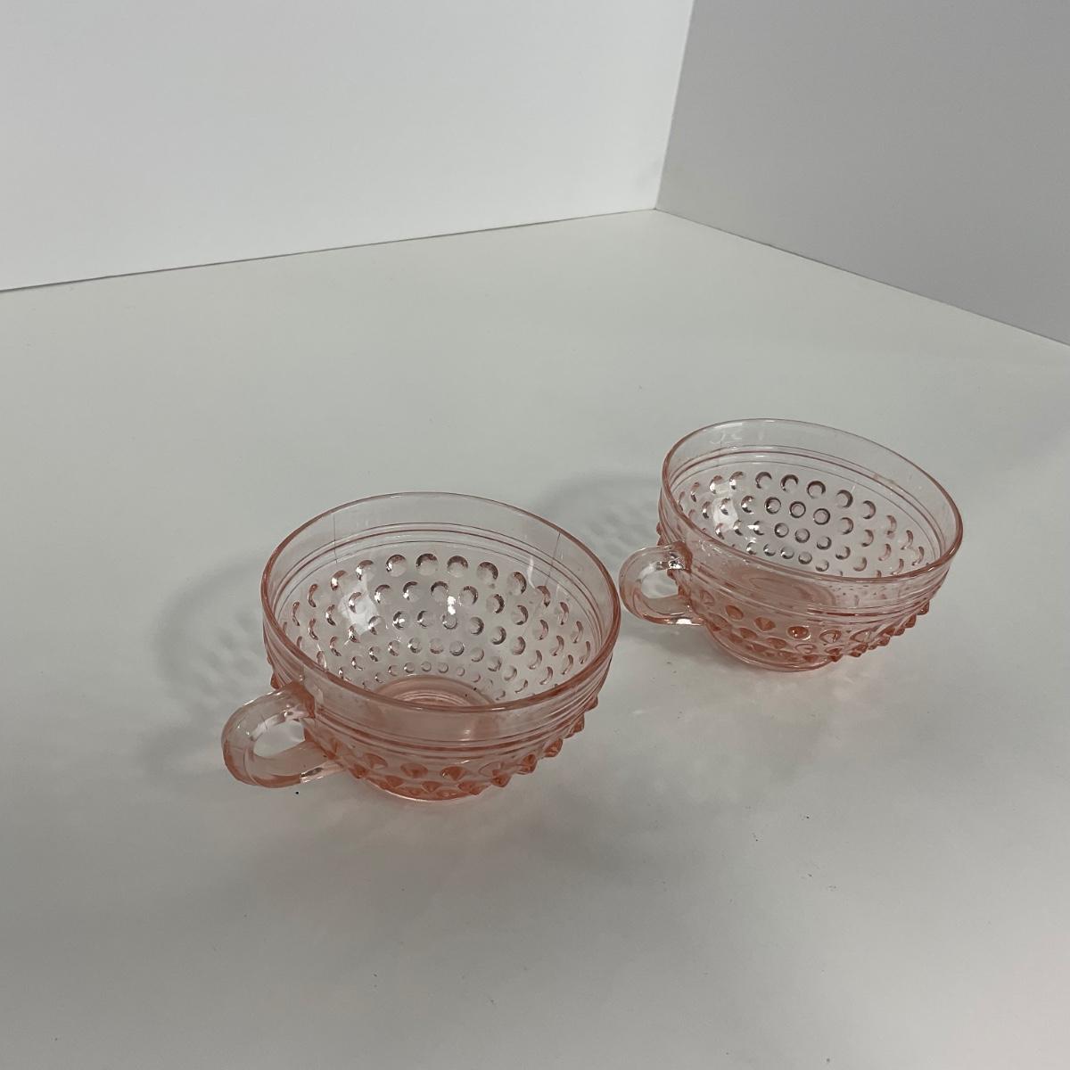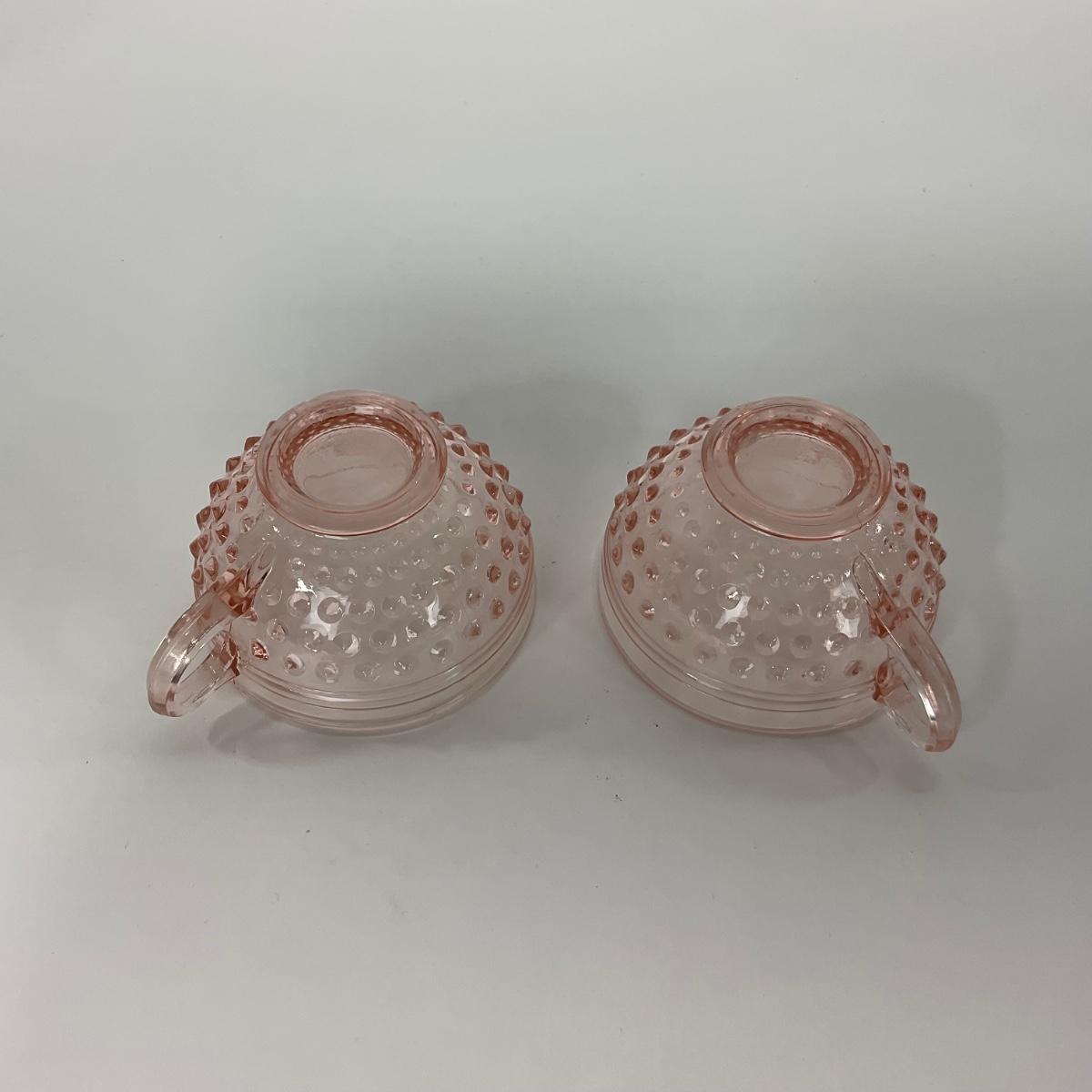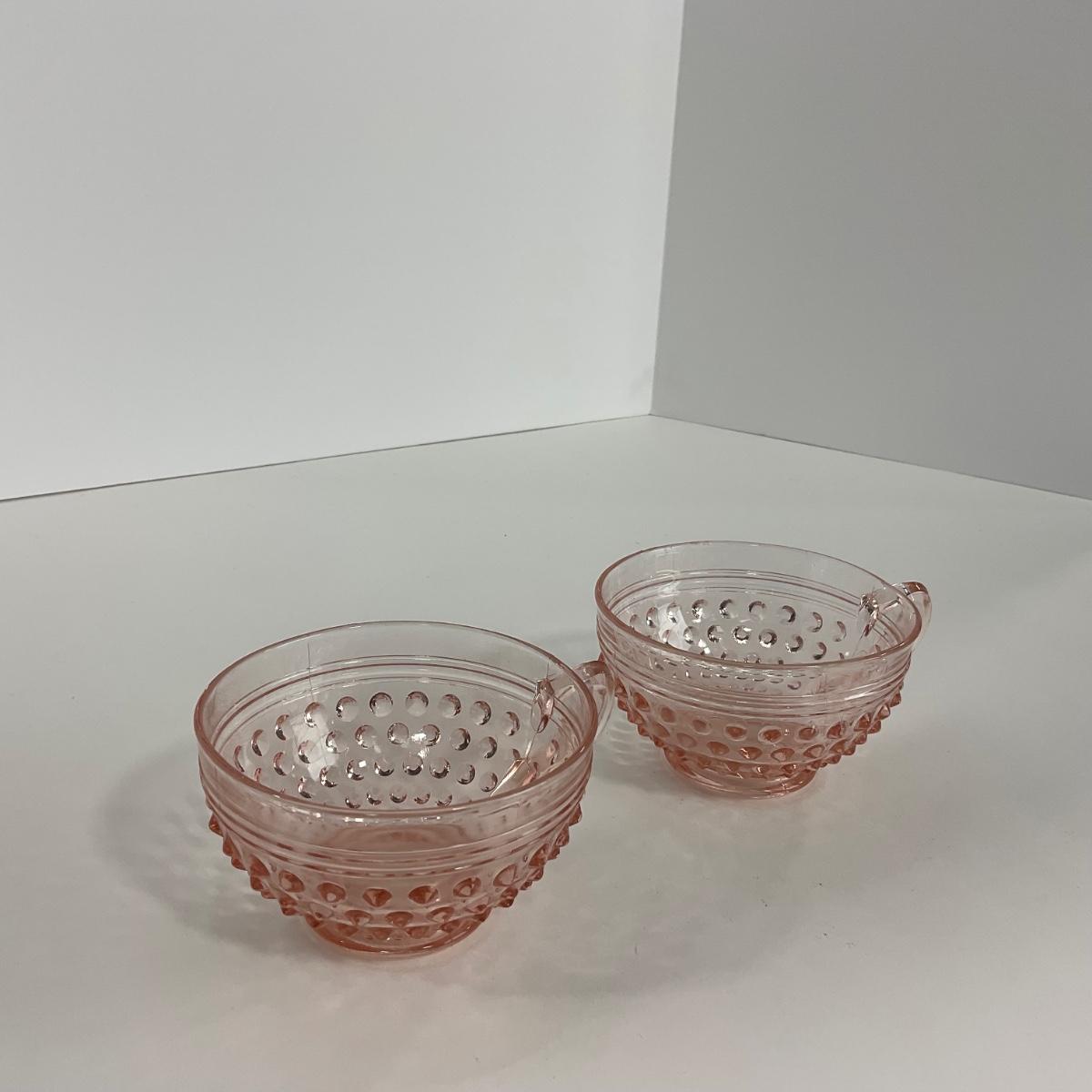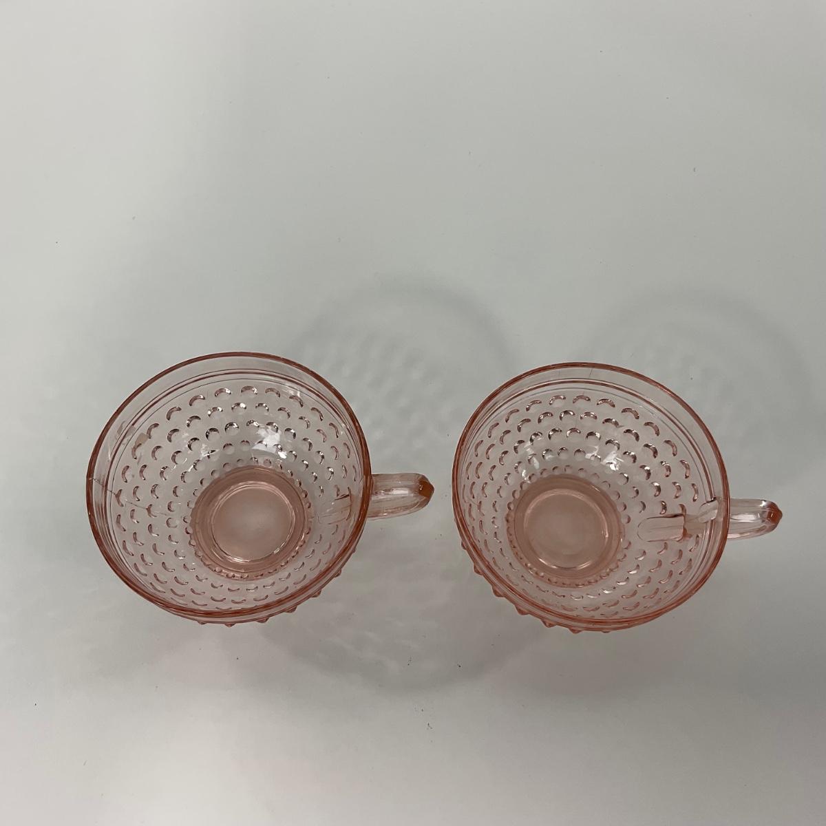 -216- GLASSWARE | Pink Hobnail Hocking Glass Co. | Cups & Saucers