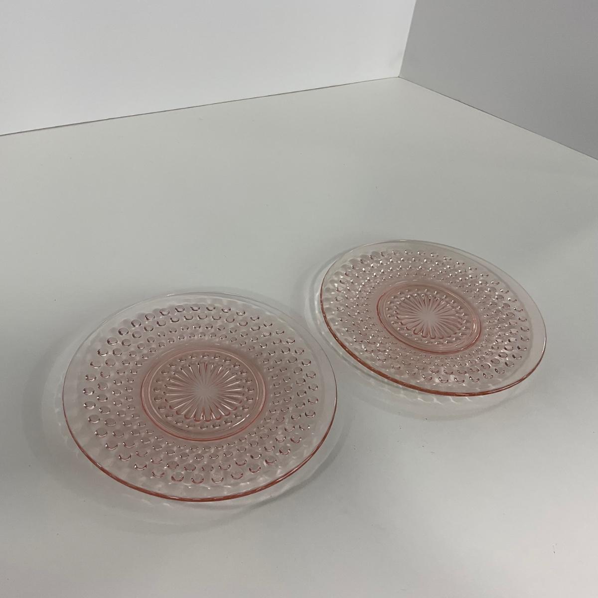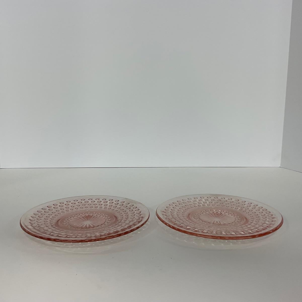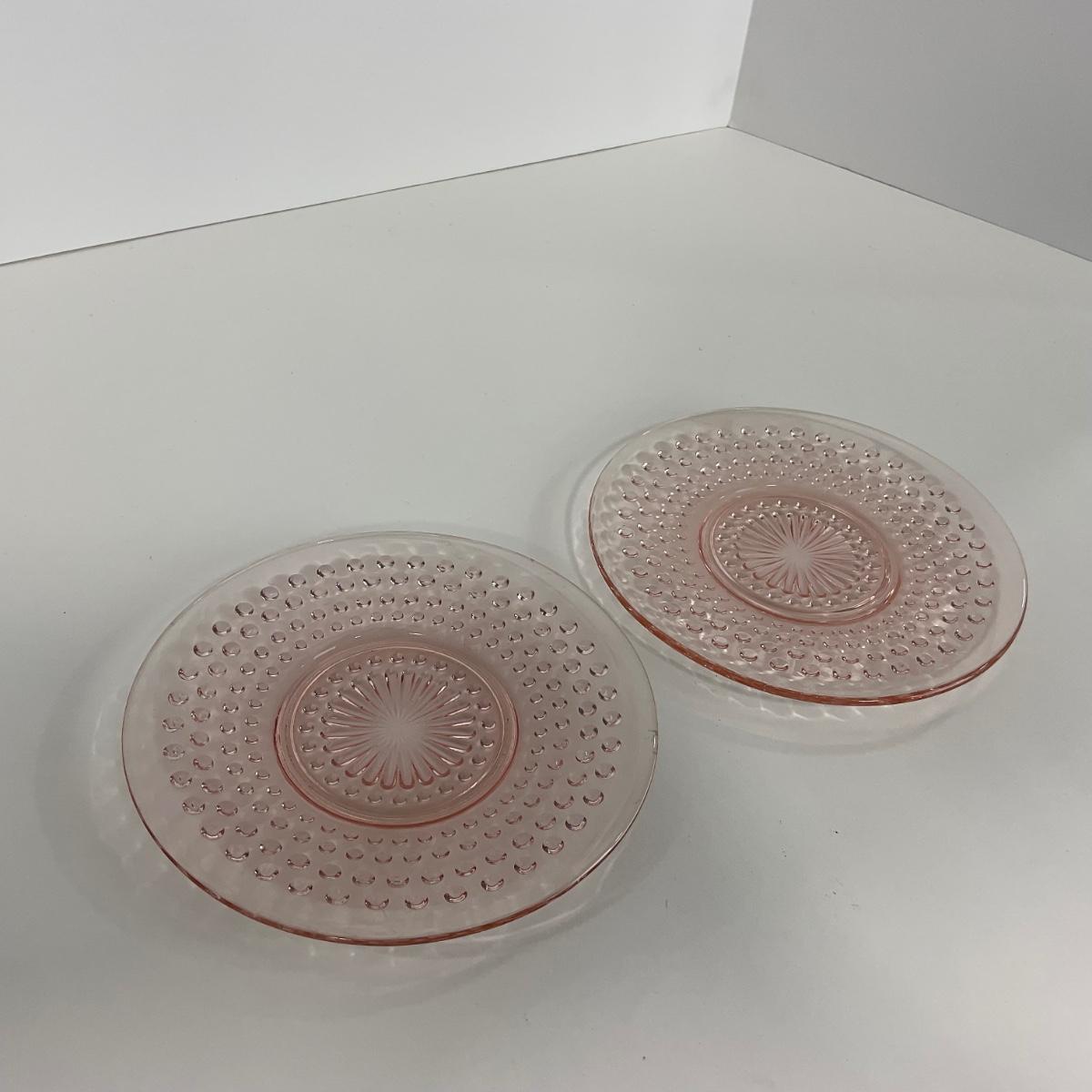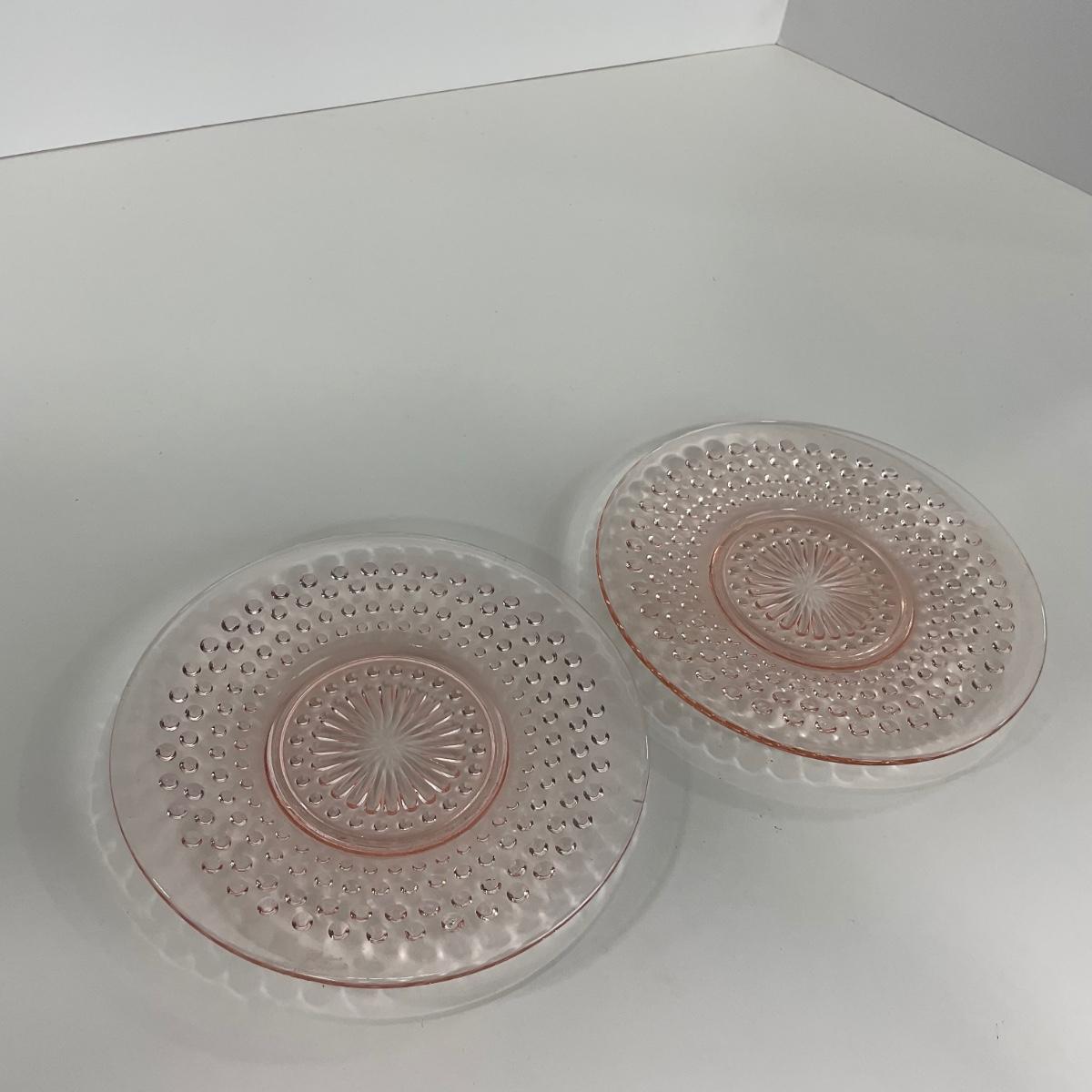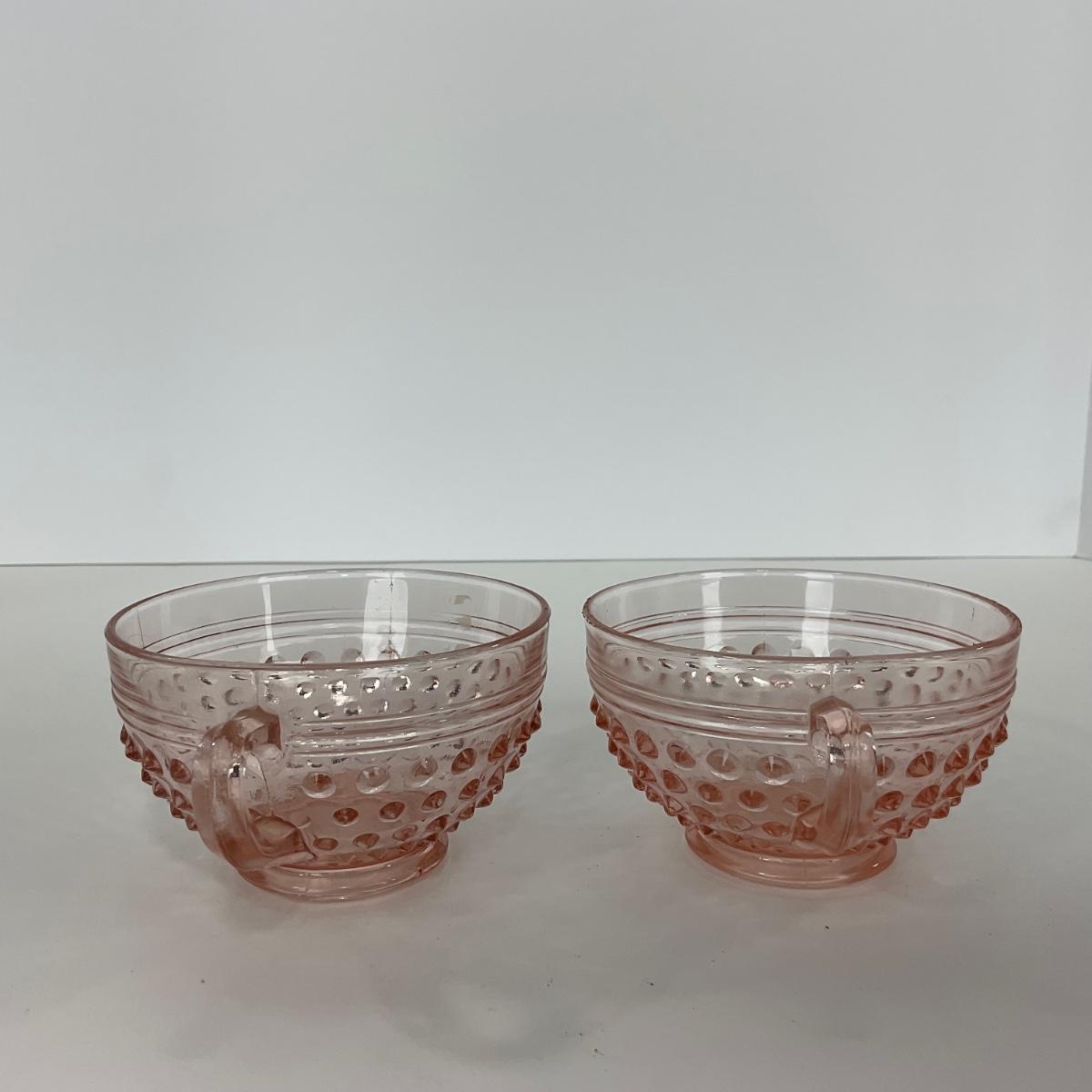 Twenty pieces of pink Hobnail Hocking Glass Co. (1934-1936) including ten cups and ten saucers. Please see photos for details and condition. ::: Shipping is available on this lot. If you require shipping you must let us know at the close of the auction. We will coordinate with you after the item has been won. Shipping fees will include insurance up to or exceeding the value of all items being mailed. If you have any questions regarding this lot please contact the auctioneer either via this website, by direct email or by phone. PICK UP TIMES and other important information can be found in the TERMS and DESCRIPTION of the auction. Please take a look for pertinent information. Thanks!
