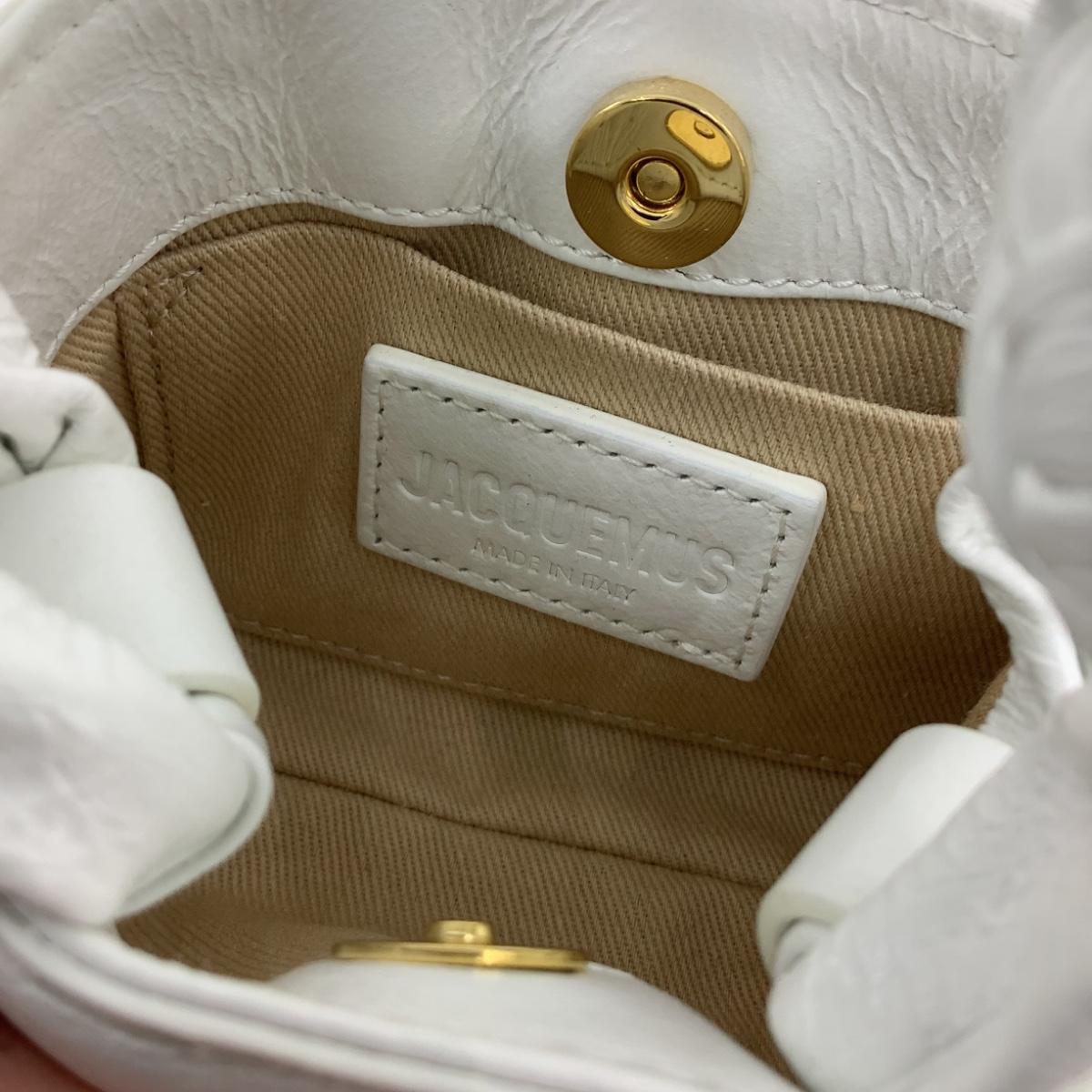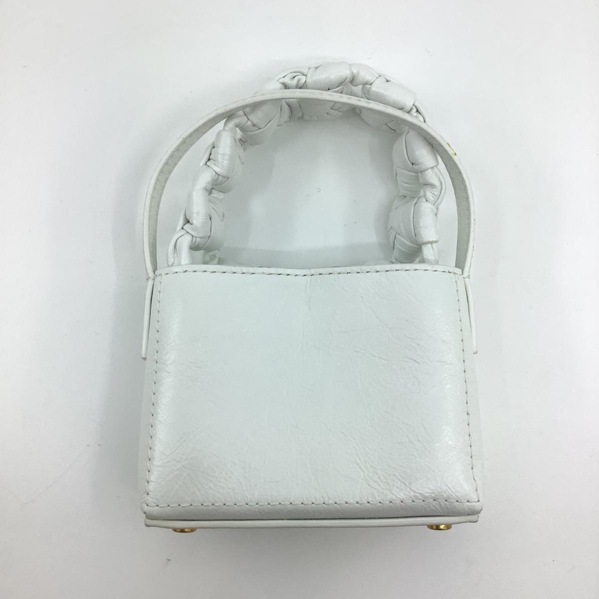 Like new grained white leather, textile beige interior, bottom bumper studs.