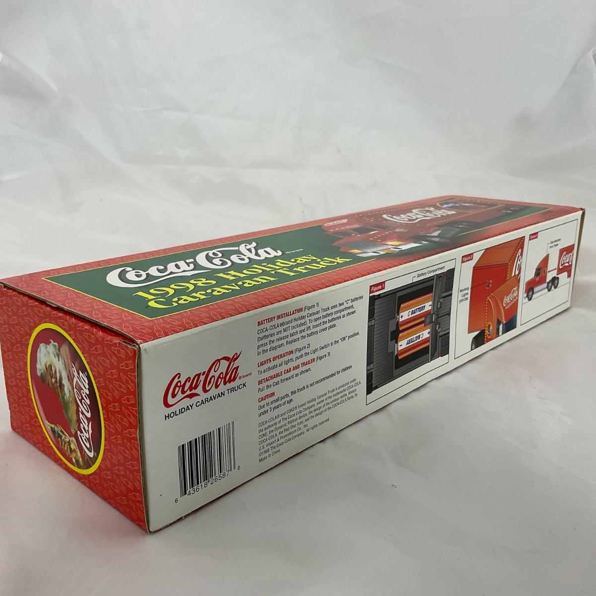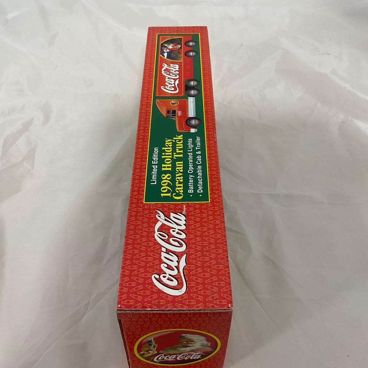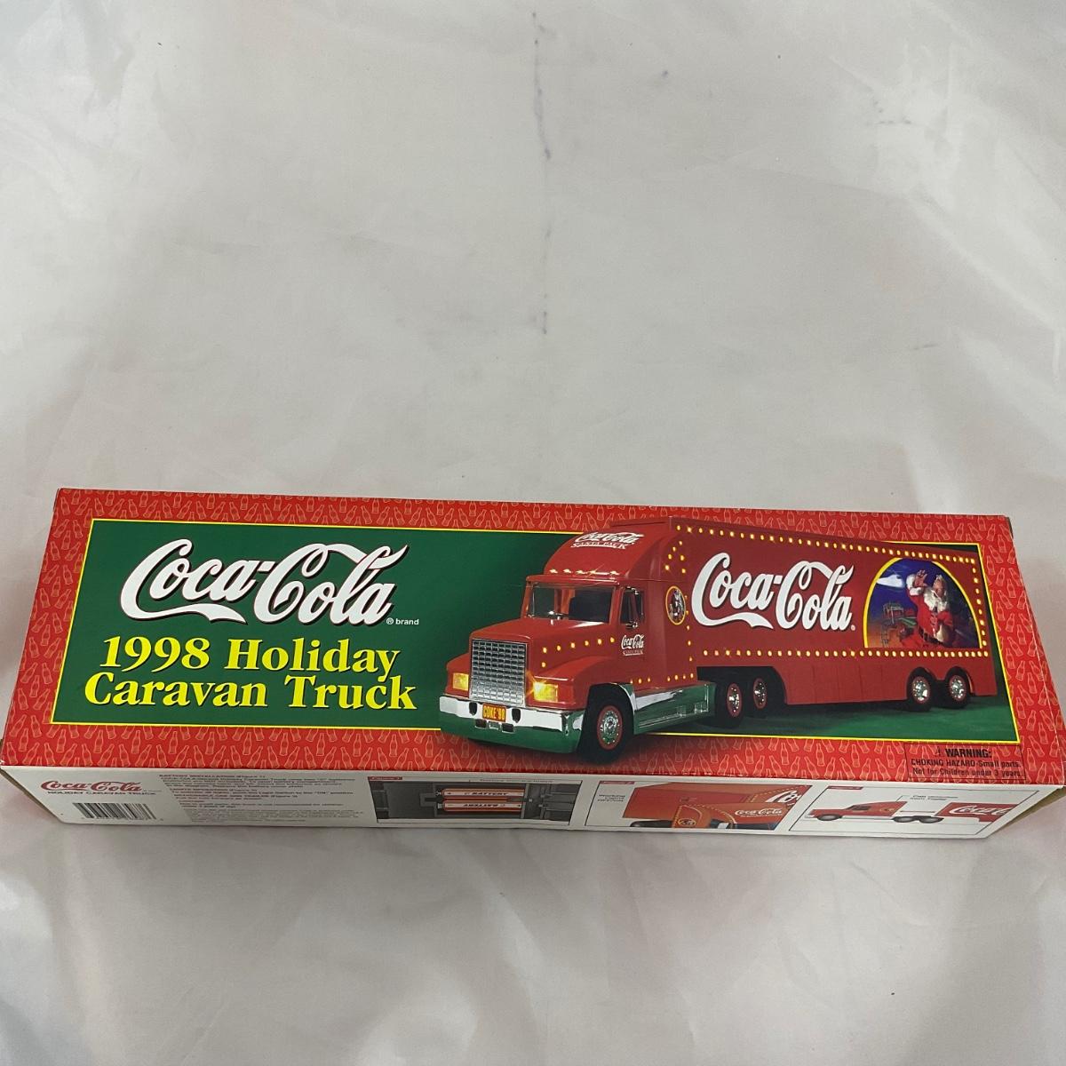 One 1998 Holiday Caravan Truck Coca-Cola with box Please see photos for details and condition. ::: Shipping is available on this lot. If you require shipping you must let us know at the close of the auction. We will coordinate with you after the item has been won. Shipping fees will include insurance up to or exceeding the value of all items being mailed. If you have any questions regarding this lot please contact the auctioneer either via this website, by direct email or by phone. PICK UP TIMES and other important information can be found in the TERMS and DESCRIPTION of the auction. Please take a look for pertinent information. Thanks!