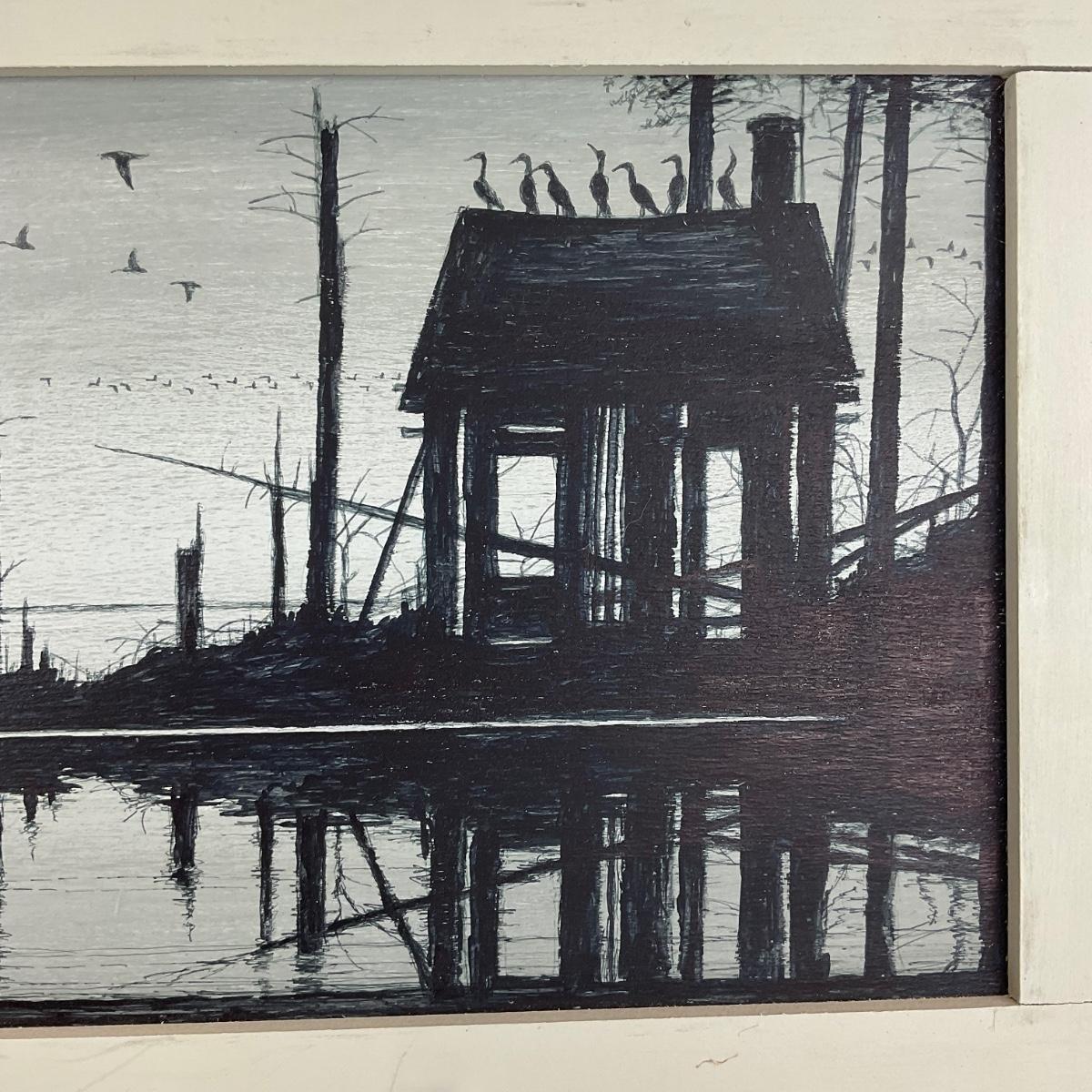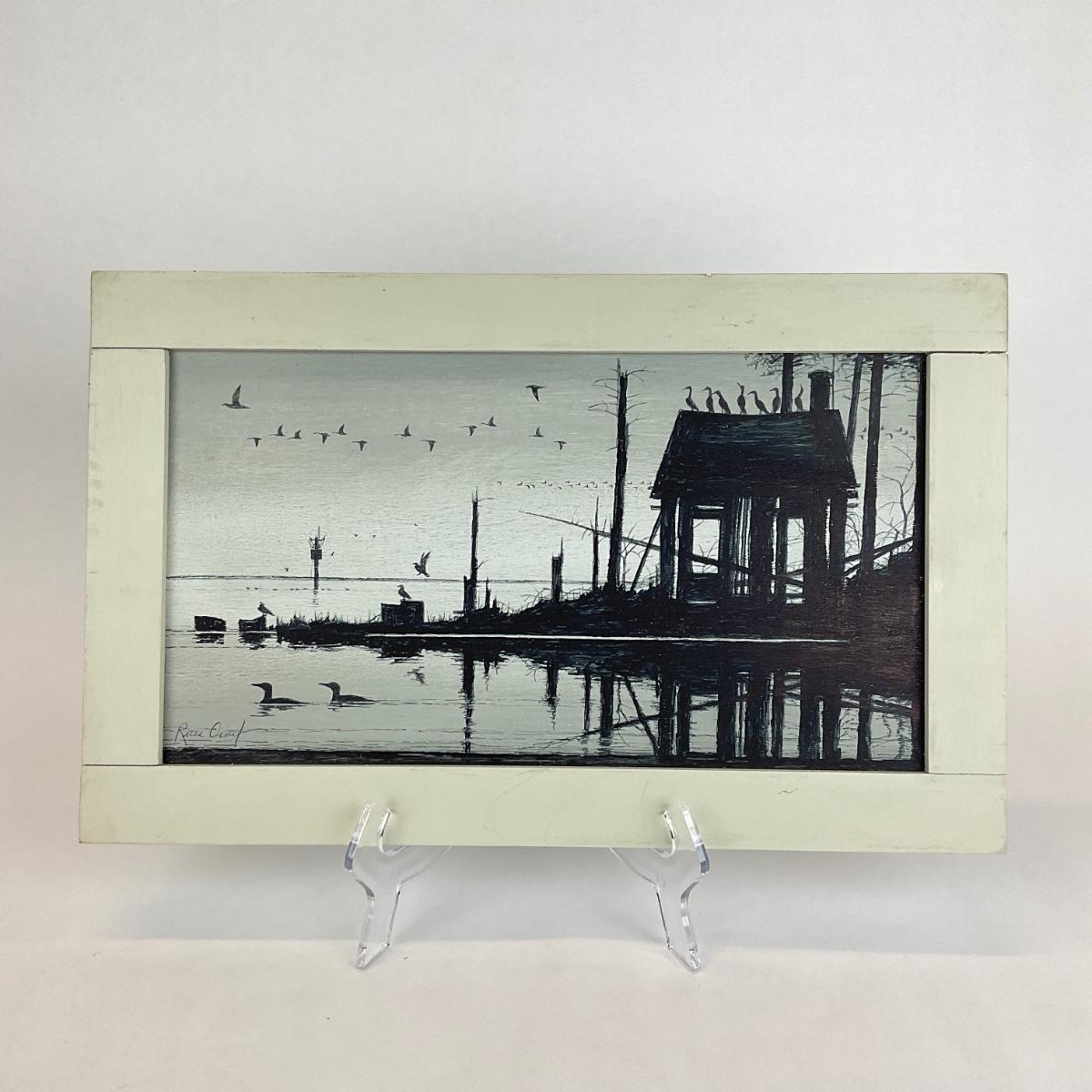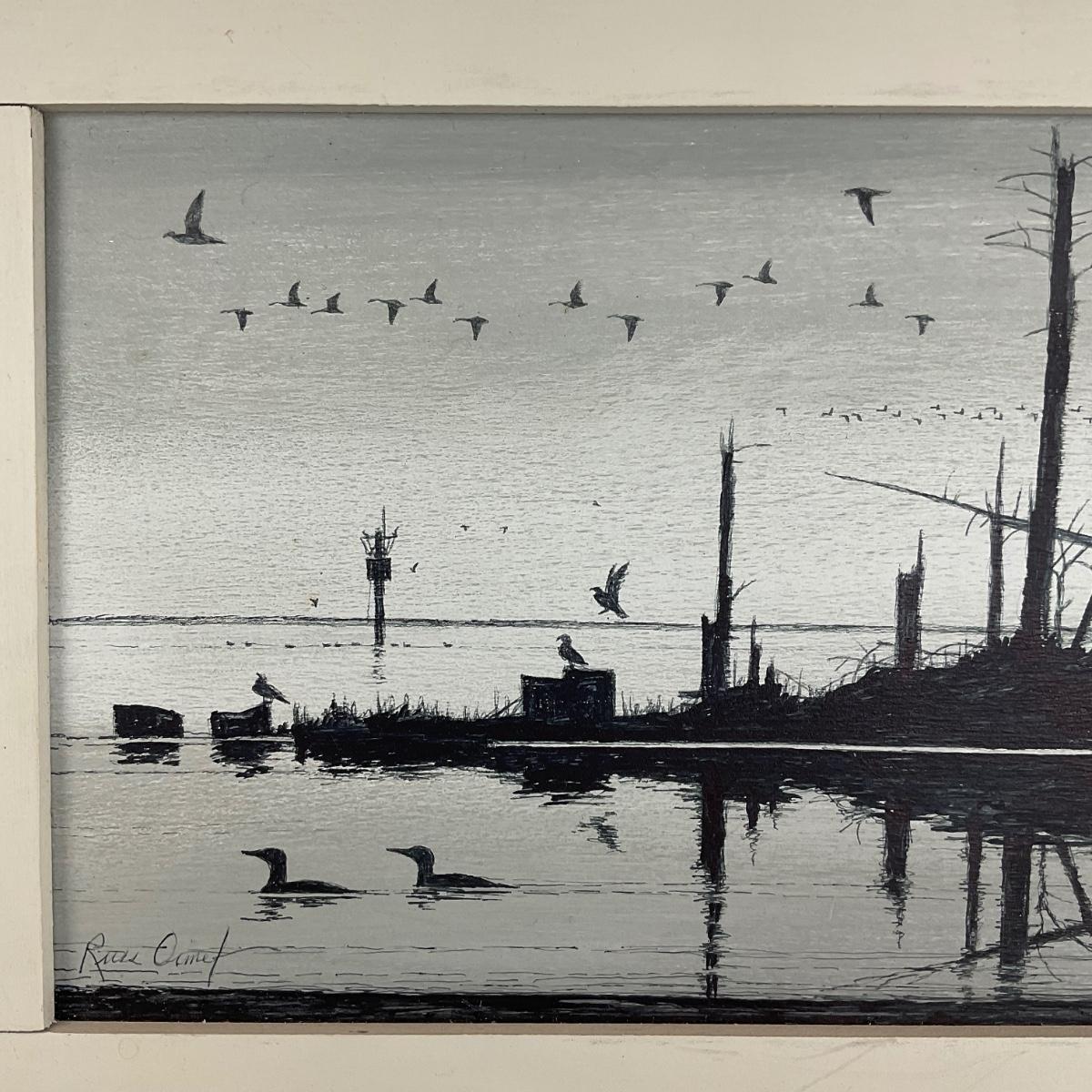 216 Russ Orme Original Pen & Ink on Wood Waterfowl Scene