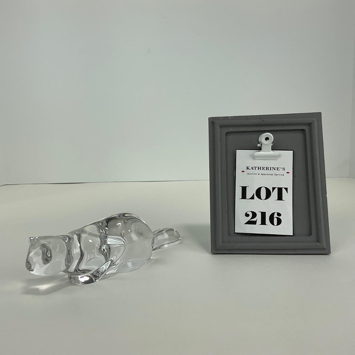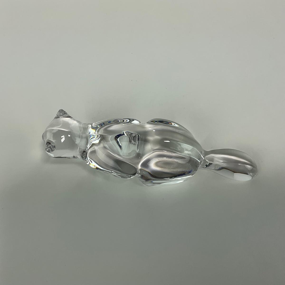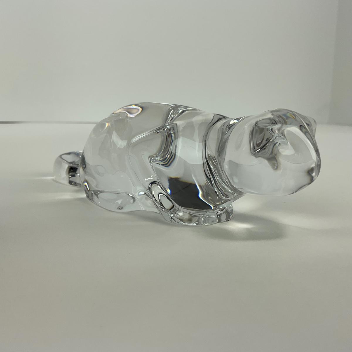 -216- UNMARKED | Clear Glass Crouching Cat Figure