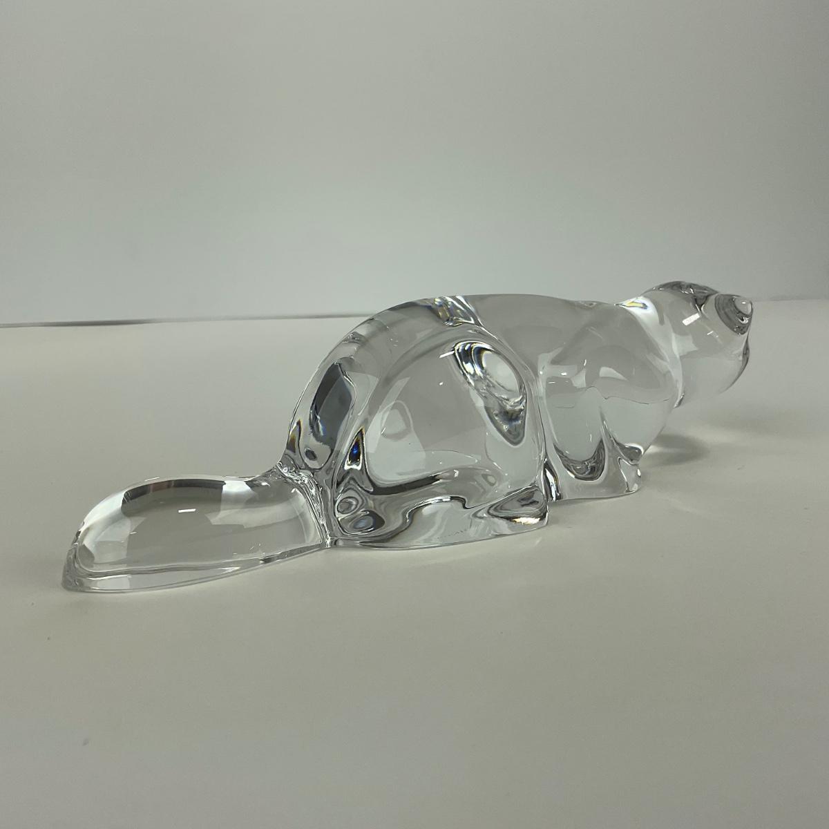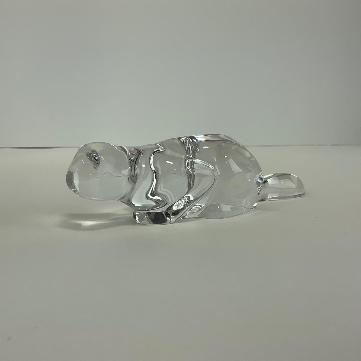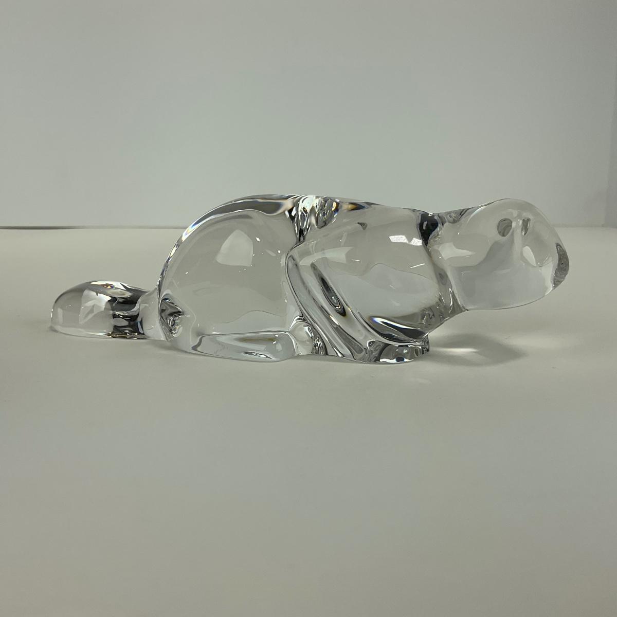 -216- UNMARKED | Clear Glass Crouching Cat Figure