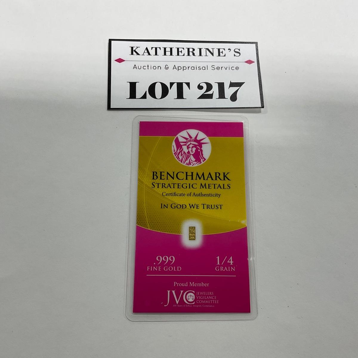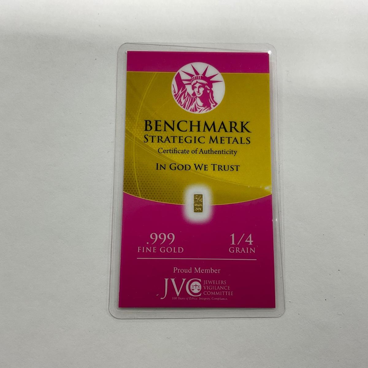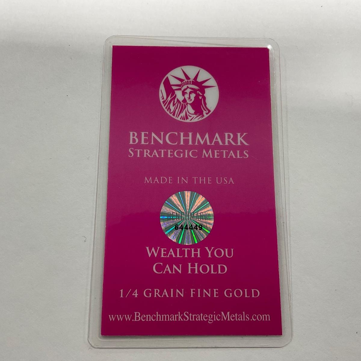 One fraction 1/4 grain .999 fine gold Benchmark Strategic Metal authentic piece.