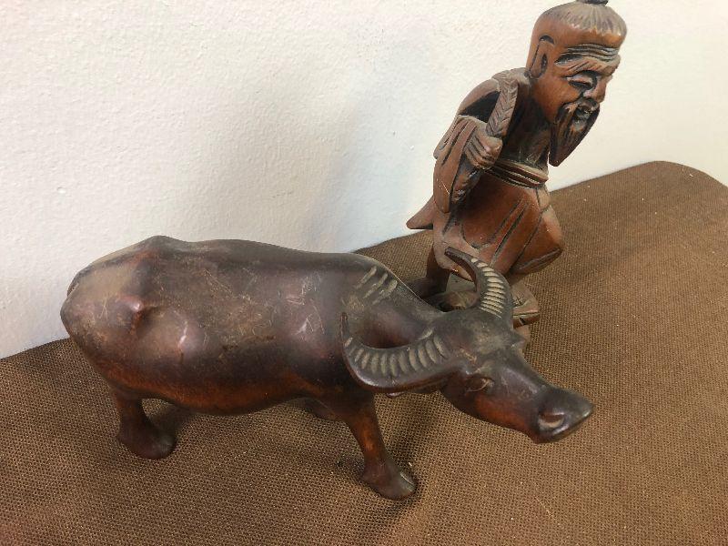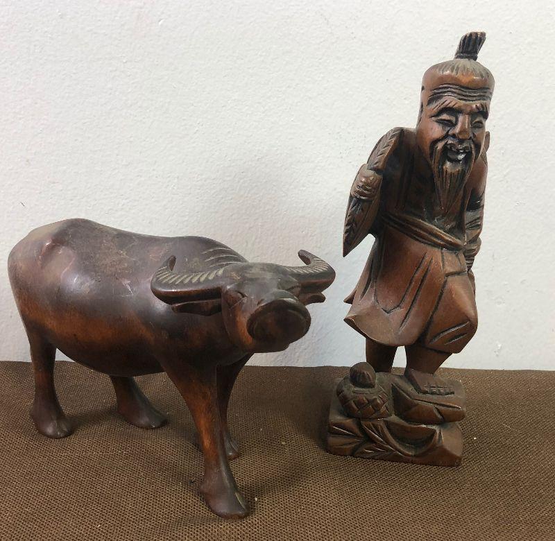 Carved Asian Wood Figurines 10" Tall Good Condition