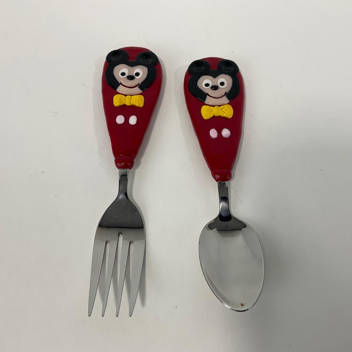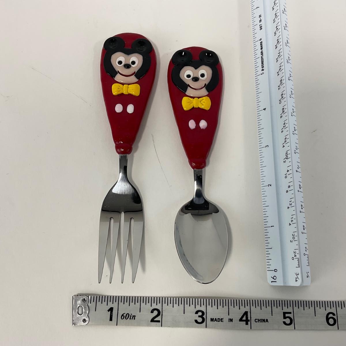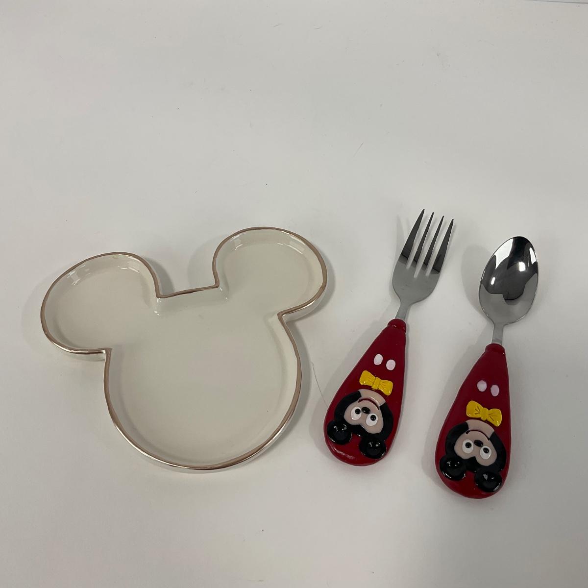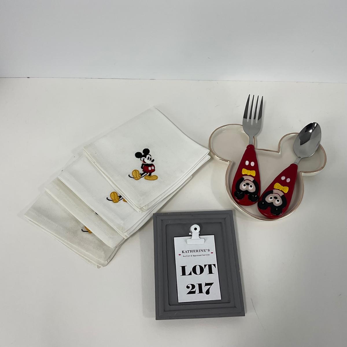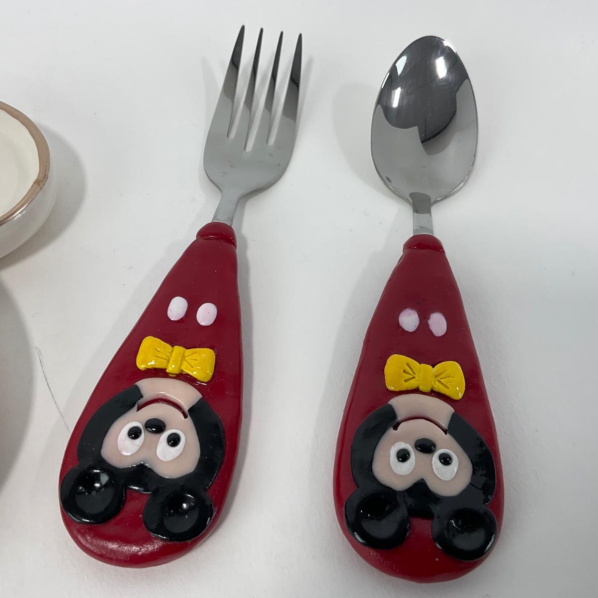 -217- KITCHEN | Mickey Mouse Handmade Spoon & Fork With Tray | Embroidered Mickey Mouse Napkins