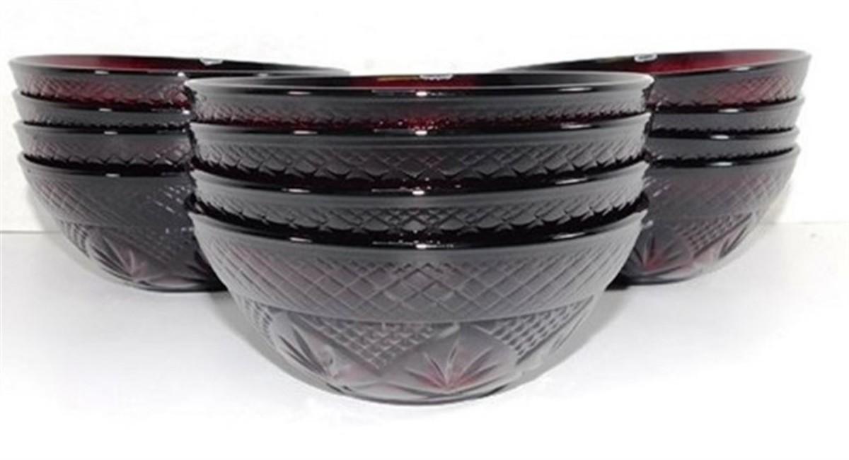 217 Lot of 12 Ruby Red Luminarc Cristal D' Arques Glass Bowls 5 5/8 x 2
