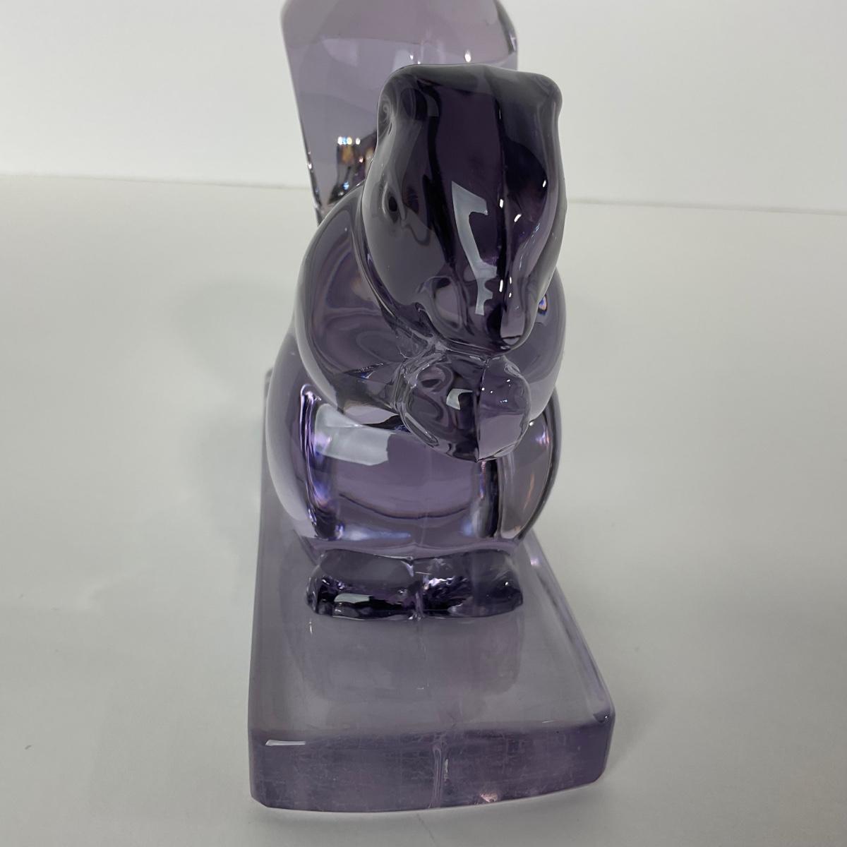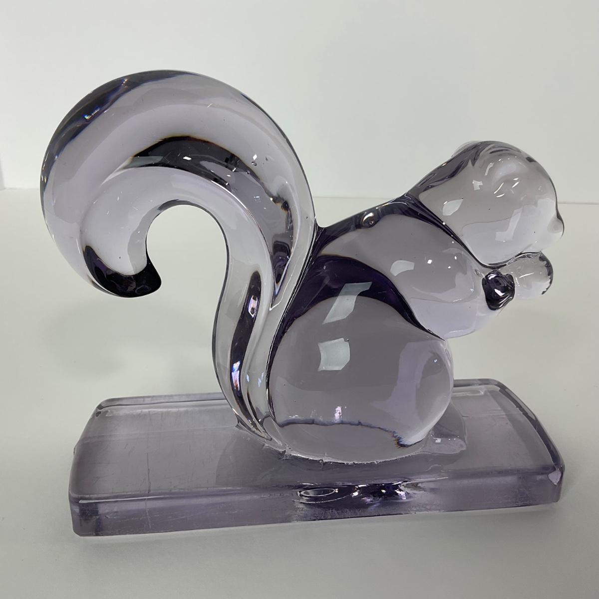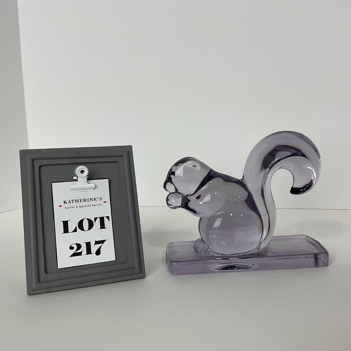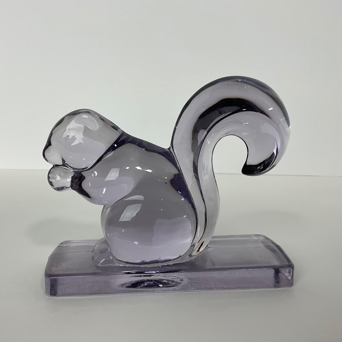 One New Martinsville purple squirrel bookend. 5 1/2 inches tall by 6 inches wide. This piece does have some scrapes and scuffs but otherwise appears to be in good condition. Please see photos for details and condition. Any condition statement is given as a courtesy to a client, is an opinion, and should not be treated as a statement of fact. Reference to condition written, oral or within a condition report shall not be regarded as a full account of condition and may not include all defects, alterations, or restorations. Absence of a condition report does not imply a lot is flawless or lacking imperfections or damage. Katherine’s Auction & Appraisal Service shall have no responsibility for any error or omission. Returns shall not be accepted on the basis of condition. ::: Shipping is available on this lot. If you require shipping you must let us know at the close of the auction. We will coordinate with you after the item has been won. Shipping fees will include insurance up to or exceeding the value of all items being mailed. If you have any questions regarding this lot please contact the auctioneer either via this website, by direct email or by phone. PICK UP TIMES and other important information can be found in the TERMS and DESCRIPTION of the auction. Please take a look for pertinent information. Thanks!