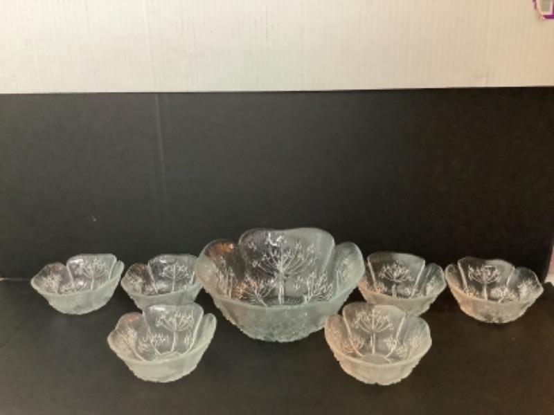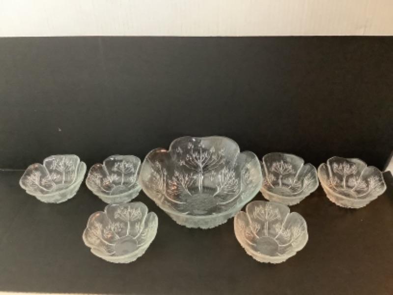 2178 Set of 7 Vintage Dansk Floriform Tree Glass Bowls