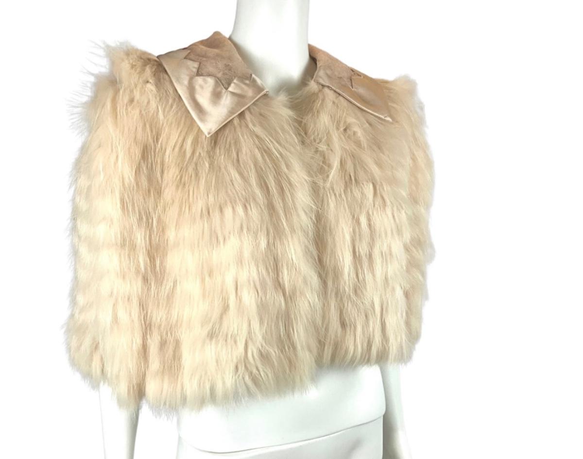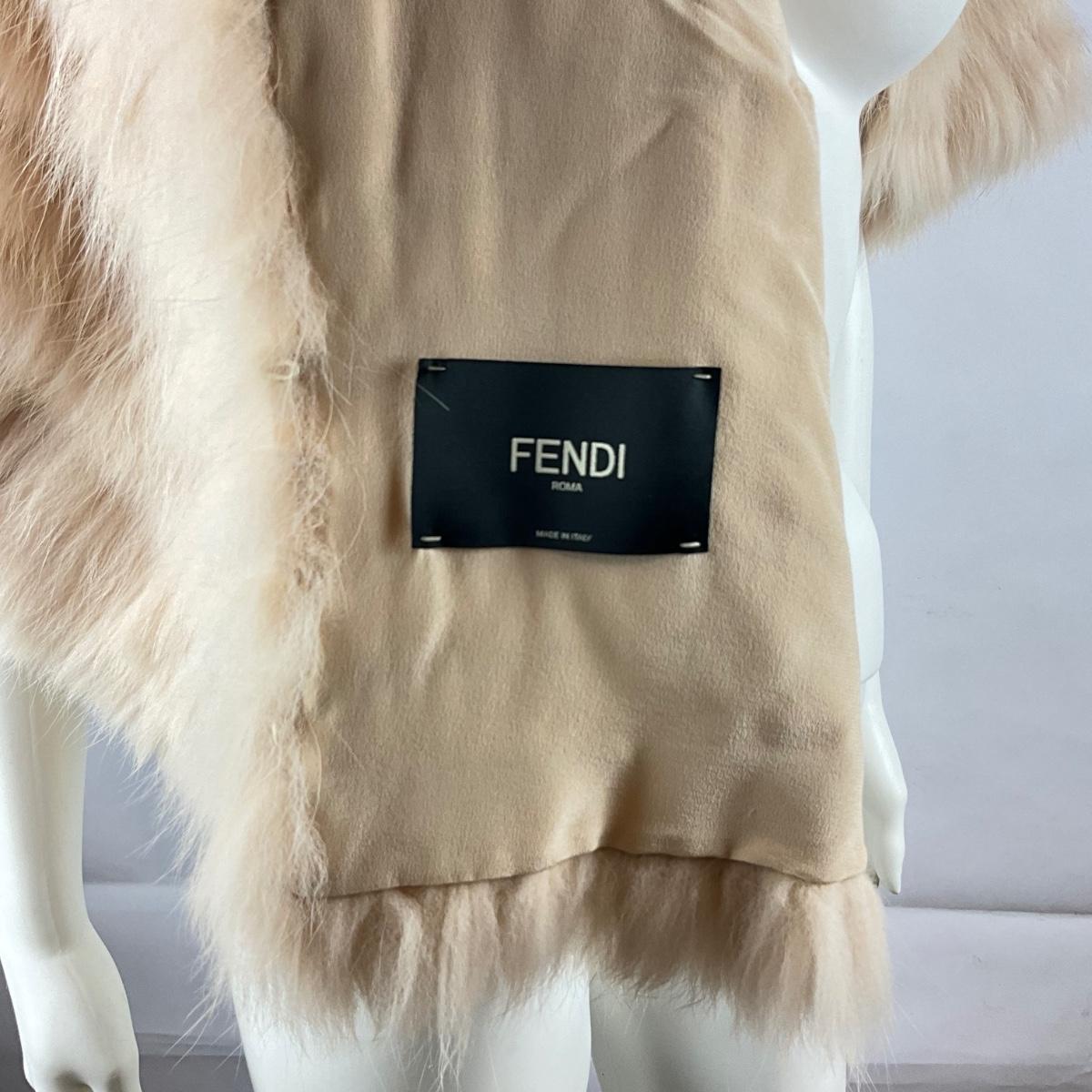 This elegant FENDI shawl is a unique statement piece that combines luxury with sophistication. Featuring soft fur and a delicate lace removable collar, this shawl is perfect for adding a touch of glamour to any outfit. Its versatile design makes it suitable for formal events or as a stylish layering piece.