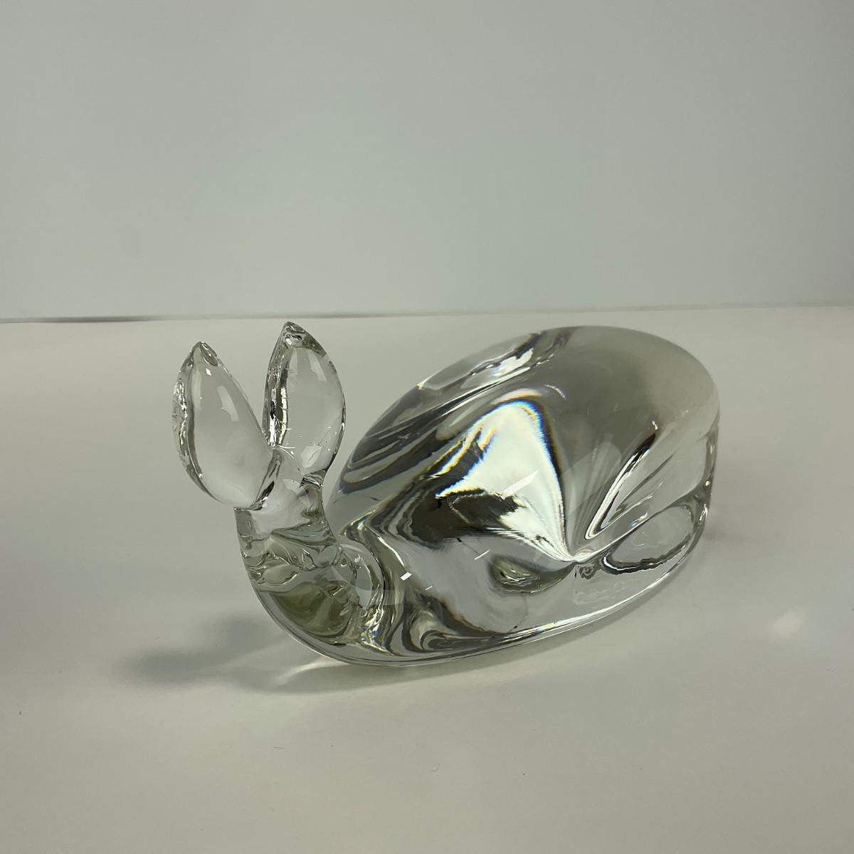 One clear glass Pilgrim whale paperweight figure. This piece has no damage, and appears to be in great shape with no visable chips, cracks, or broken pieces. Please see photos for details and condition. Any condition statement is given as a courtesy to a client, is an opinion, and should not be treated as a statement of fact. Reference to condition written, oral or within a condition report shall not be regarded as a full account of condition and may not include all defects, alterations, or restorations. Absence of a condition report does not imply a lot is flawless or lacking imperfections or damage. Katherine’s Auction & Appraisal Service shall have no responsibility for any error or omission. Returns shall not be accepted on the basis of condition. ::: Shipping is available on this lot. If you require shipping you must let us know at the close of the auction. We will coordinate with you after the item has been won. Shipping fees will include insurance up to or exceeding the value of all items being mailed. If you have any questions regarding this lot please contact the auctioneer either via this website, by direct email or by phone. PICK UP TIMES and other important information can be found in the TERMS and DESCRIPTION of the auction. Please take a look for pertinent information. Thanks!