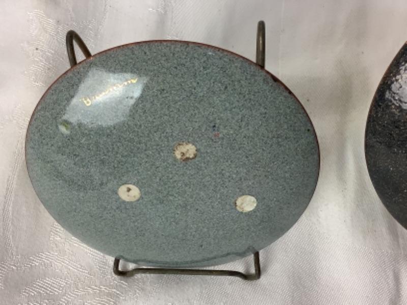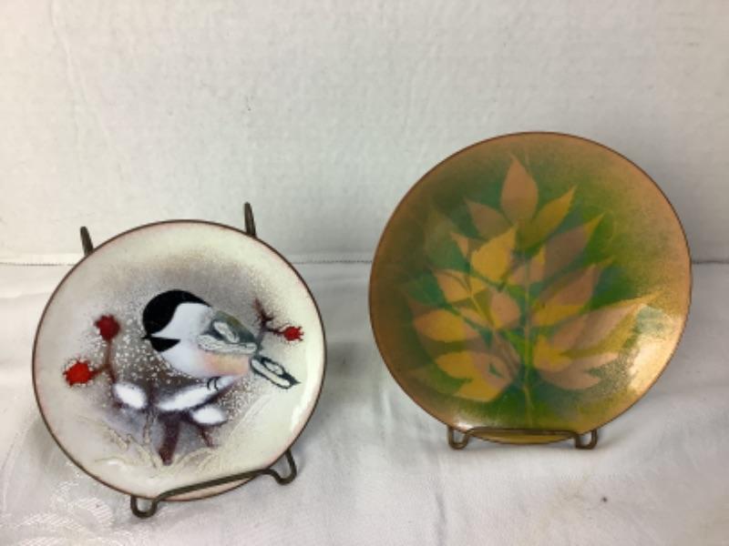 Norman Brumm signed mid century plate measuring 5-7/8” in excellent condition. Signed mid century enamel over copper plate measuring 5-3/4” and is signed “g”