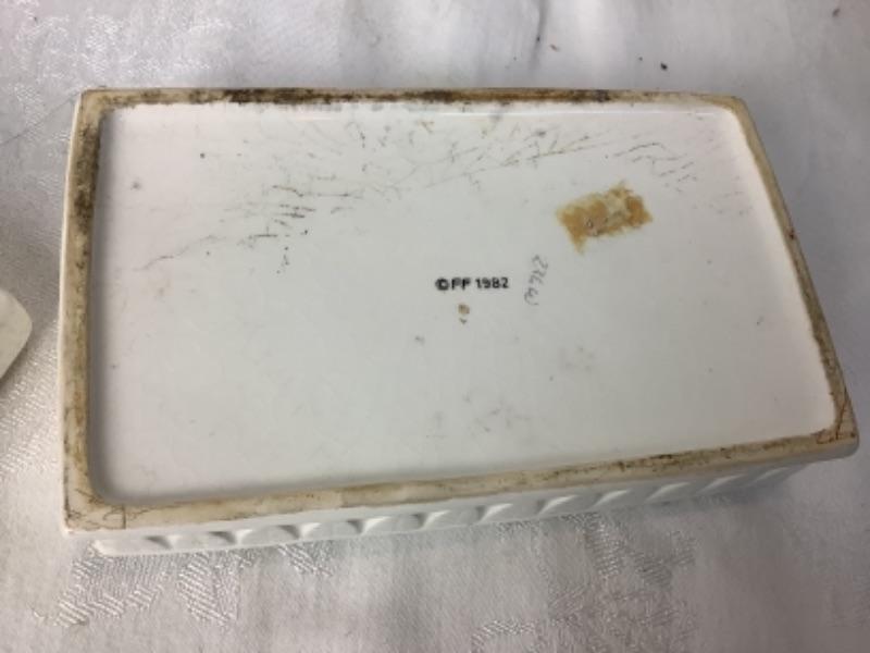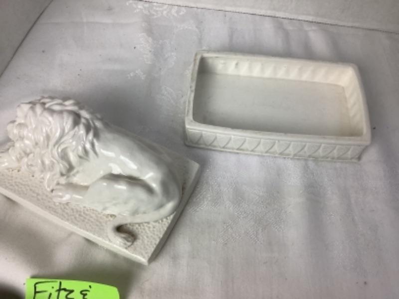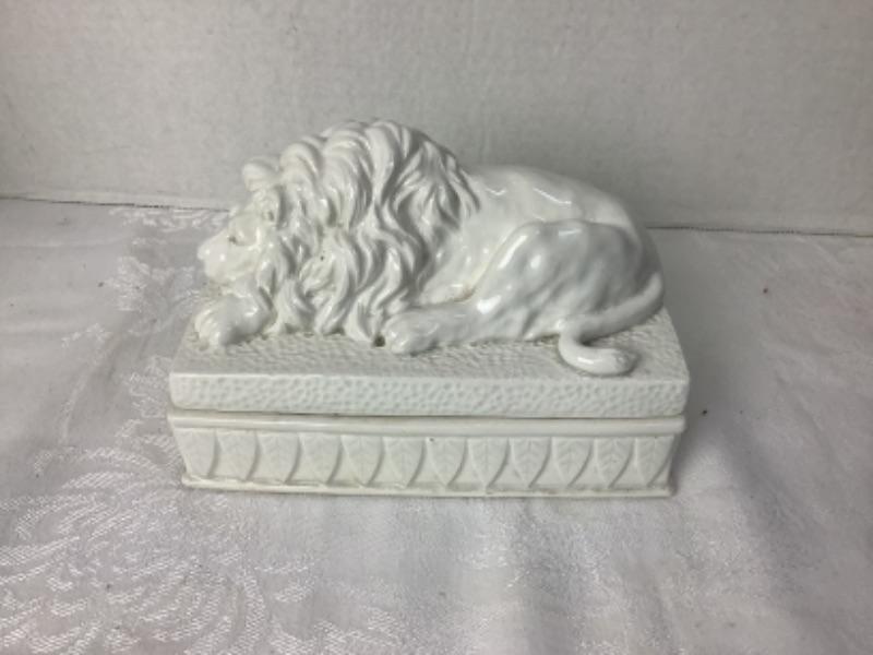 Vintage Fitz & Floyd Lion Covered Box measures approximately 7” x 4”