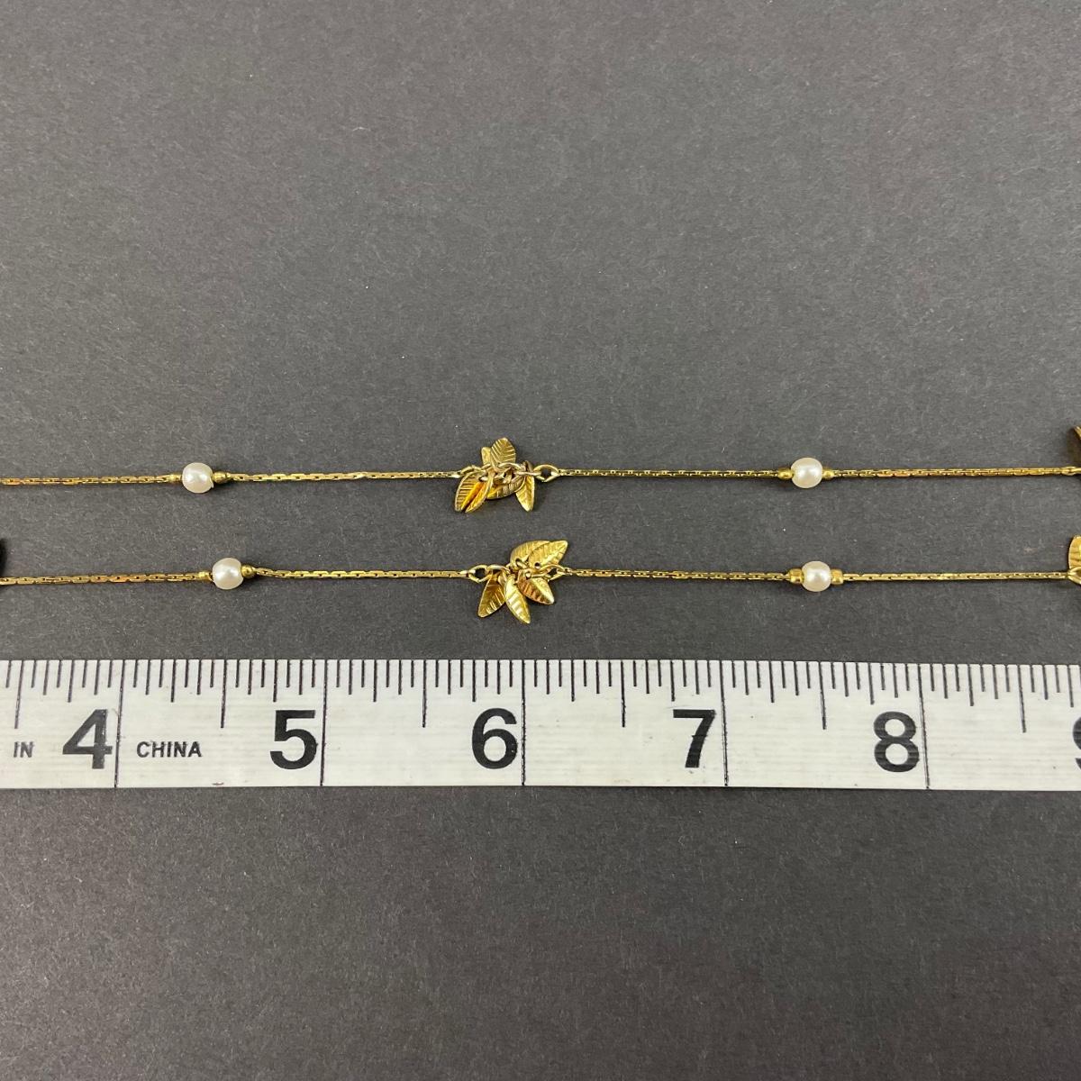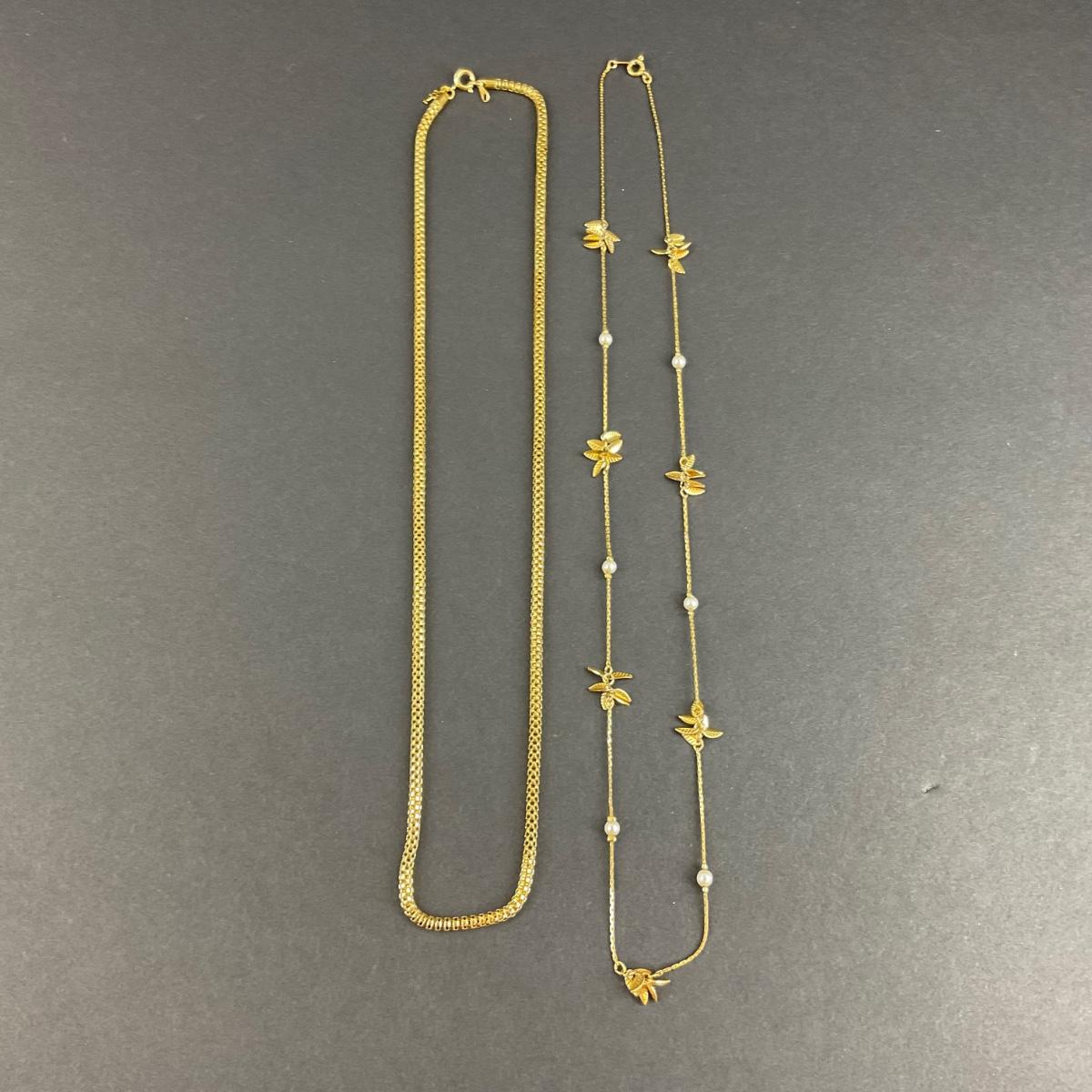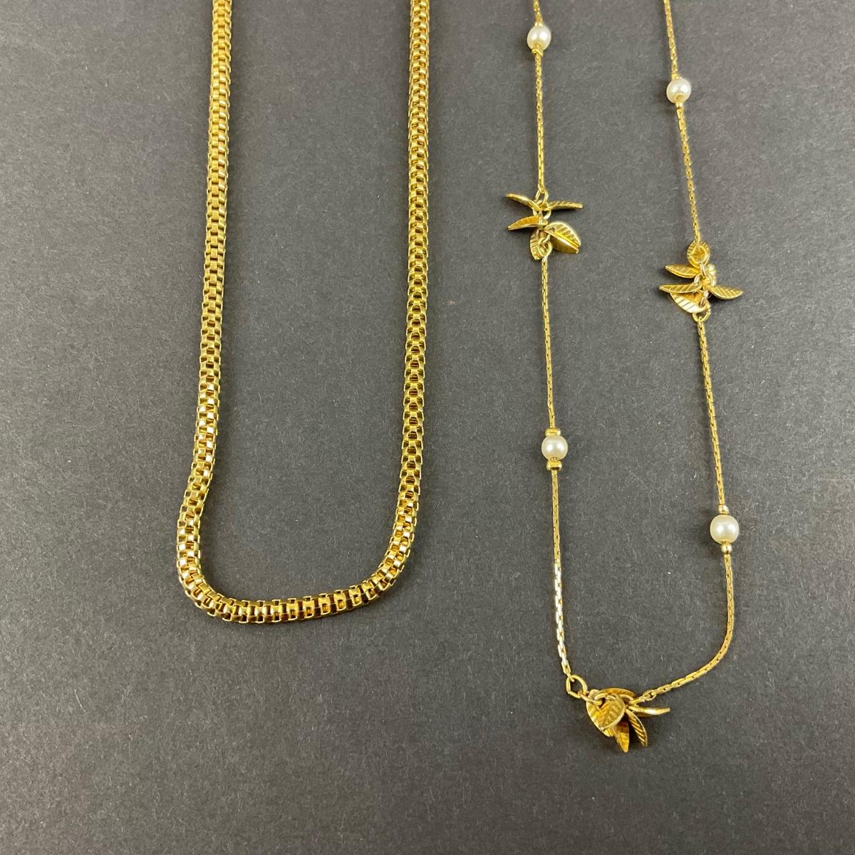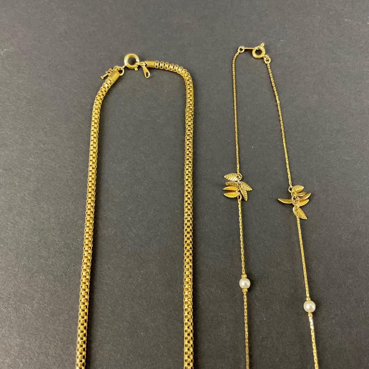 Two vintage gold tone marked Trifari necklaces. Please see photos for details and condition. Any condition statement is given as a courtesy to a client, is an opinion, and should not be treated as a statement of fact. Reference to condition written, oral or within a condition report shall not be regarded as a full account of condition and may not include all defects, alterations, or restorations. Absence of a condition report does not imply a lot is flawless or lacking imperfections or damage. Katherine’s Auction & Appraisal Service shall have no responsibility for any error or omission. Returns shall not be accepted on the basis of condition. ::: Shipping is available on this lot. If you require shipping you must let us know at the close of the auction. We will coordinate with you after the item has been won. Shipping fees will include insurance up to or exceeding the value of all items being mailed. If you have any questions regarding this lot please contact the auctioneer either via this website, by direct email or by phone. PICK UP TIMES and other important information can be found in the TERMS and DESCRIPTION of the auction. Please take a look for pertinent information. Thanks!