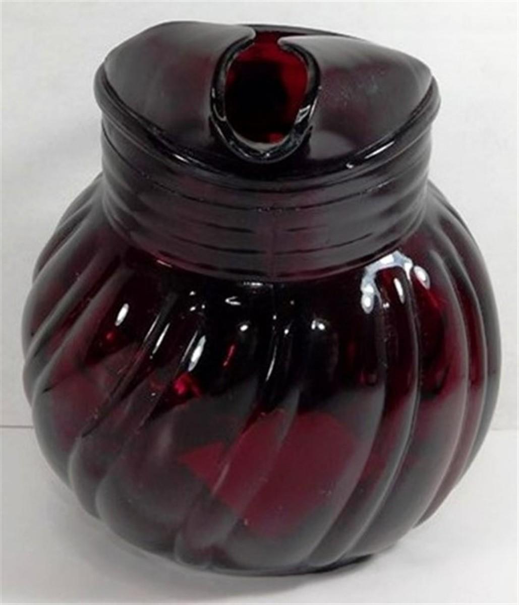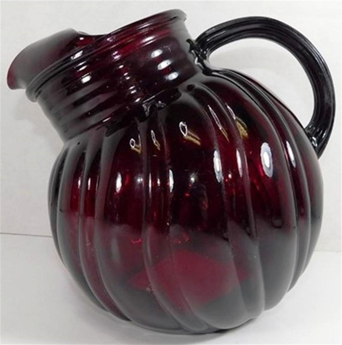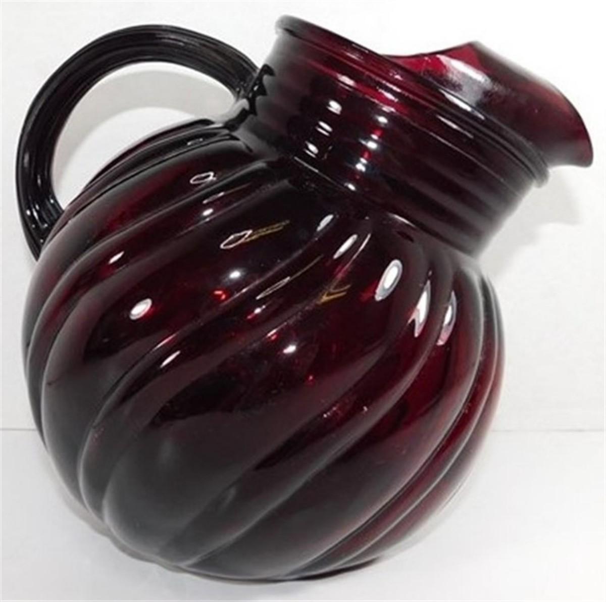 219 Vintage 1940'S Anchor Hocking Royal Ruby Swirl Ball Jug Pitcher