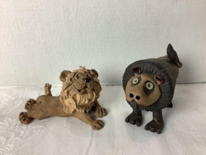 Dave Grossman mid century modern lion figurine and mid century modern pottery lion figurine