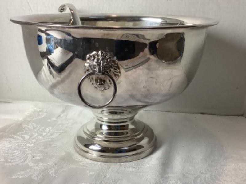 Rogers Silver Co. punchbowl with lion head handles and Napier ladle