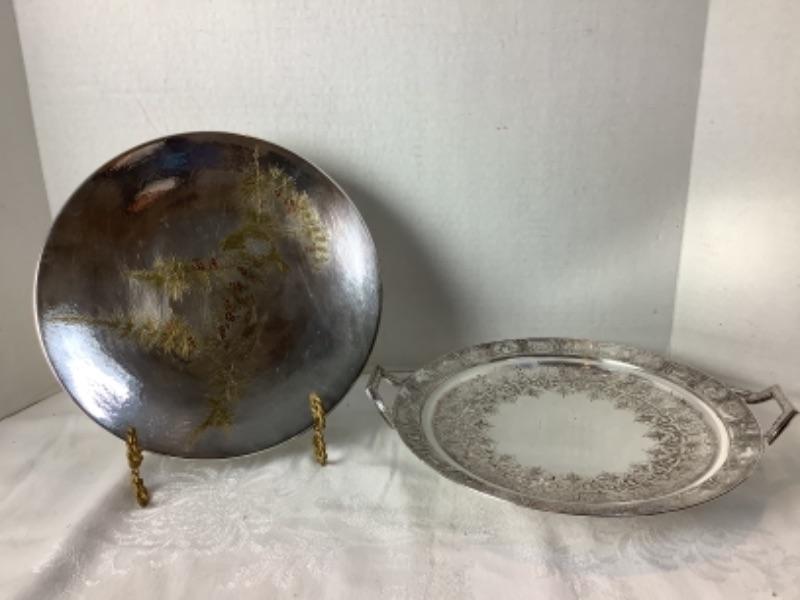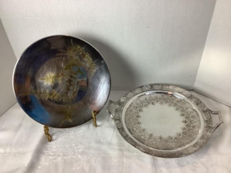 2194 Reed & Barton Audubon Collection Pine Liskin Plate with Dutchardt Double Handle d Plate