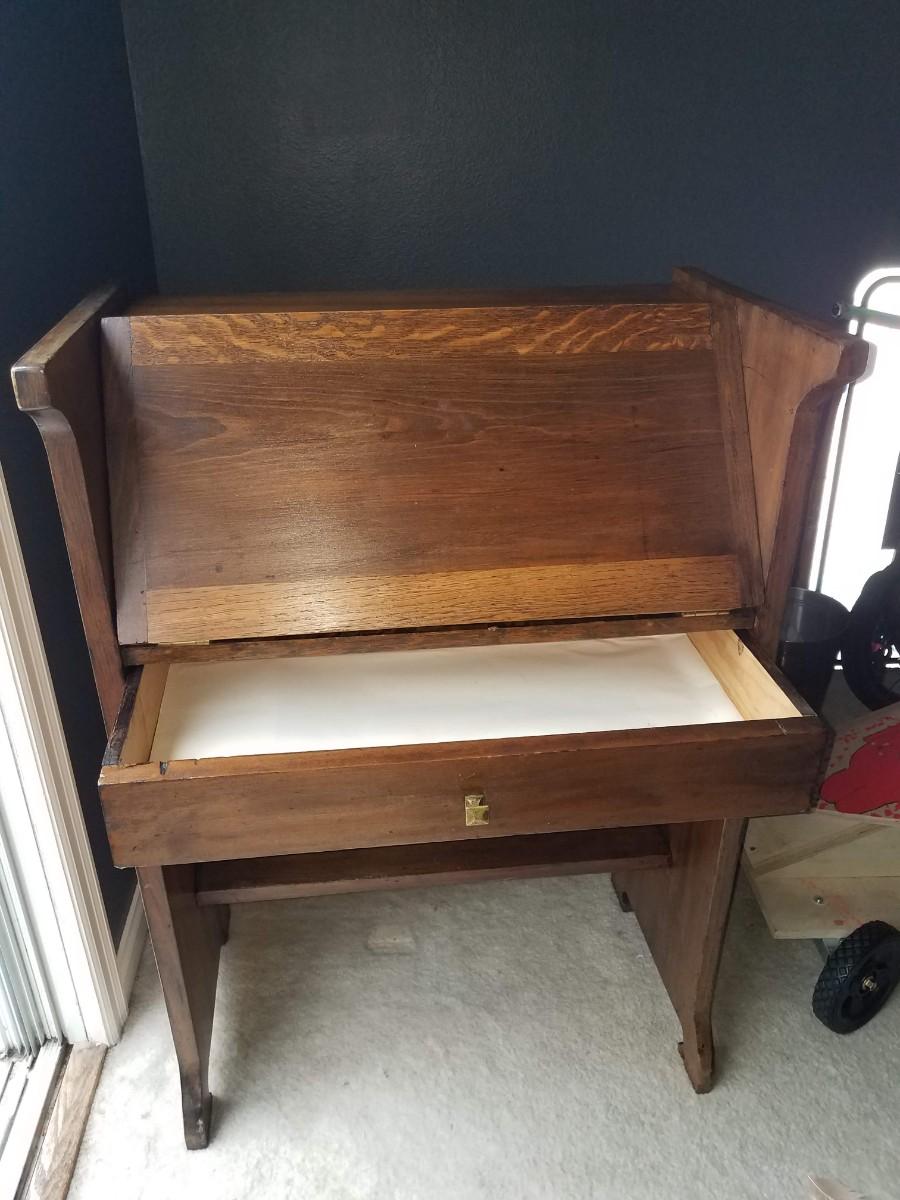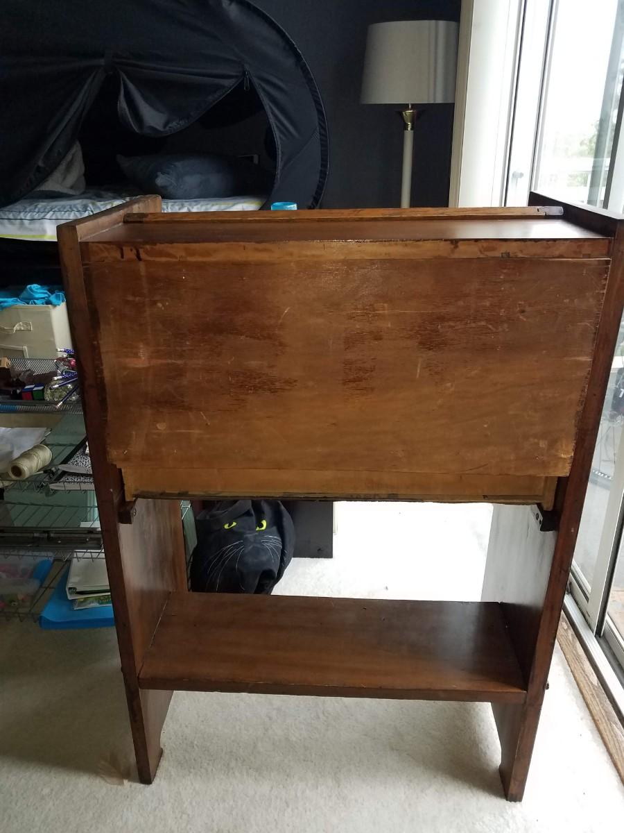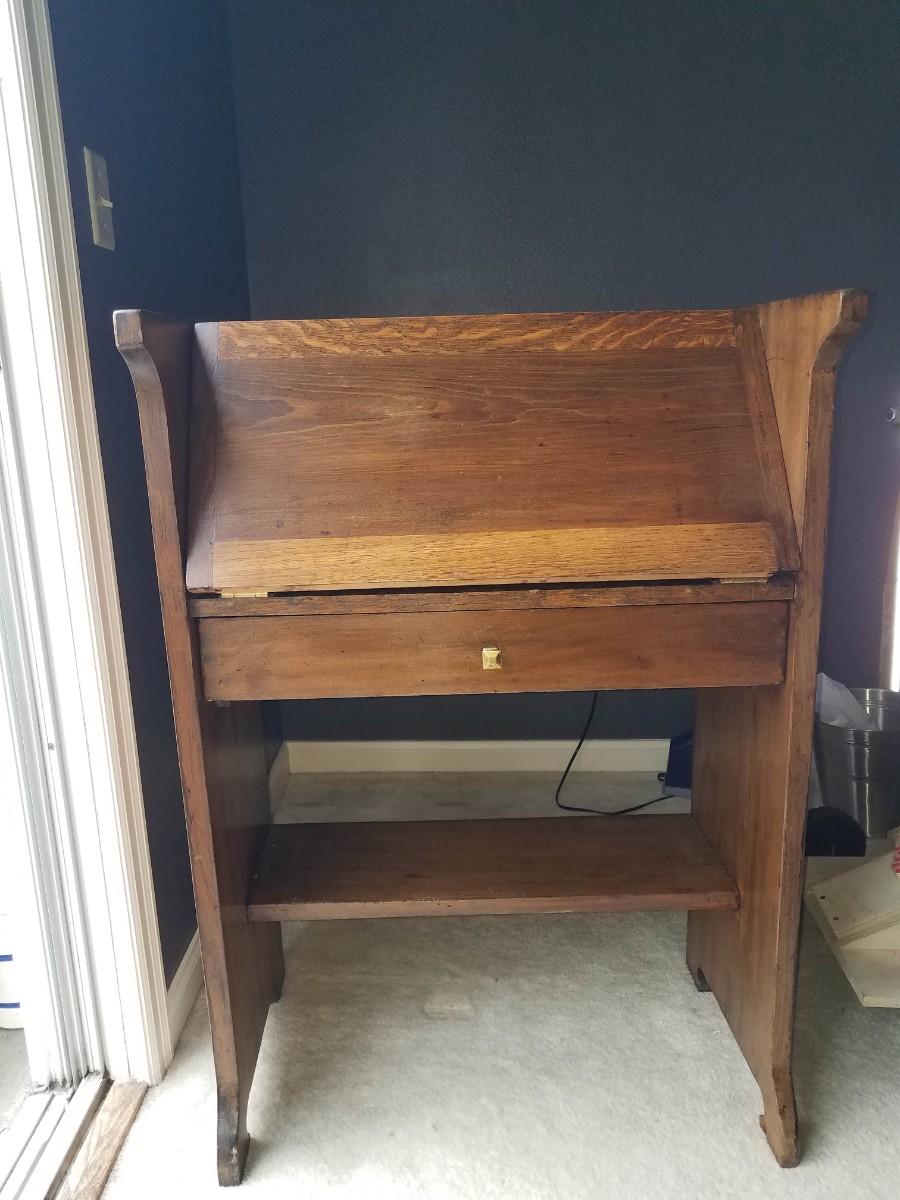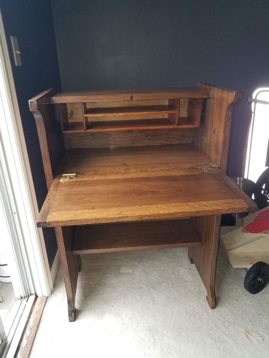Drop Down, Slant Front Desk with built-ins. 1 Drawer and Bottom Shelf.
