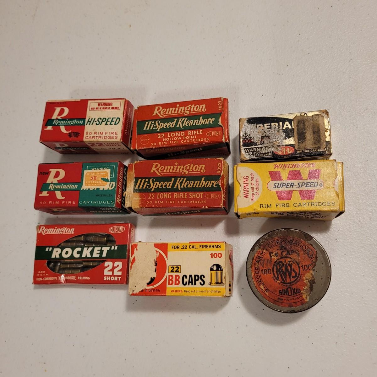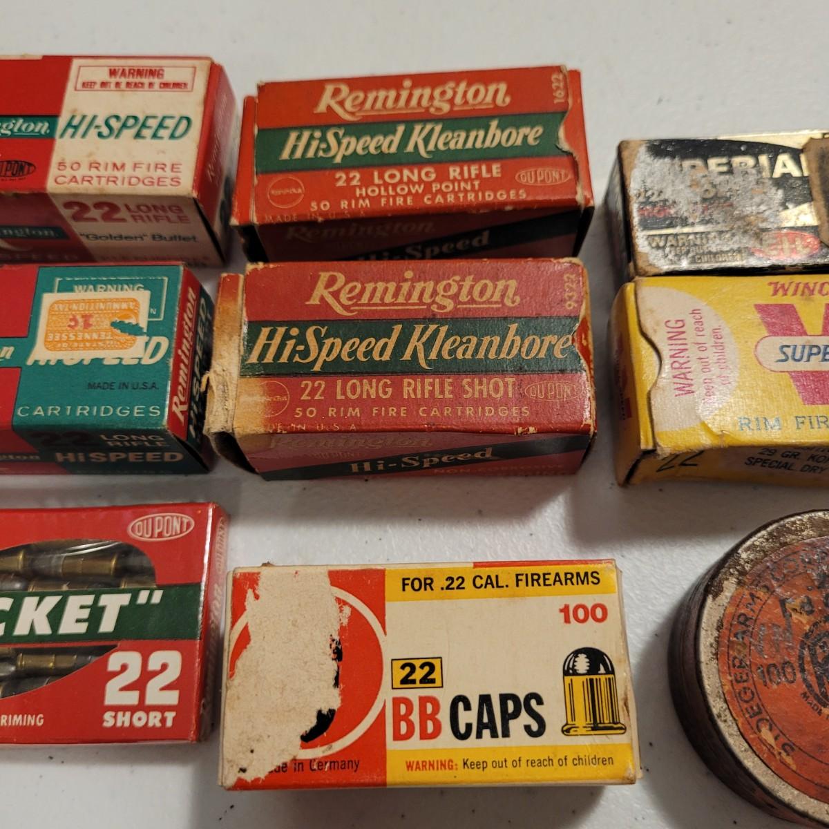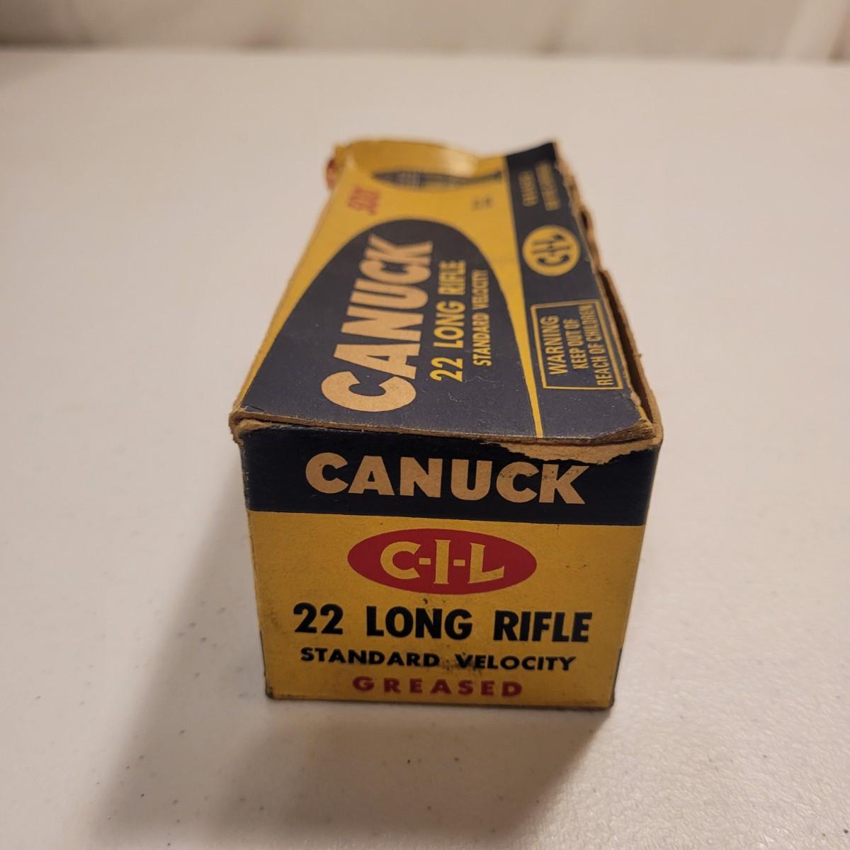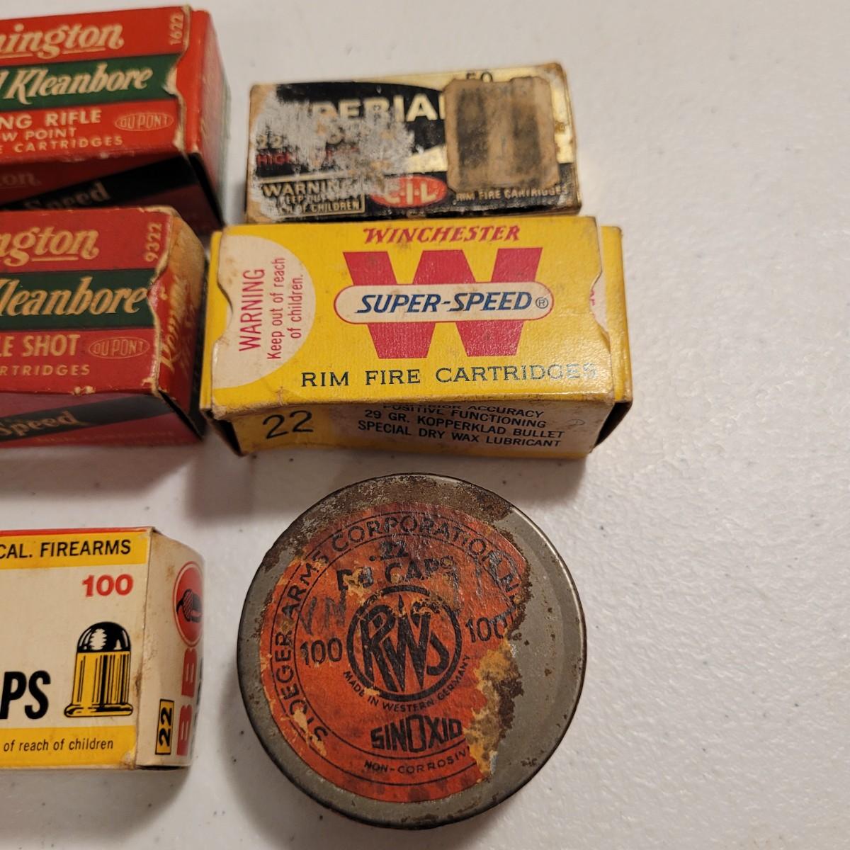 This lot includes over 800 .22 cartridges and one ammo box. There is a sealed box of Federal .22 LR cartridges, an open box of Canuck .22 LR rounds, and a few miscellaneous boxes and bags of .22 cartridges. This ammunition is dated and may need inspection before use. There is also a like new steel military style ammo can for ammunition storage.