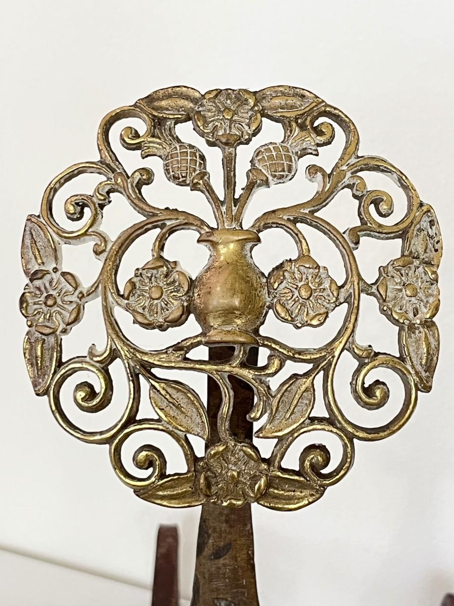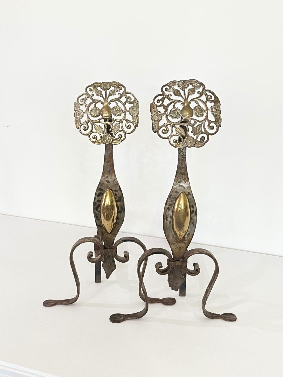 22” Cast Iron & Brass Andirons