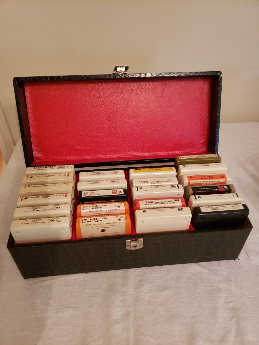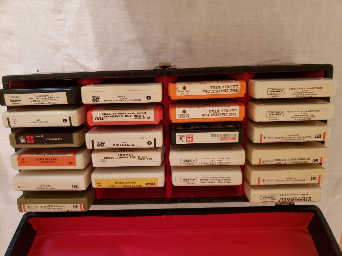 22 Classic Rock 8 Track Tapes with Case. Rolling Stones, Crosby, Stills& Nash, Three dog Night, Cream, Steppenwolf, CCR, Woodstock, Simon & Garfunkel, Jefferson Airplane, Led Zeppelin, Nitty Gritty Dirt Band, Concert for Bangladesh, Rare Earth and Sly & the Family Stone.