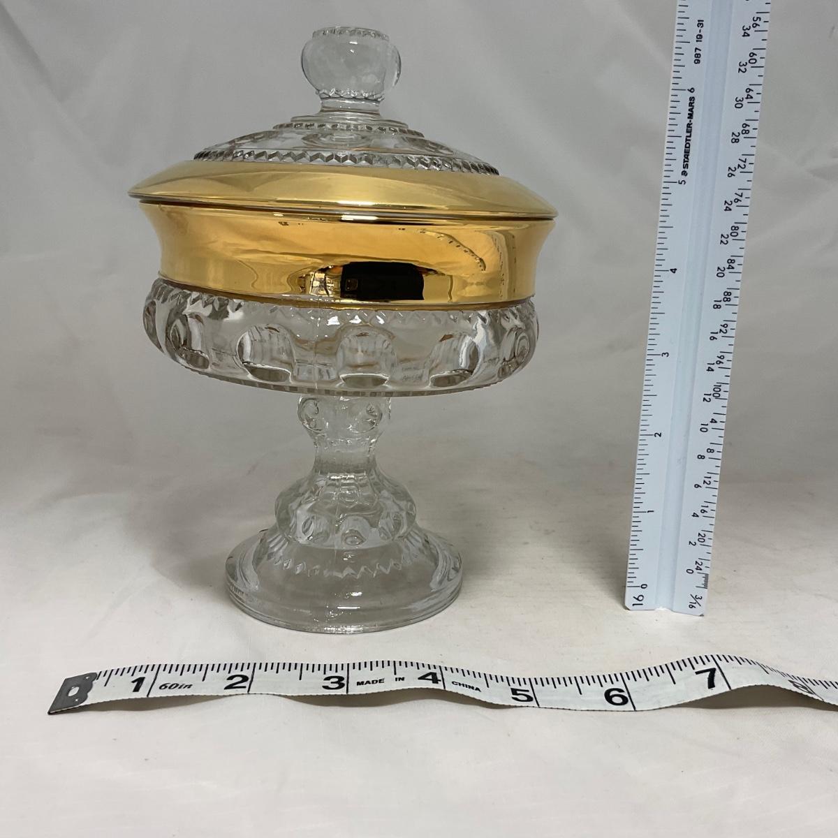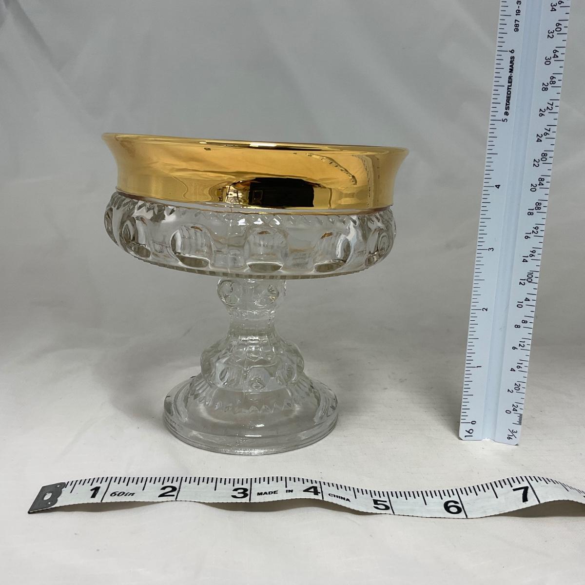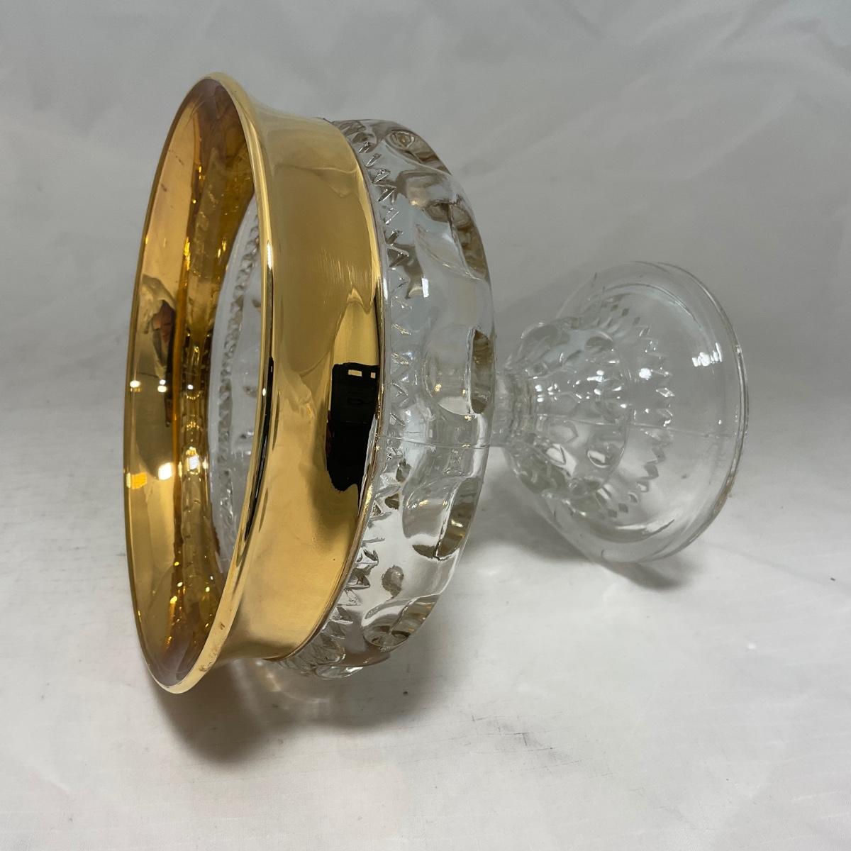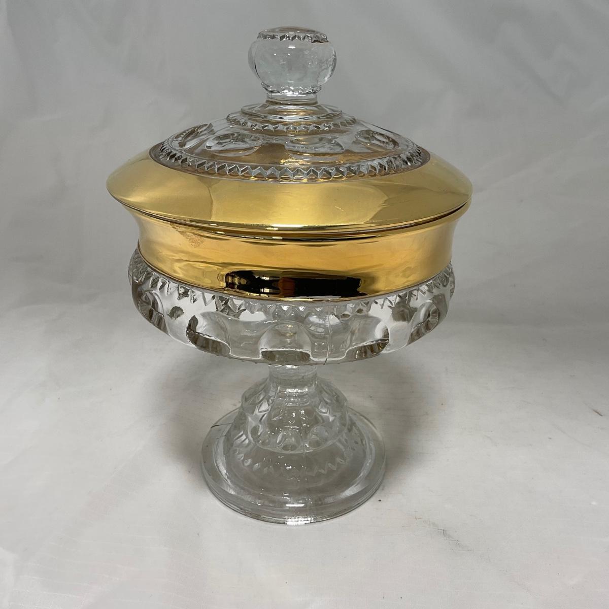 -22- Clear Glass with Gold Rim Accents | Covered Compote dish