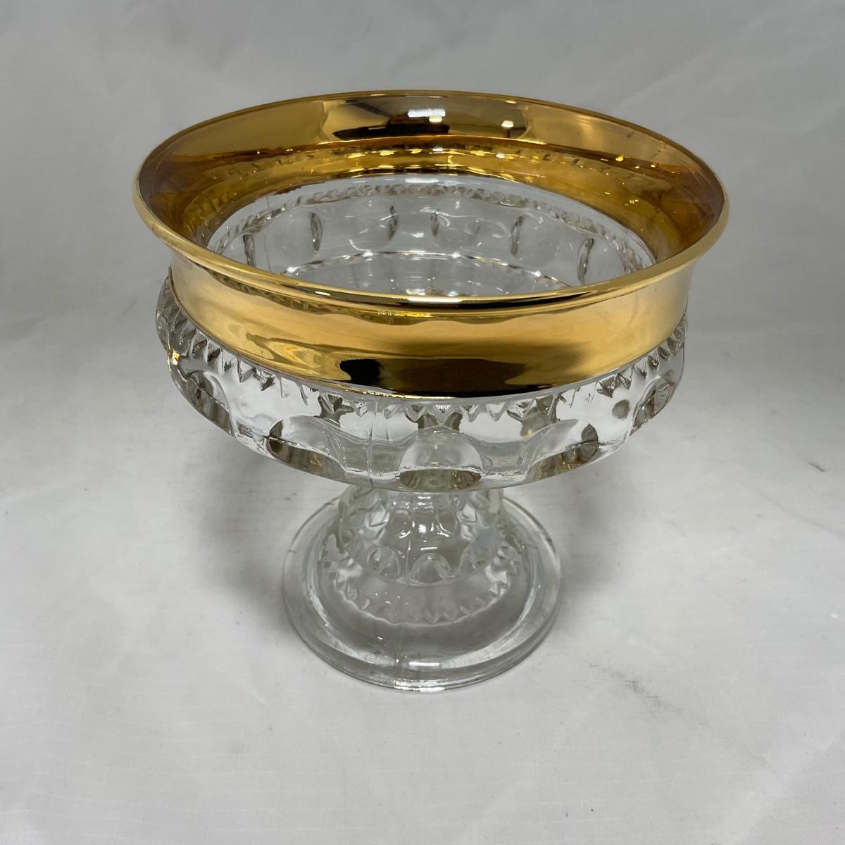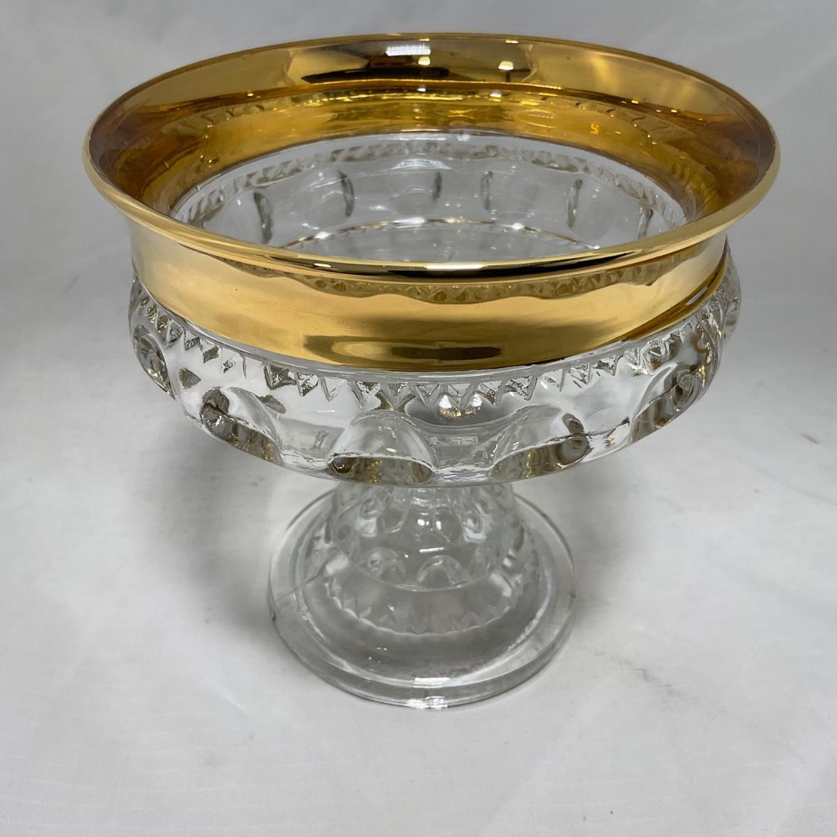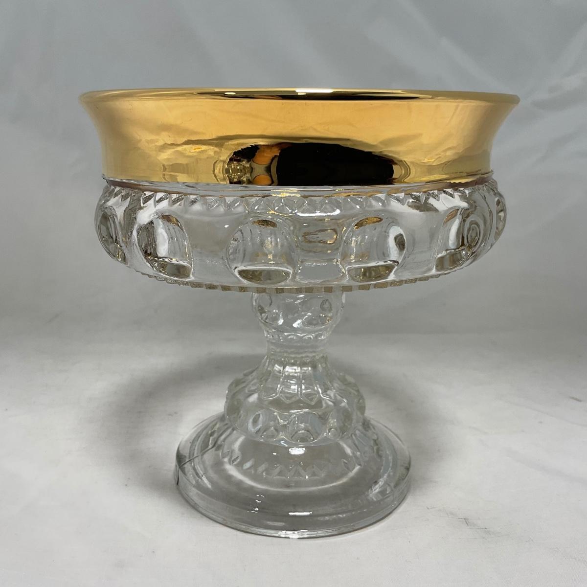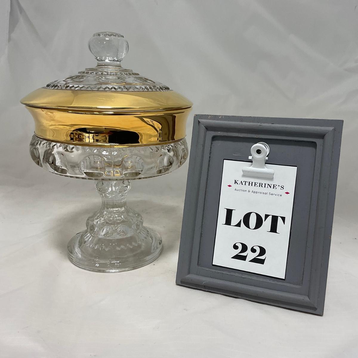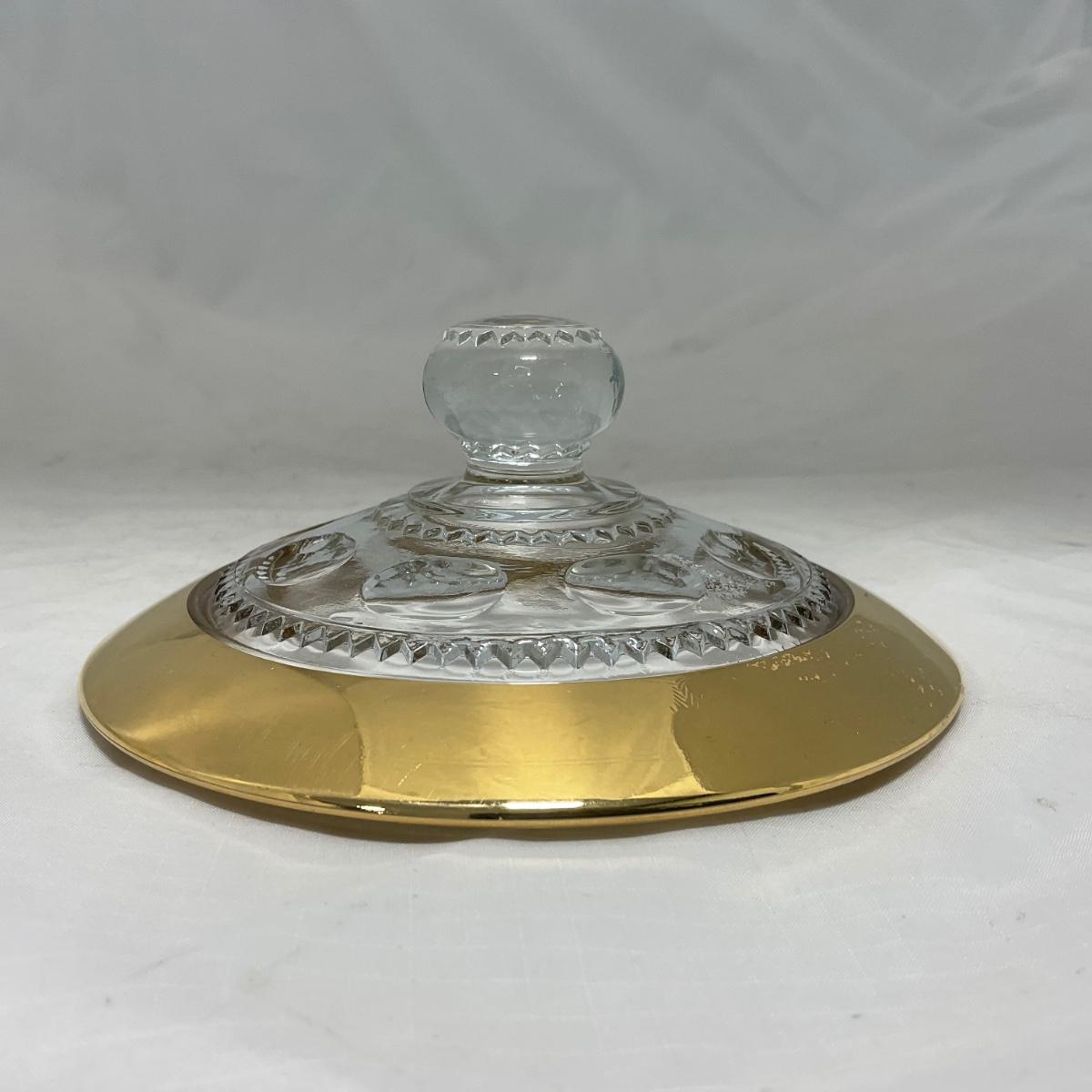 -22- Clear Glass with Gold Rim Accents | Covered Compote dish