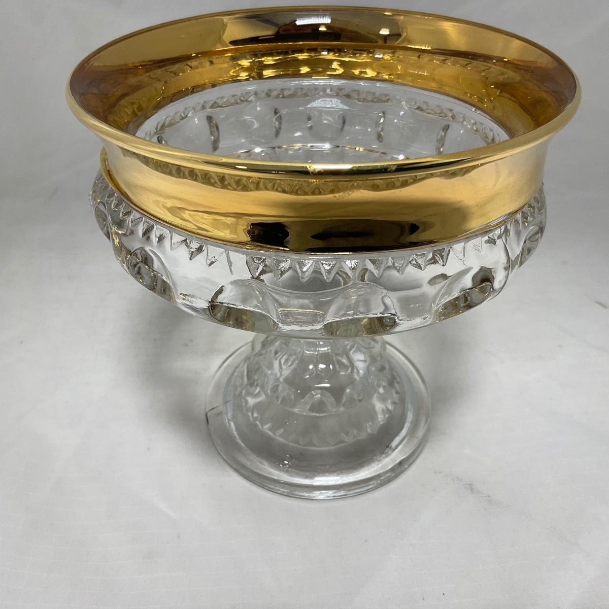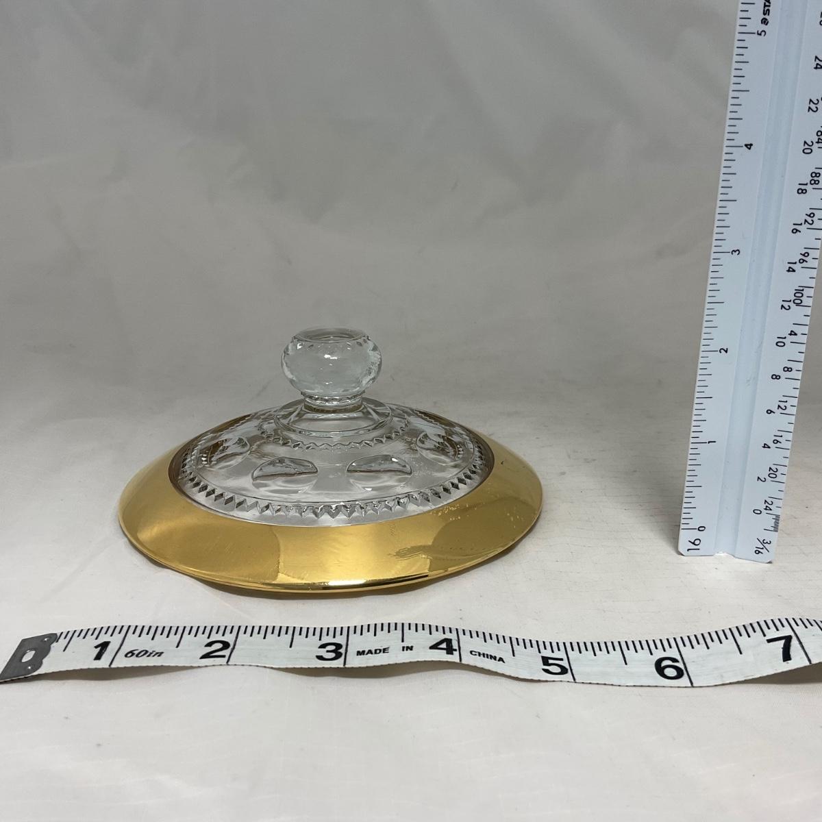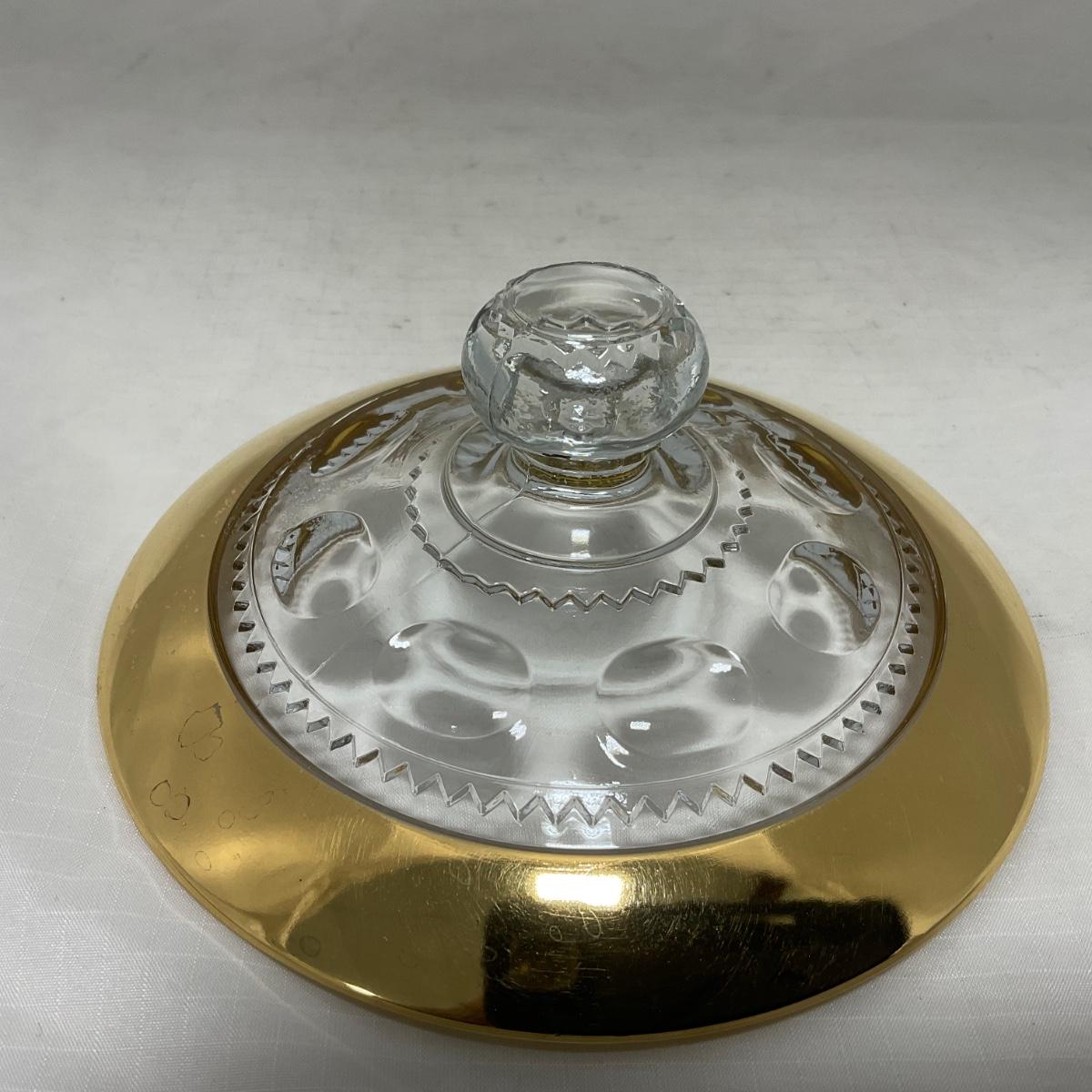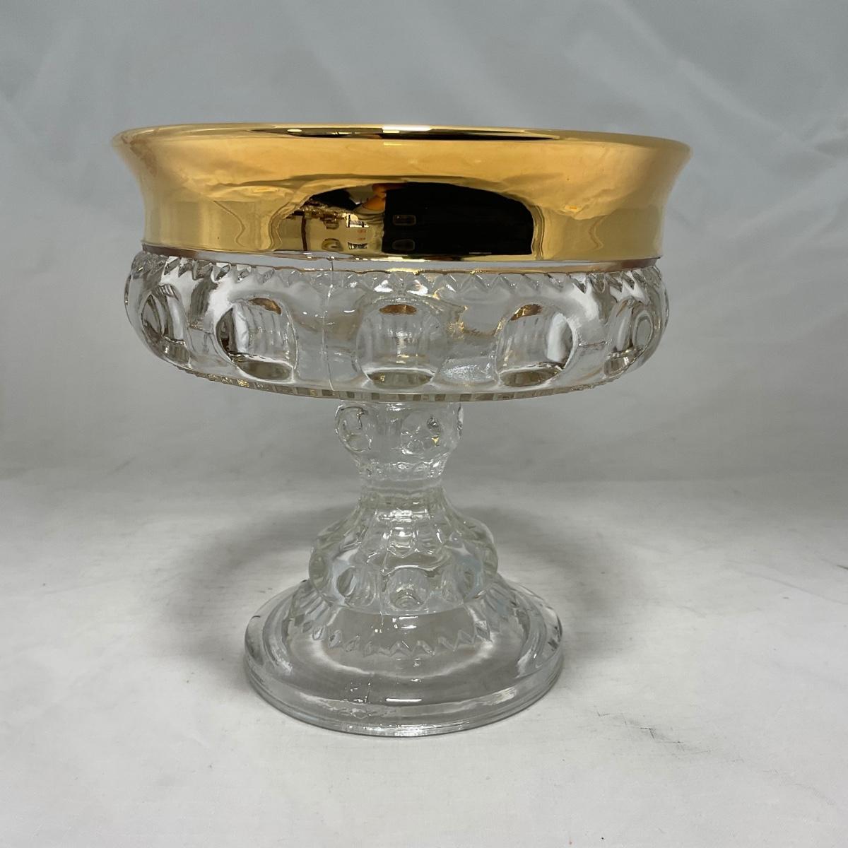 -22- Clear Glass with Gold Rim Accents | Covered Compote dish