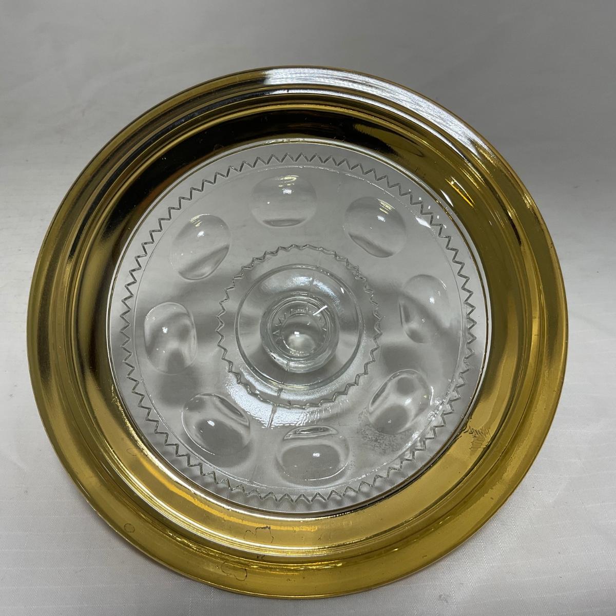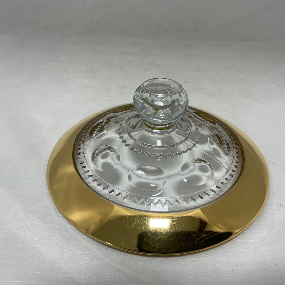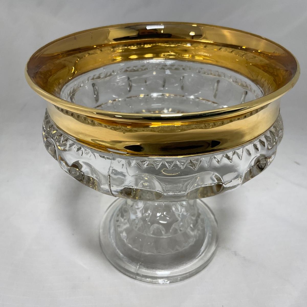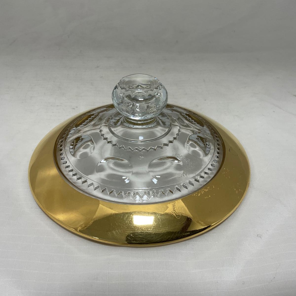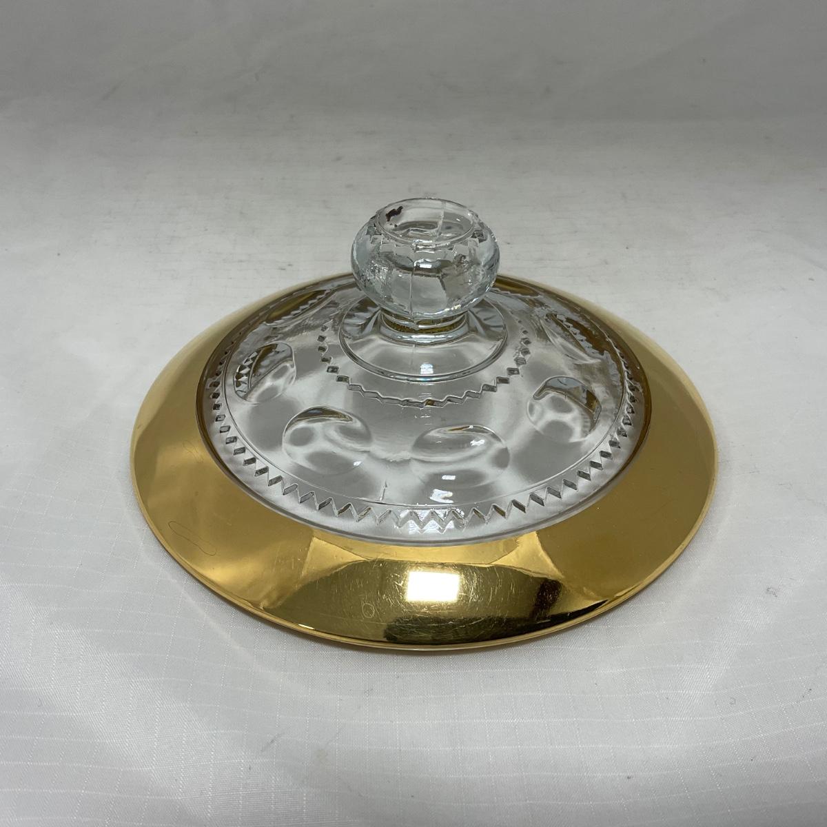 -22- Clear Glass with Gold Rim Accents | Covered Compote dish