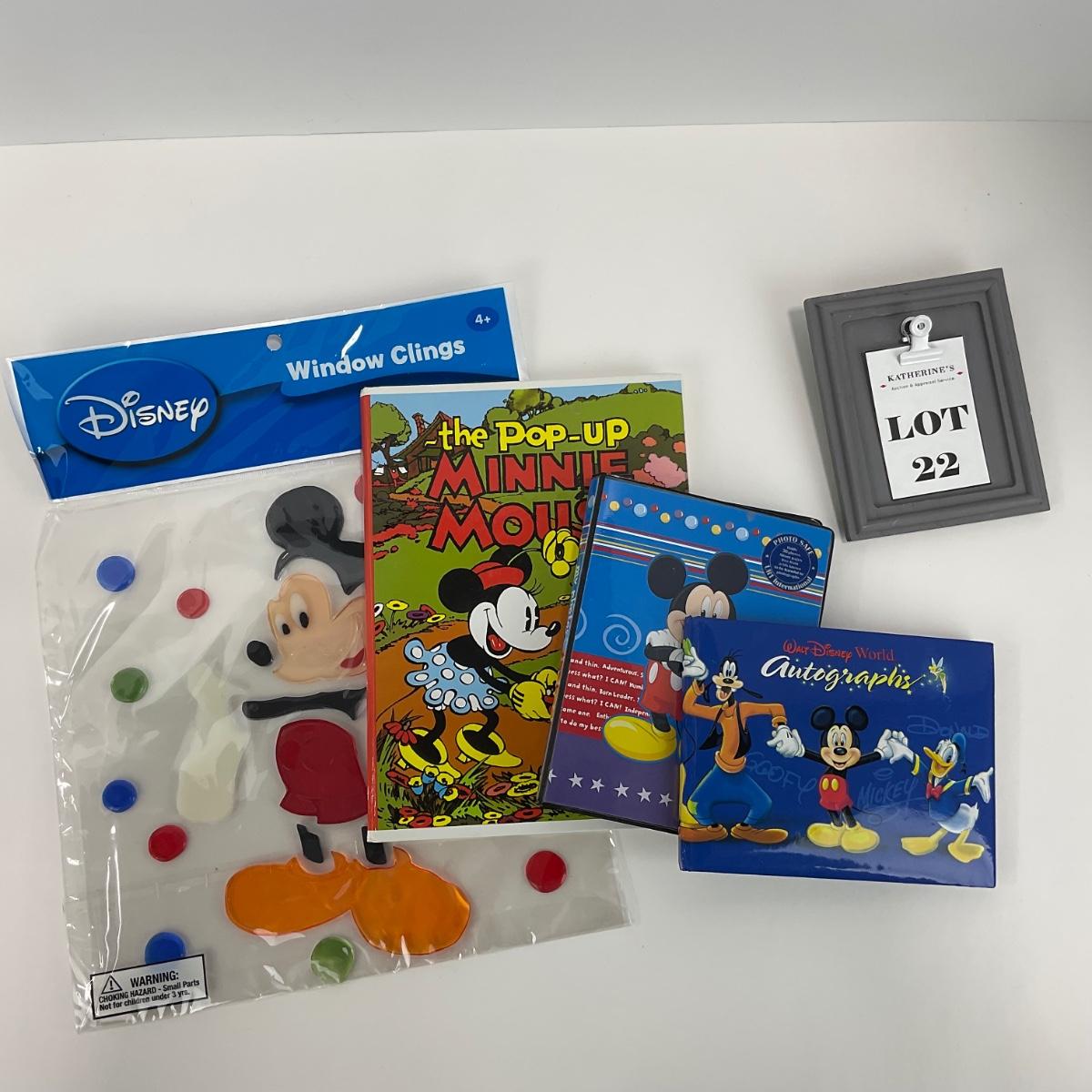 Four Mickey Mouse collectibles including Disney window cling, a pop up Minnie Mouse book, a Micky mouse photo album, and one Disney autograph book including a few autographs . Please see photos for details and condition. Any condition statement is given as a courtesy to a client, is an opinion, and should not be treated as a statement of fact. Reference to condition written, oral or within a condition report shall not be regarded as a full account of condition and may not include all defects, alterations, or restorations. Absence of a condition report does not imply a lot is flawless or lacking imperfections or damage. Katherine’s Auction & Appraisal Service shall have no responsibility for any error or omission. Returns shall not be accepted on the basis of condition. ::: Shipping is available on this lot. If you require shipping you must let us know at the close of the auction. We will coordinate with you after the item has been won. Shipping fees will include insurance up to or exceeding the value of all items being mailed. If you have any questions regarding this lot please contact the auctioneer either via this website, by direct email or by phone. PICK UP TIMES and other important information can be found in the TERMS and DESCRIPTION of the auction. Please take a look for pertinent information. Thanks!