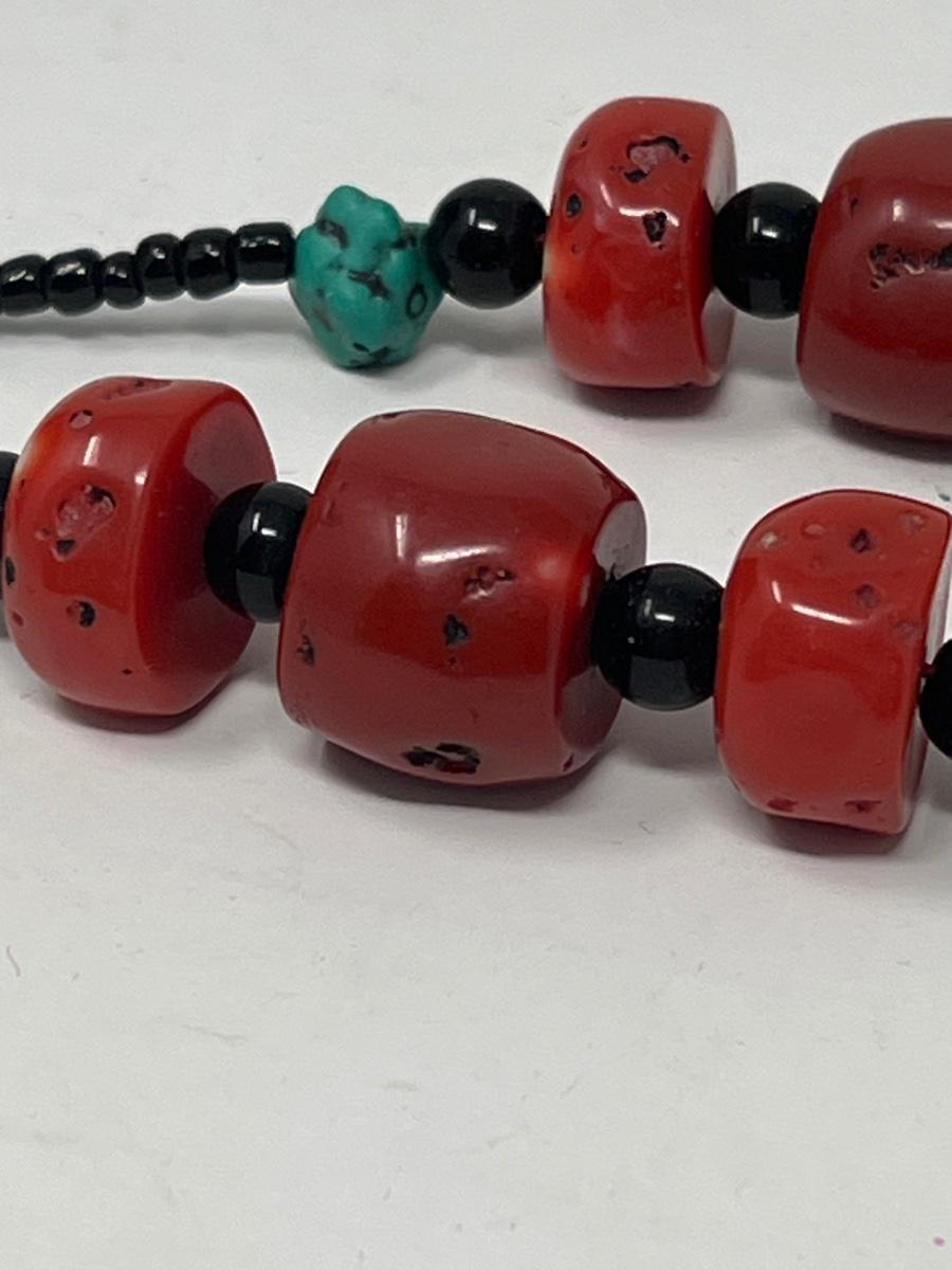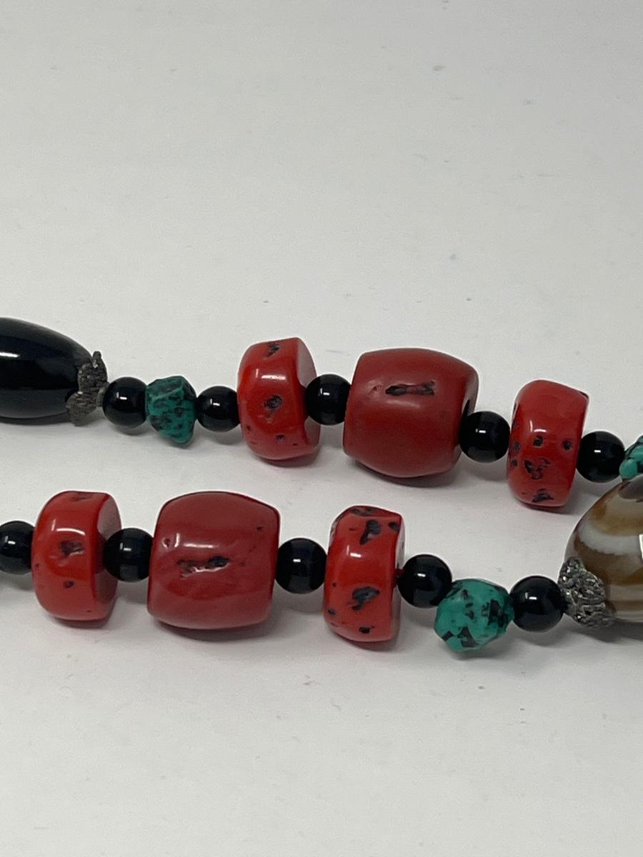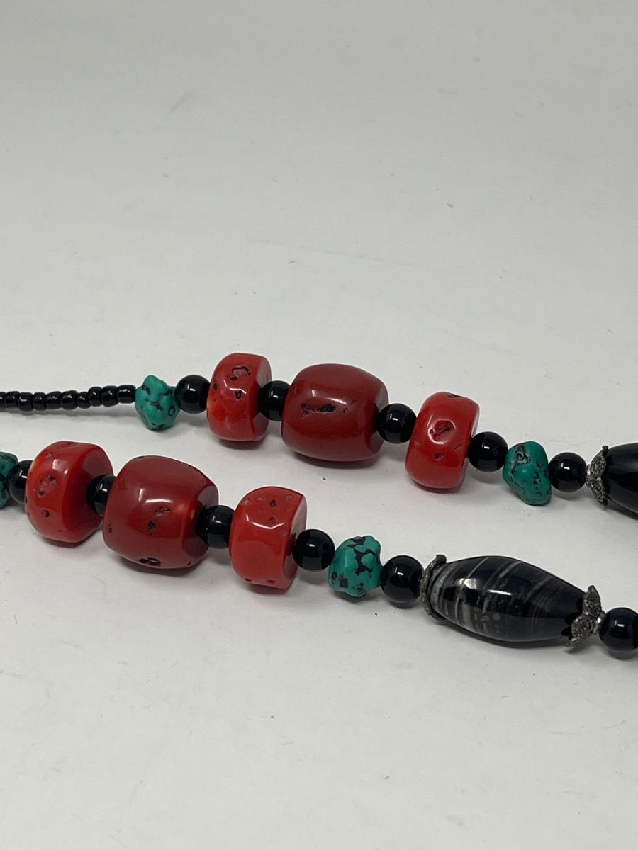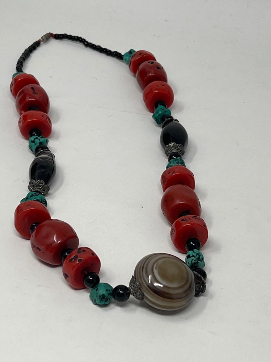 Exquisite beaded necklaces with genuine coral and turquoise stones and a center tiger eye. Vintage