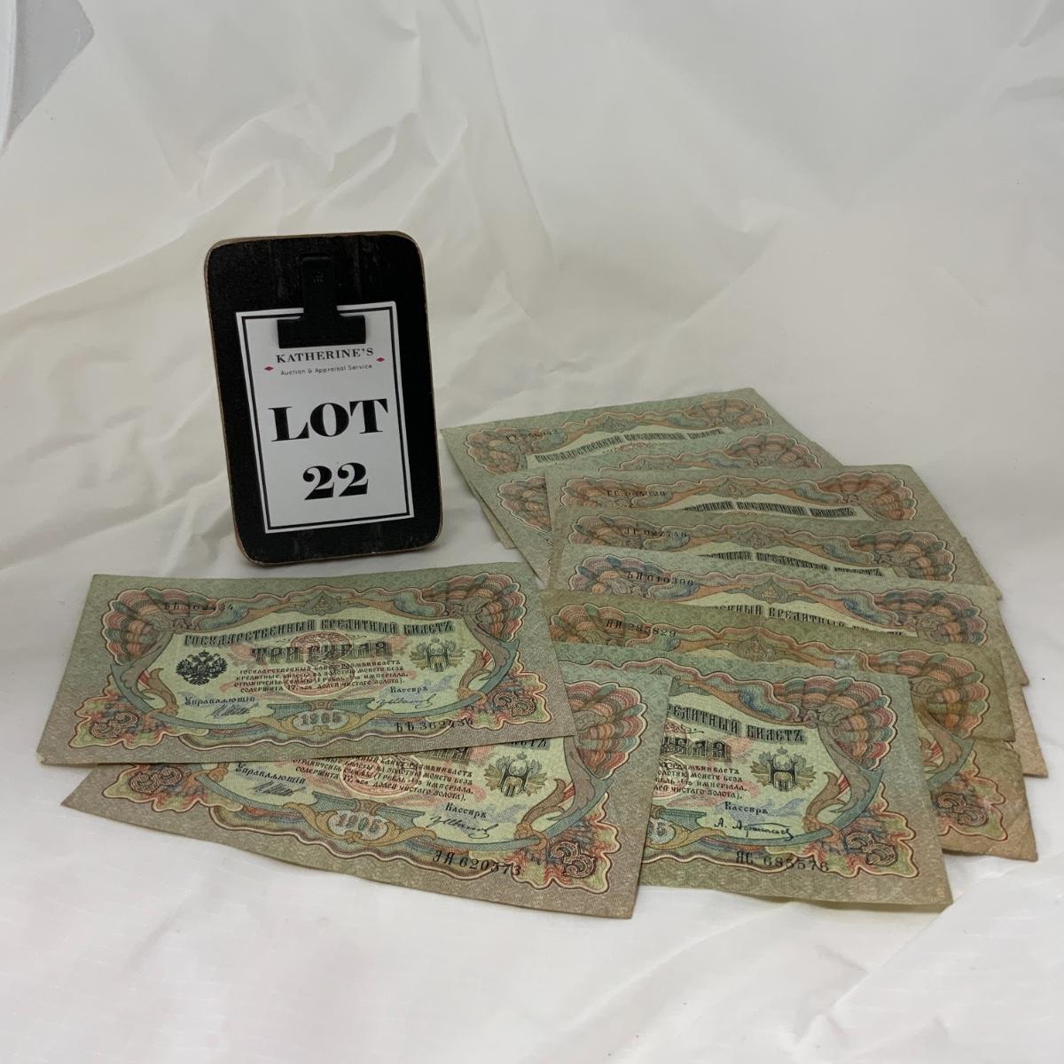 -22- CURRENCY | 9 Notes | 3 Rubles | 1905