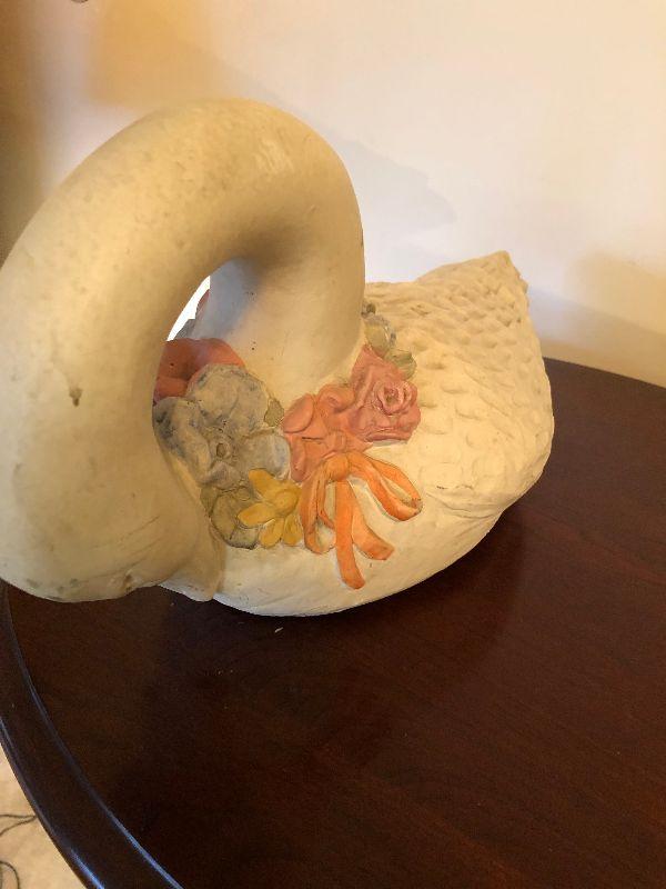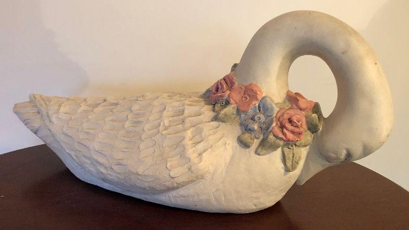 #22 Heavy Plaster Goose Statue with a Lovely Floral Collar