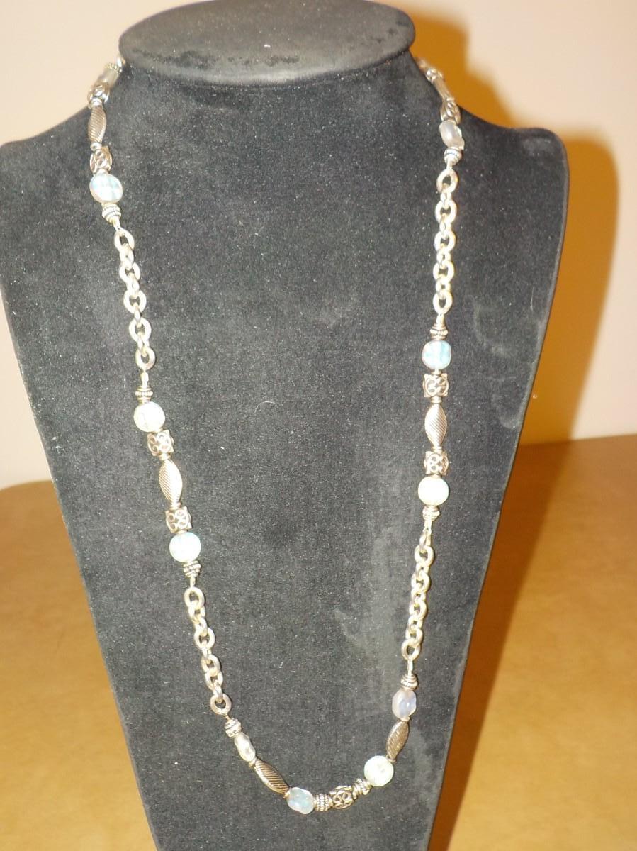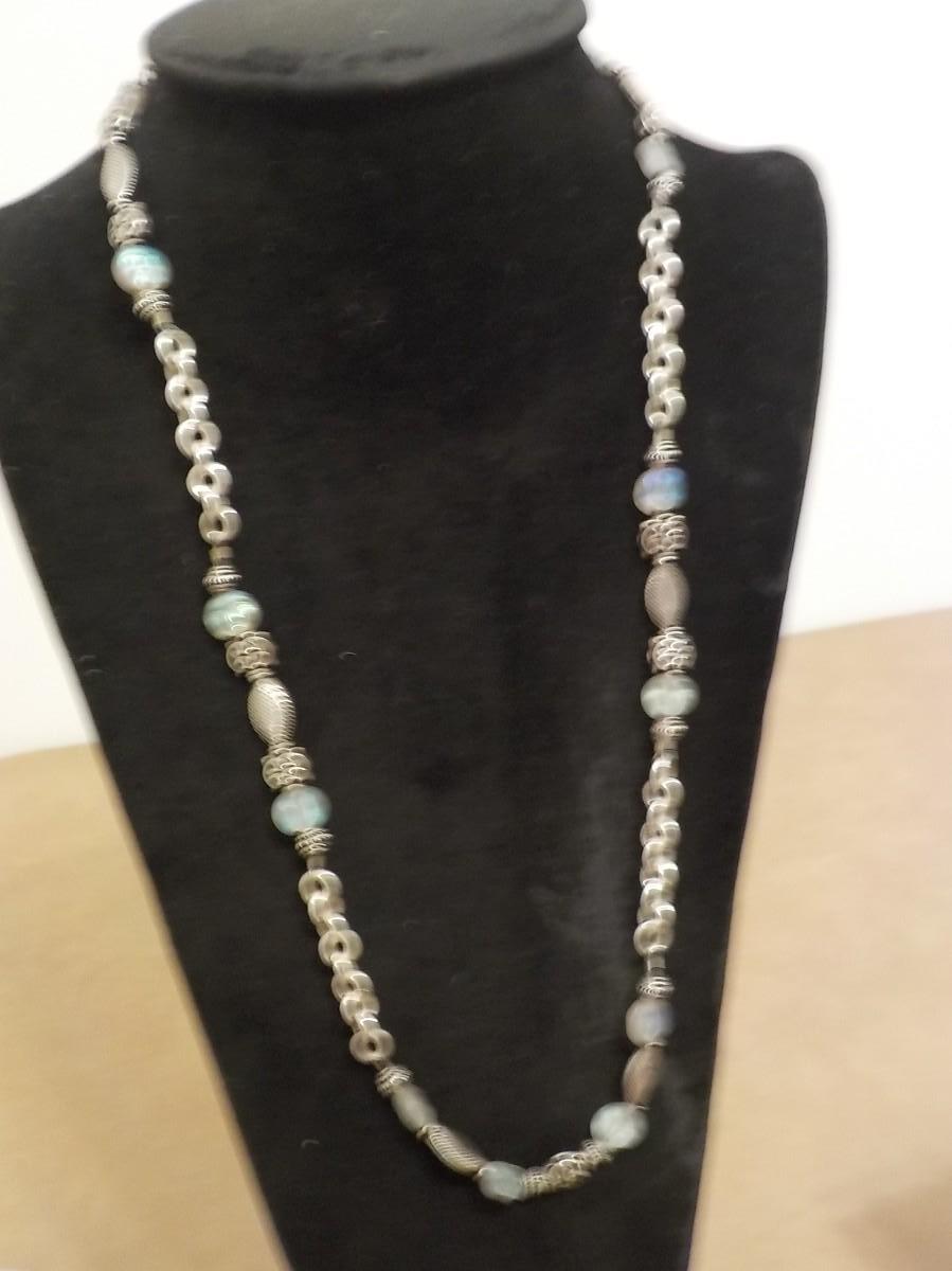22 in. Sterling silver loop and bead necklace.