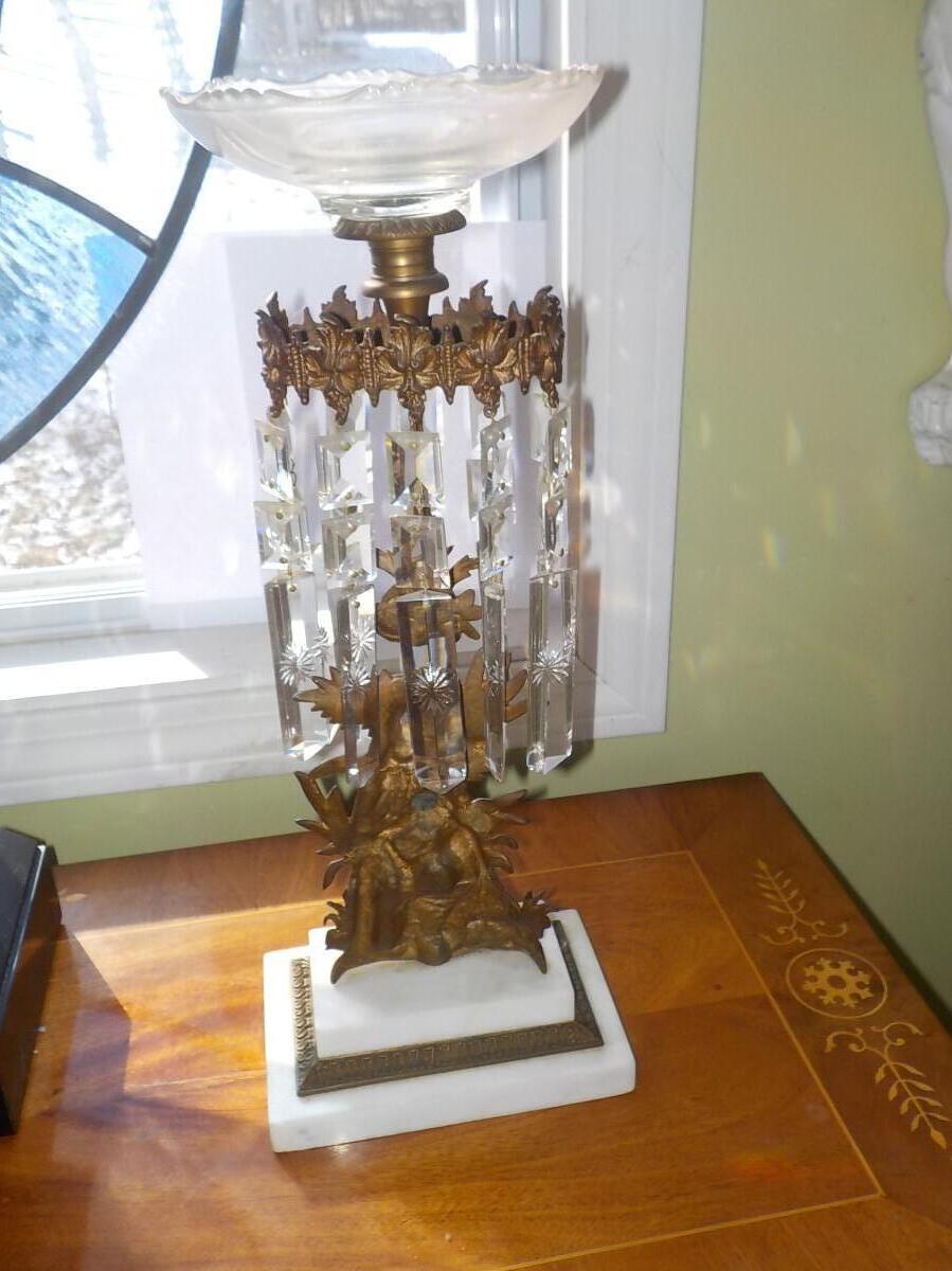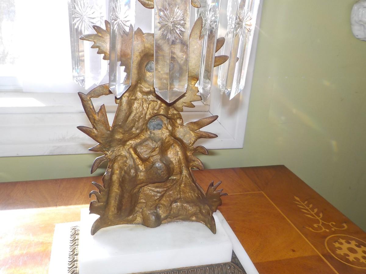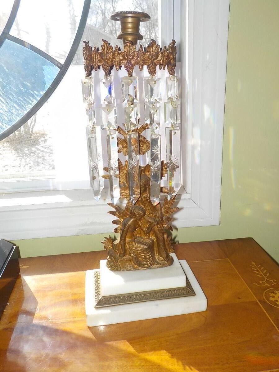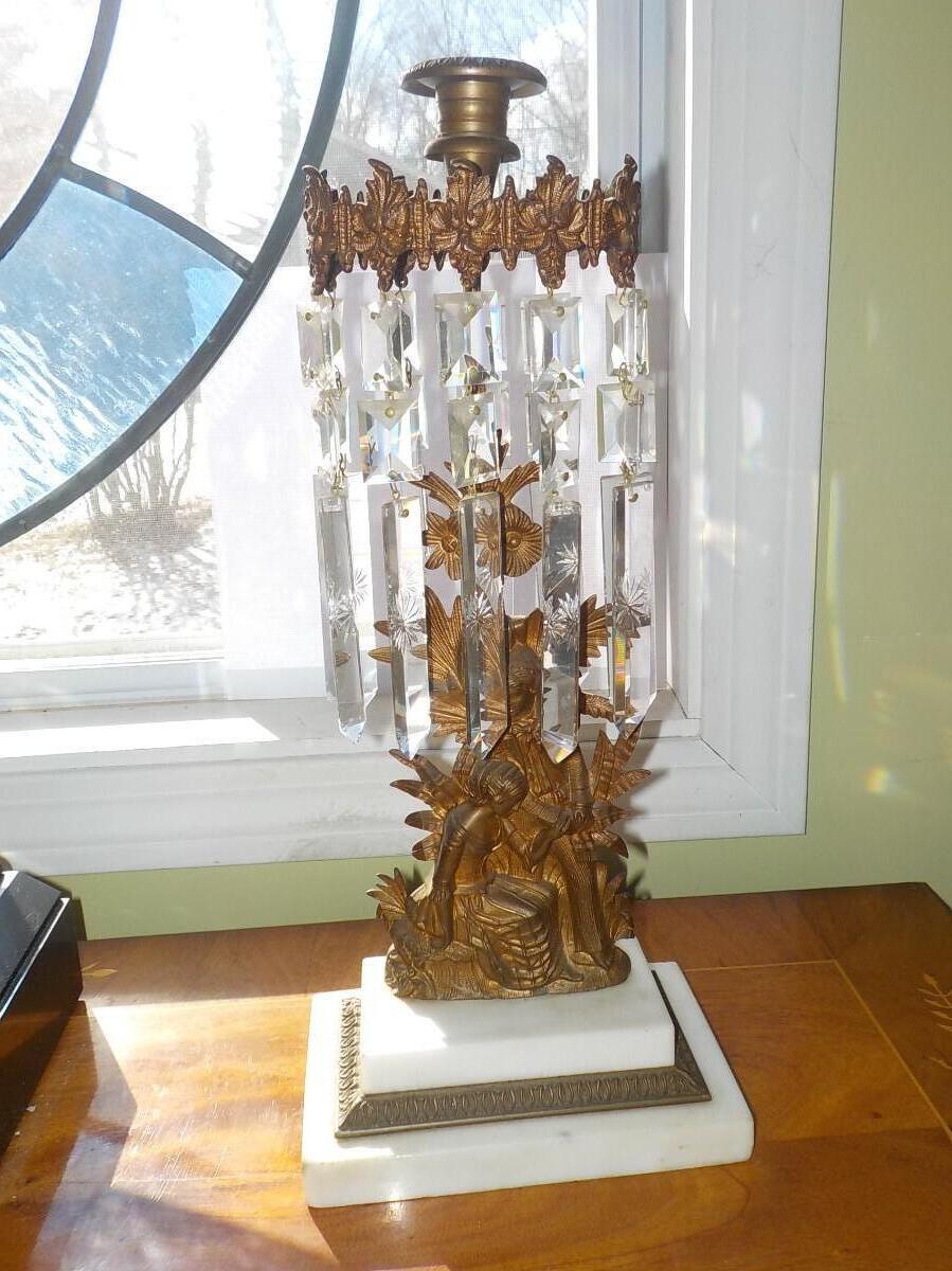 22 inch Victorian Era Crystal & Bronze Cherub candle holder.