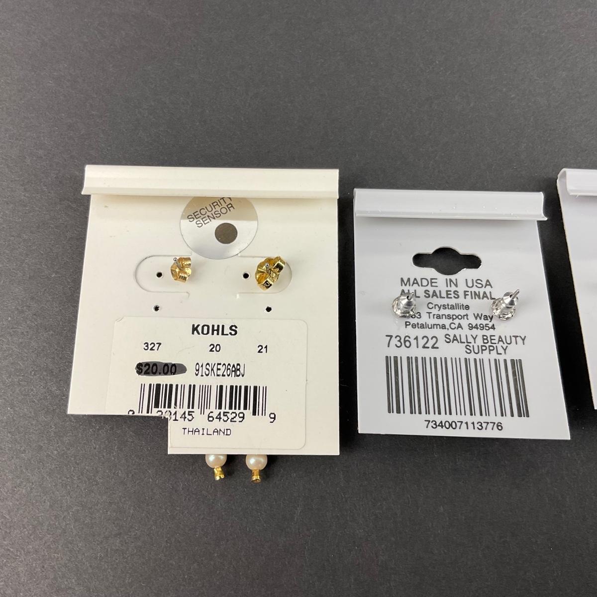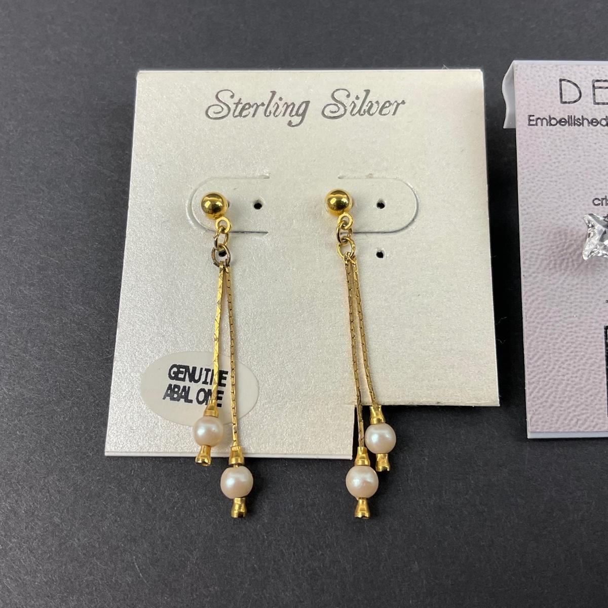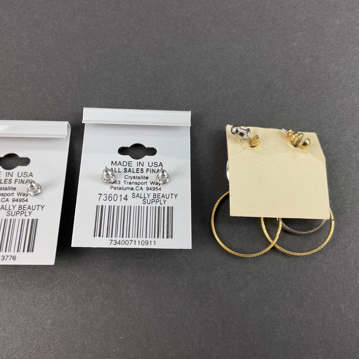 four pair of like new earrings on there cards. Two Swarovski crystal earrings. Please see photos for details and condition. Any condition statement is given as a courtesy to a client, is an opinion, and should not be treated as a statement of fact. Reference to condition written, oral or within a condition report shall not be regarded as a full account of condition and may not include all defects, alterations, or restorations. Absence of a condition report does not imply a lot is flawless or lacking imperfections or damage. Katherine’s Auction & Appraisal Service shall have no responsibility for any error or omission. Returns shall not be accepted on the basis of condition. ::: Shipping is available on this lot. If you require shipping you must let us know at the close of the auction. We will coordinate with you after the item has been won. Shipping fees will include insurance up to or exceeding the value of all items being mailed. If you have any questions regarding this lot please contact the auctioneer either via this website, by direct email or by phone. PICK UP TIMES and other important information can be found in the TERMS and DESCRIPTION of the auction. Please take a look for pertinent information. Thanks!