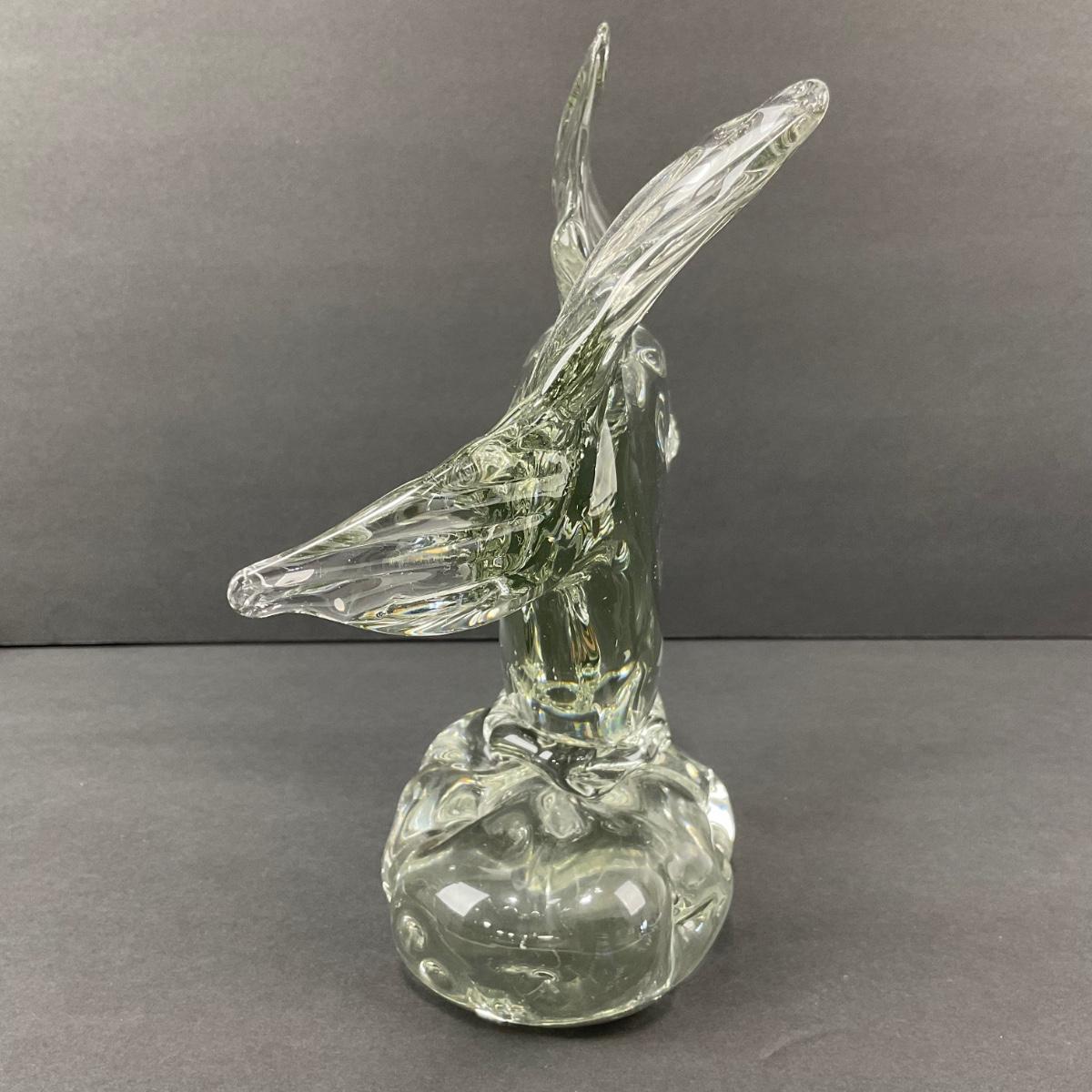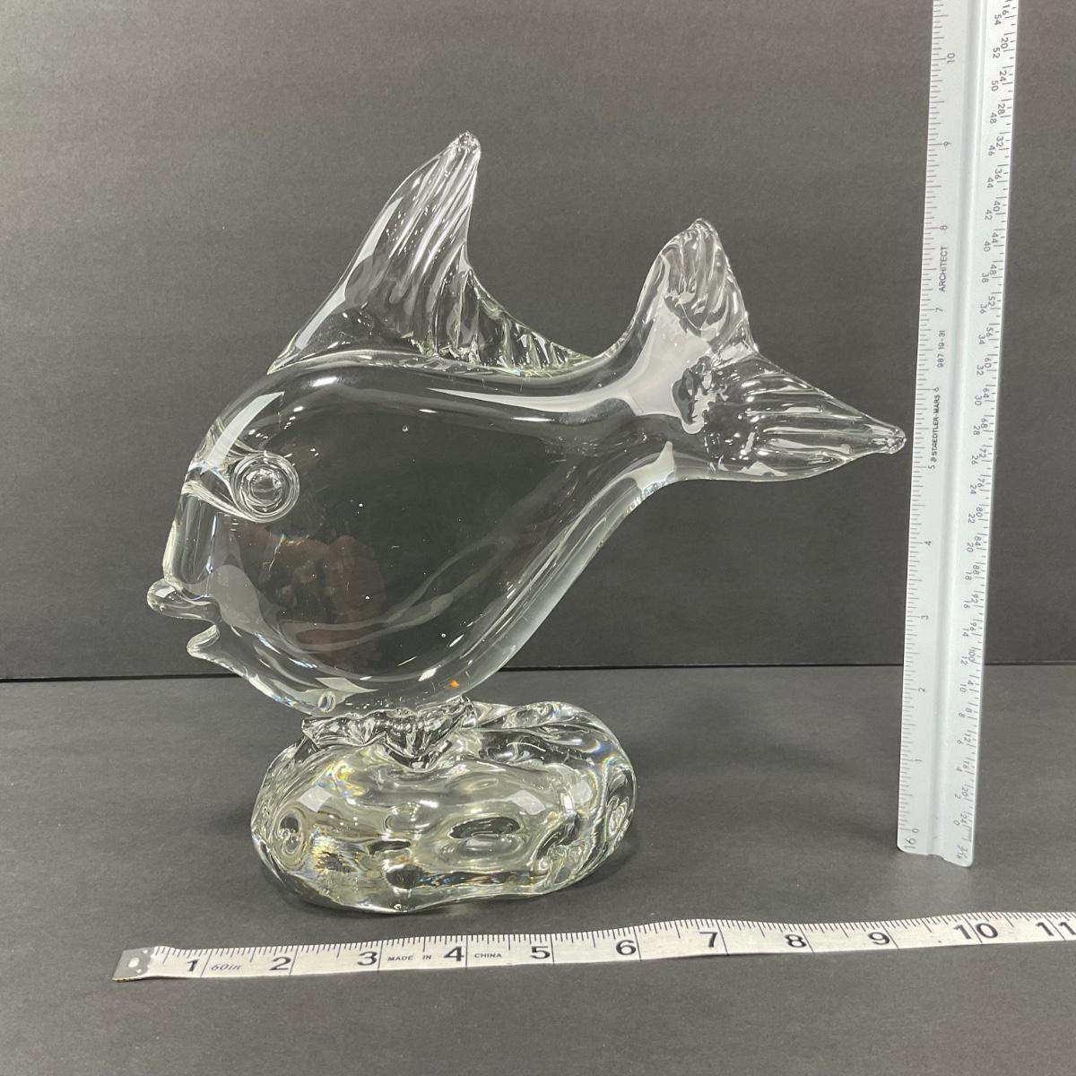 One vintage very heavy art glass Murano fish on waves this piece appears to be in good condition. Please see photos for details and condition. Any condition statement is given as a courtesy to a client, is an opinion, and should not be treated as a statement of fact. Reference to condition written, oral or within a condition report shall not be regarded as a full account of condition and may not include all defects, alterations, or restorations. Absence of a condition report does not imply a lot is flawless or lacking imperfections or damage. Katherine’s Auction & Appraisal Service shall have no responsibility for any error or omission. Returns shall not be accepted on the basis of condition. ::: Shipping is available on this lot. If you require shipping you must let us know at the close of the auction. We will coordinate with you after the item has been won. Shipping fees will include insurance up to or exceeding the value of all items being mailed. If you have any questions regarding this lot please contact the auctioneer either via this website, by direct email or by phone. PICK UP TIMES and other important information can be found in the TERMS and DESCRIPTION of the auction. Please take a look for pertinent information. Thanks!