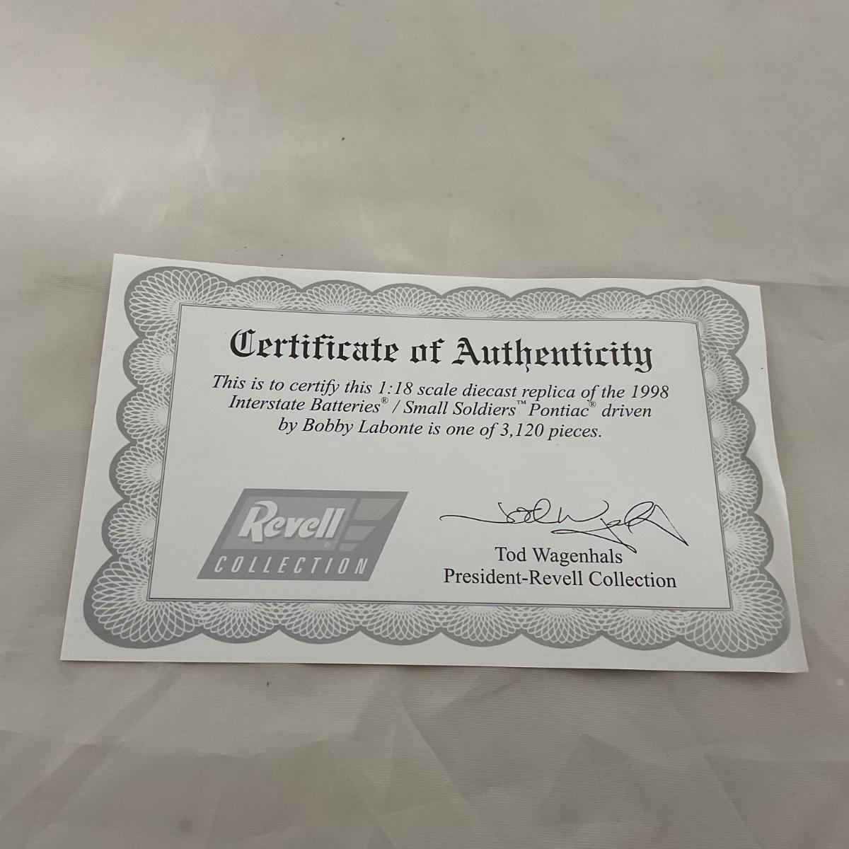 One NASCAR die cast 1:18 scale 1998 Interstate Batteries and Small Soldiers Pontiac figure. Bobby Labonte. Comes with a Certificate of Authenticity. Please see photos for details and condition. ::: Shipping is available on this lot. If you require shipping you must let us know at the close of the auction. We will coordinate with you after the item has been won. Shipping fees will include insurance up to or exceeding the value of all items being mailed. If you have any questions regarding this lot please contact the auctioneer either via this website, by direct email or by phone. PICK UP TIMES and other important information can be found in the TERMS and DESCRIPTION of the auction. Please take a look for pertinent information. Thanks!