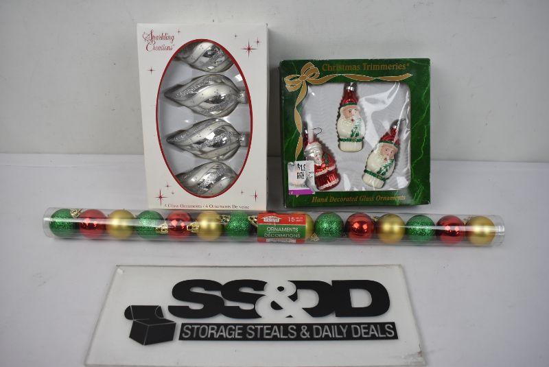 22 Ornaments: 4 Silver, 3 Santa, 15 Small Ball
