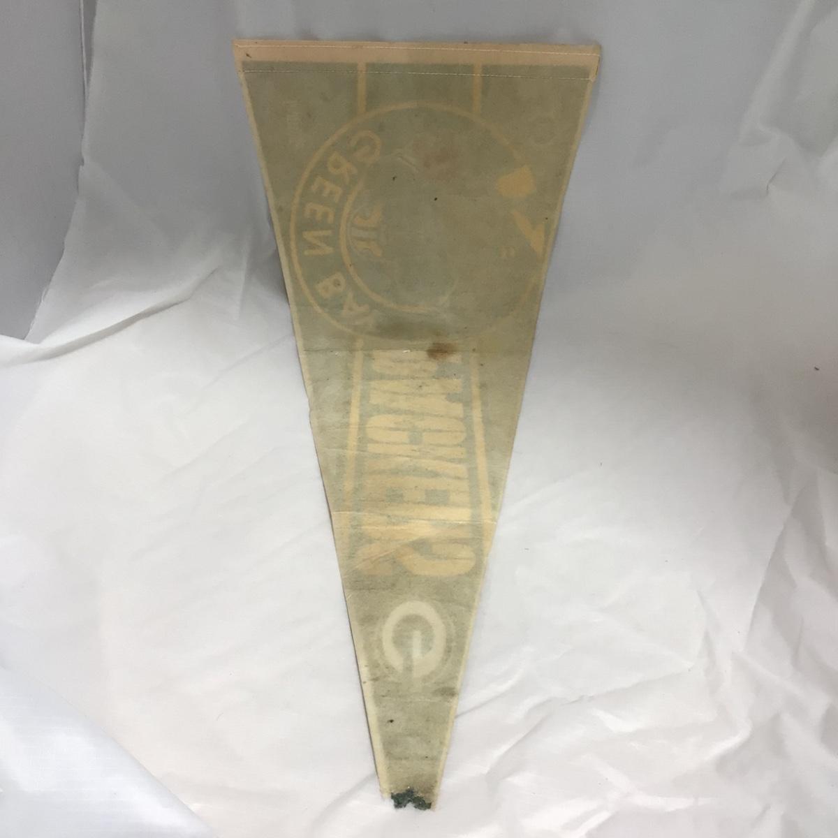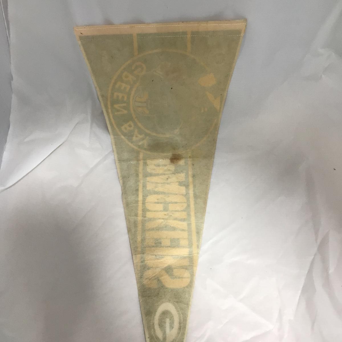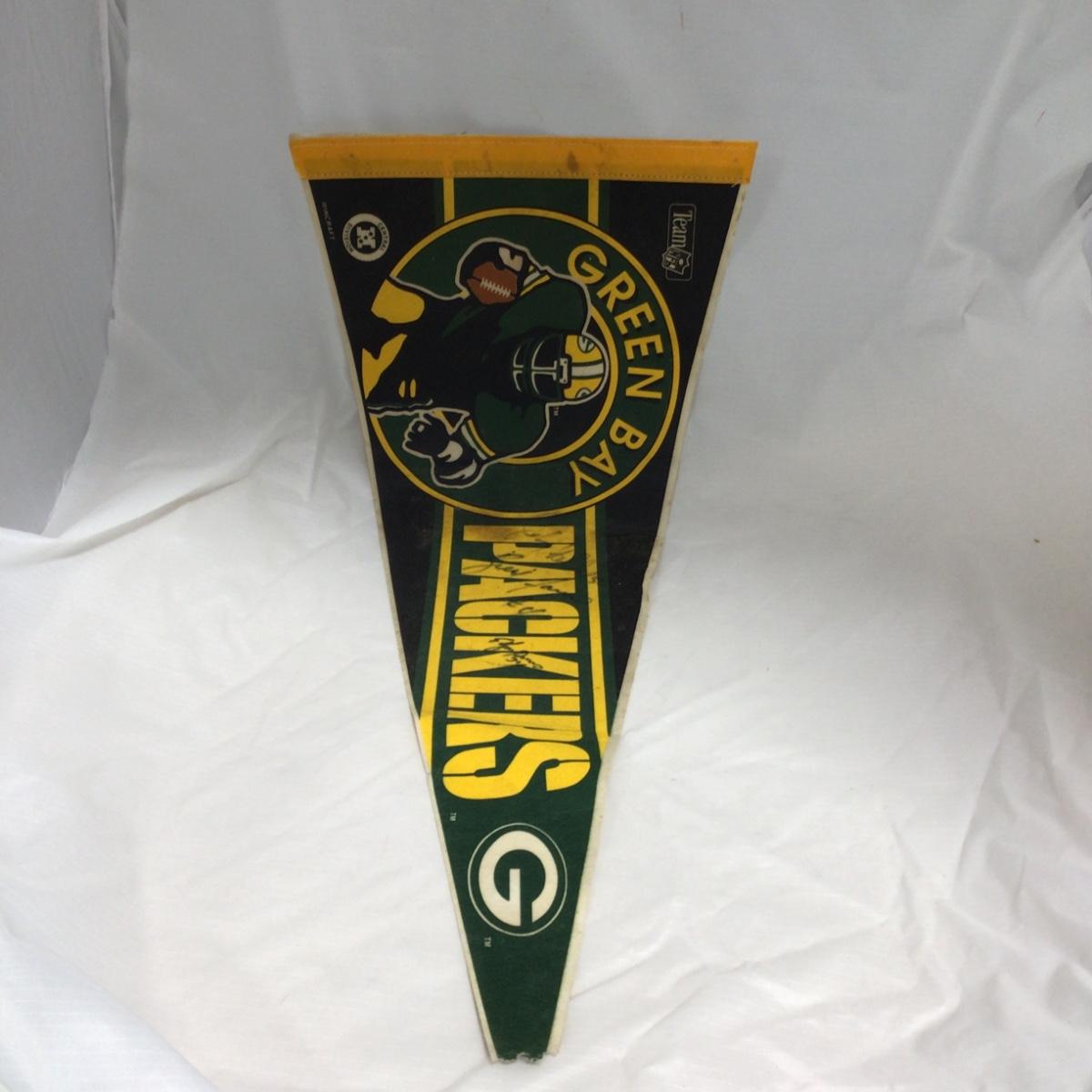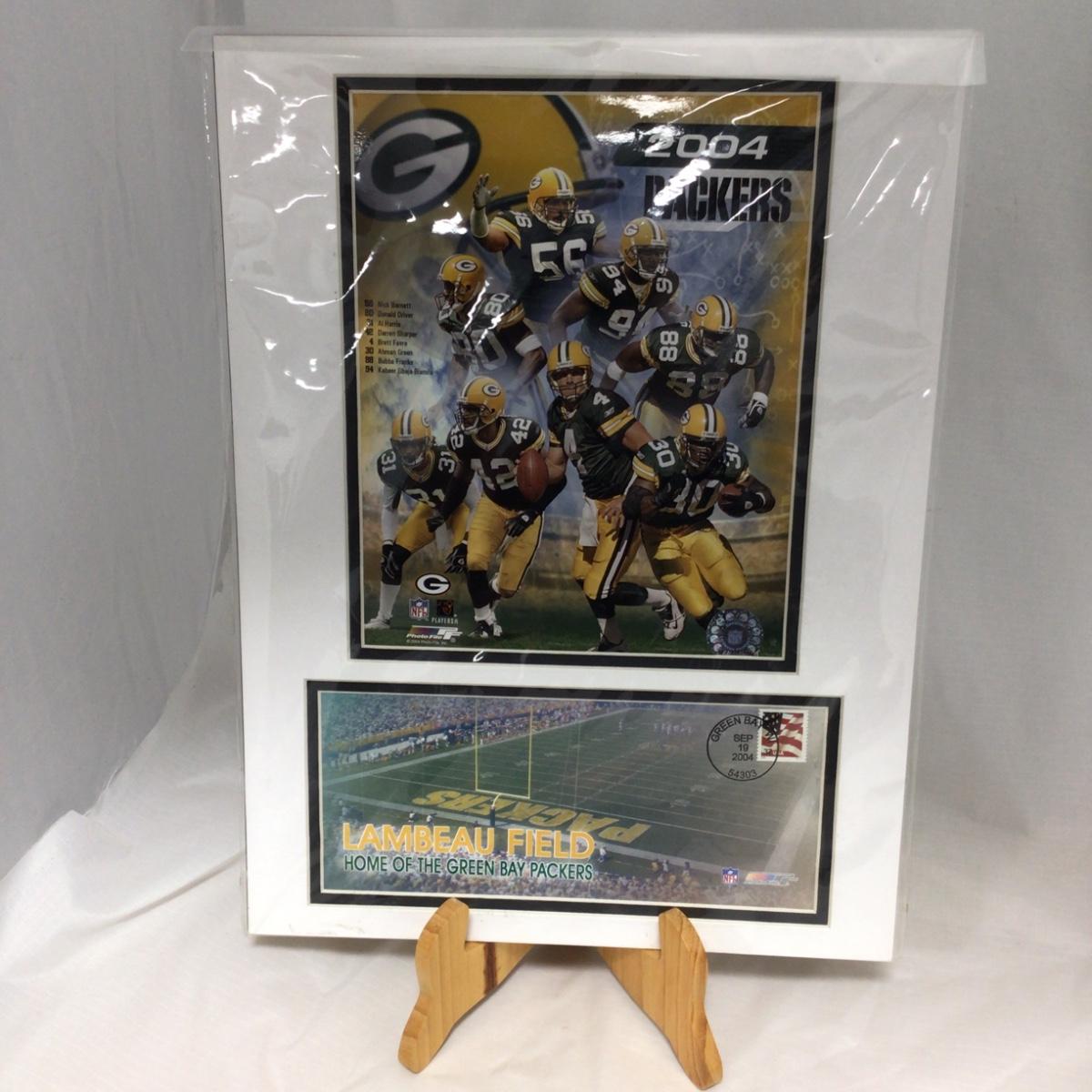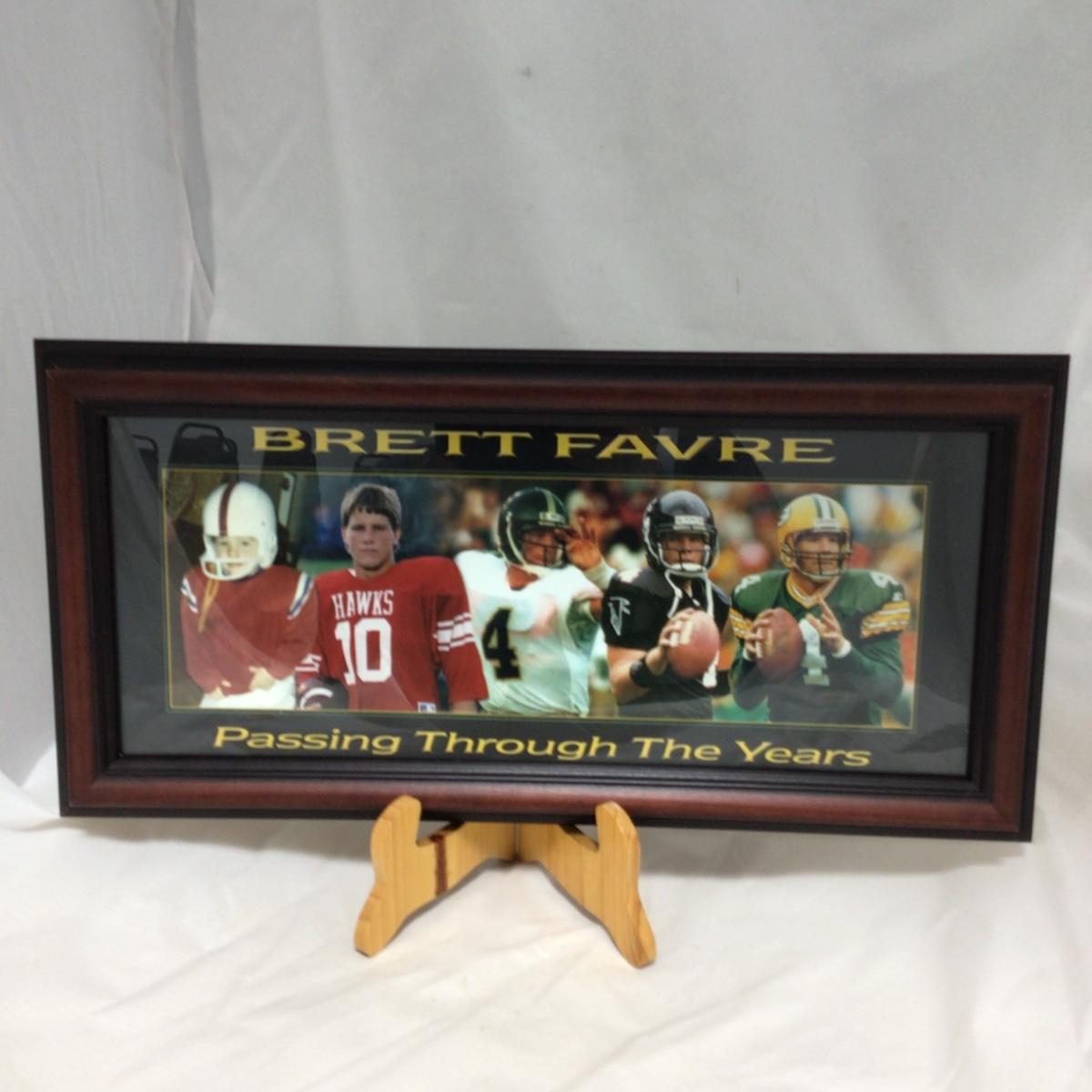 Signed Pennant with no certificate of authenticity, it is assumed authentic but not guaranteed. Pennant is in rough shape, 27 inches long. Framed Brett Farve thought the years, 10 inches by 20.5 inches. Matted 2004 Packers photograph 12 inches by 16 inches.
