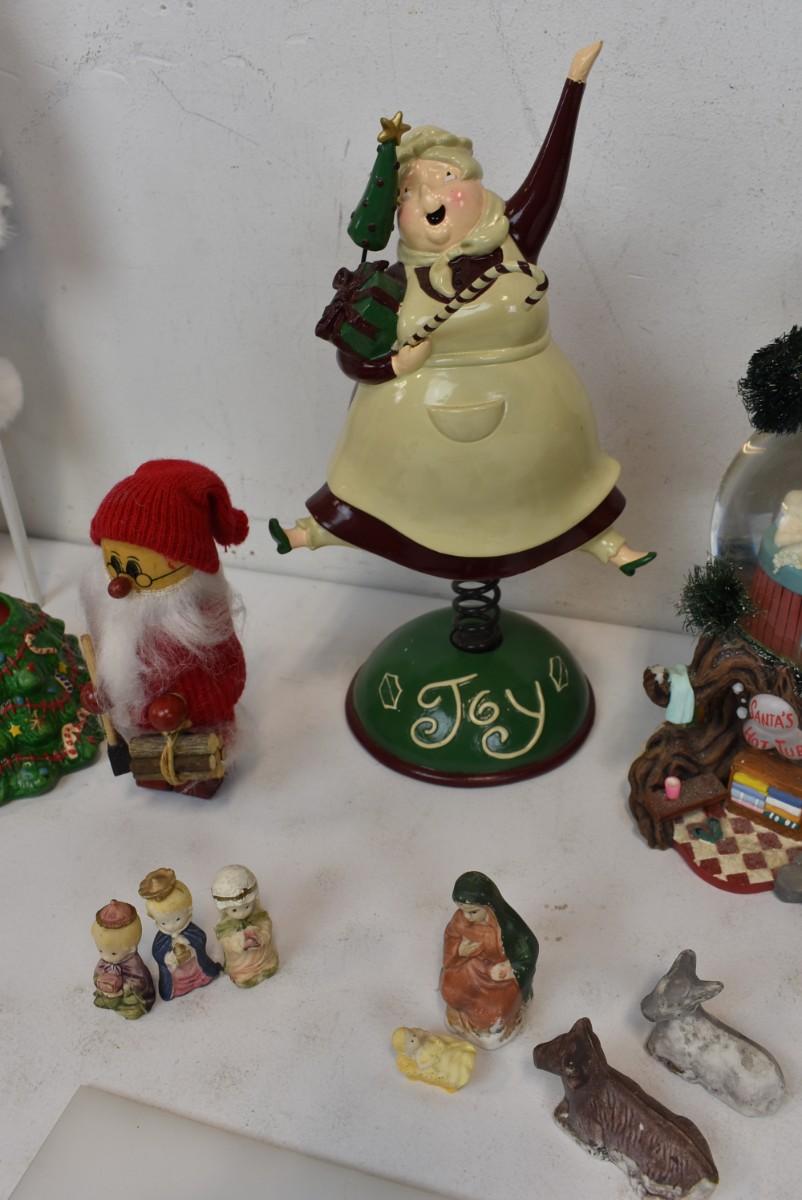 22 pc CHristmas Decor: Santa's Hot Tub, Small Nativity (missing Joseph) Tree Candle
