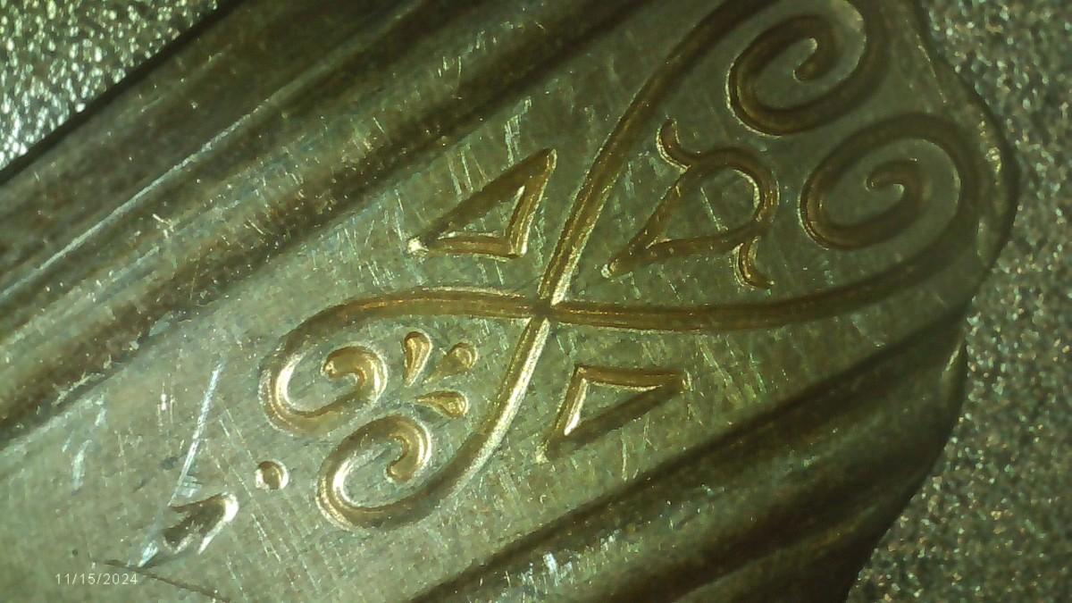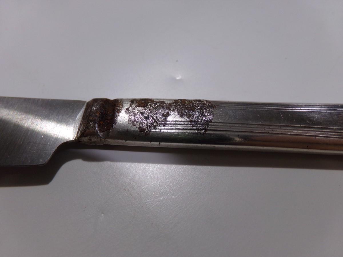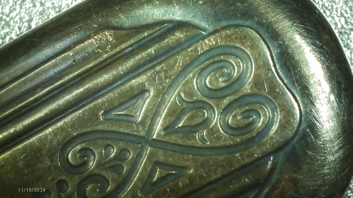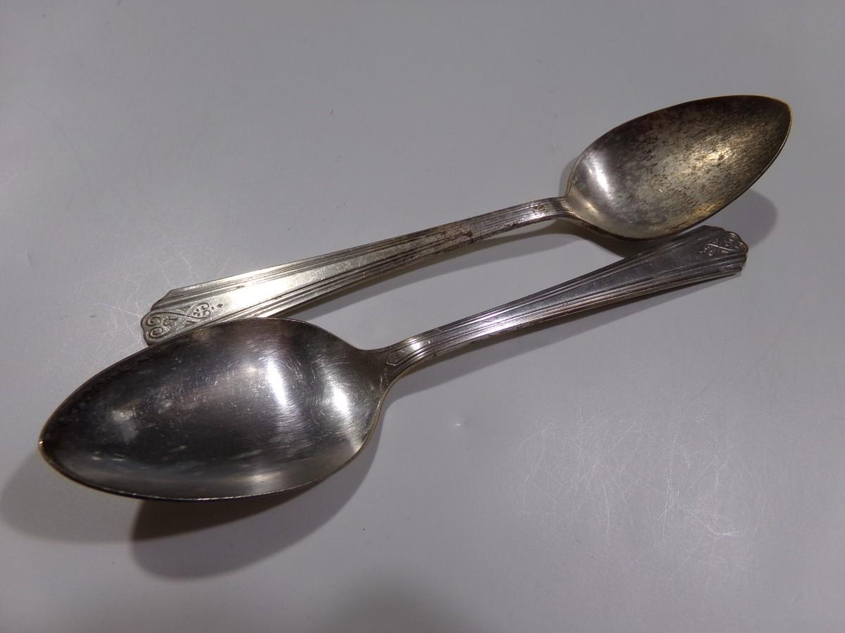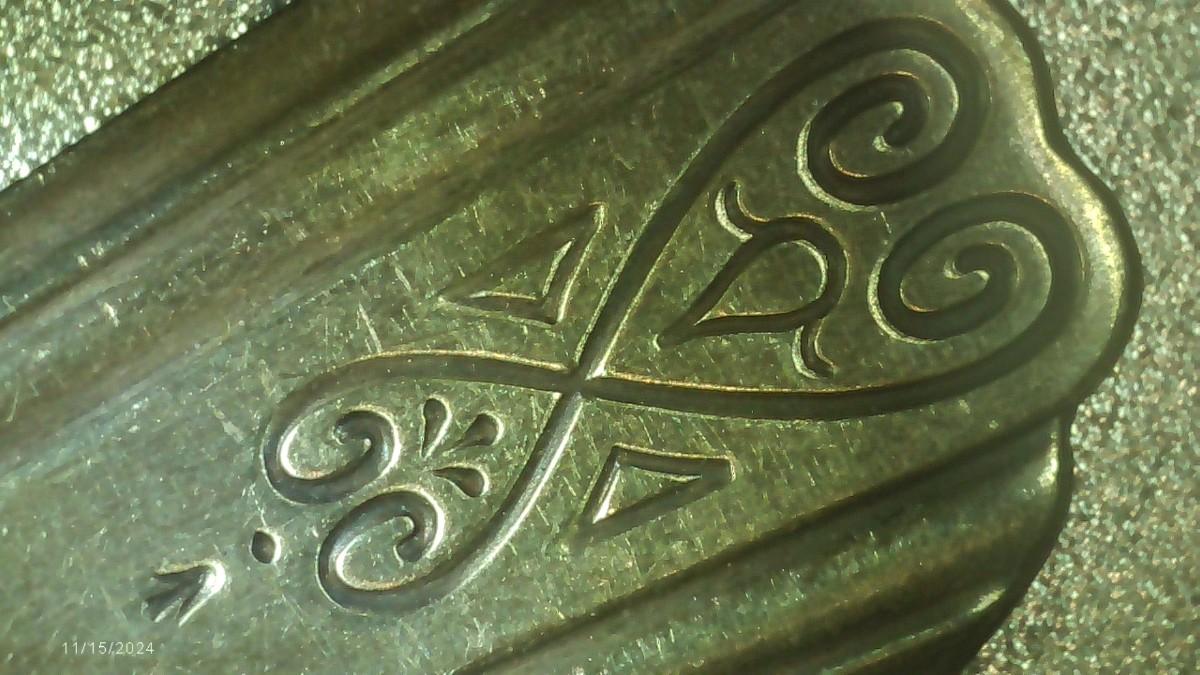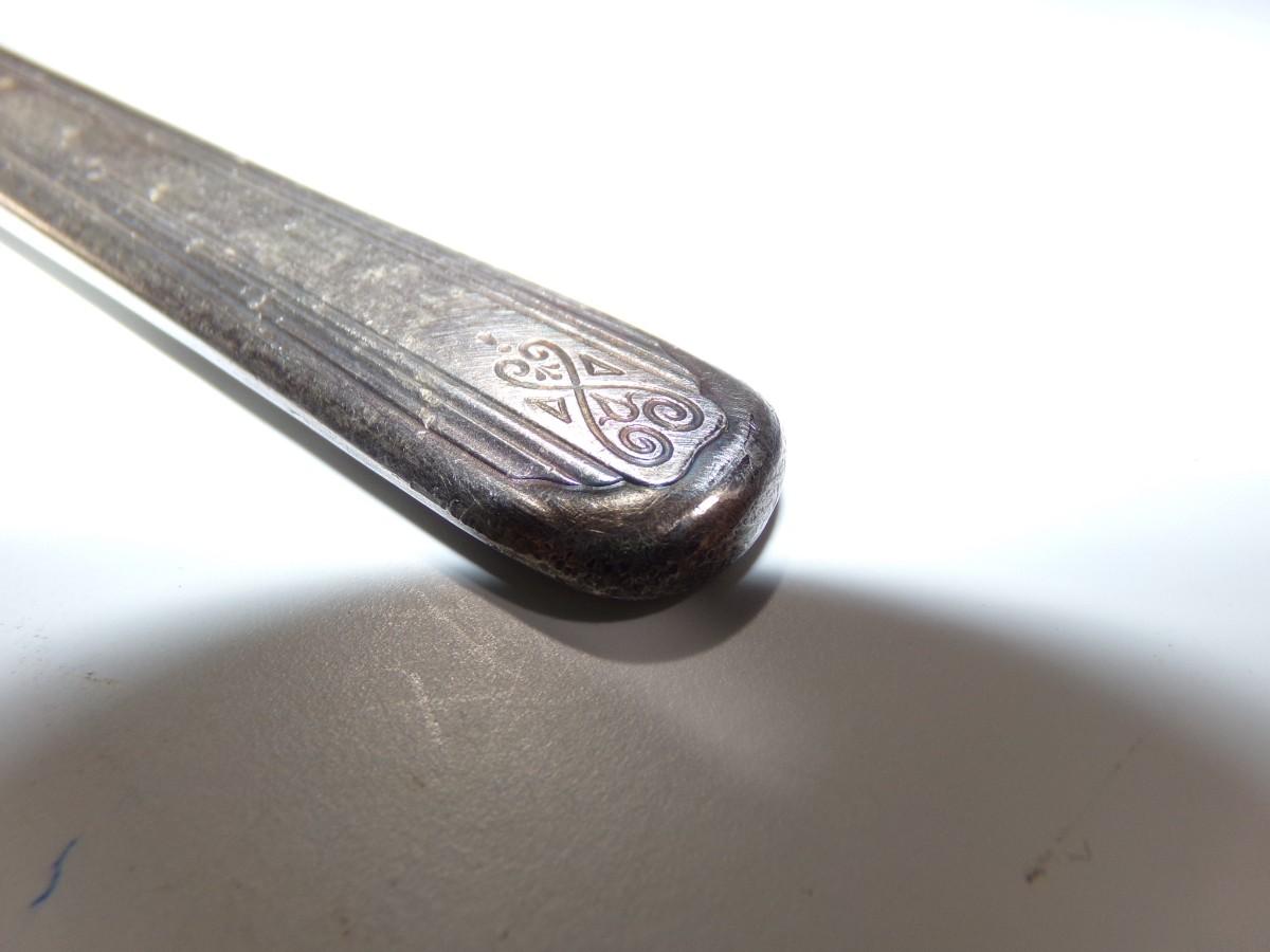 lot of 22 pcs. all same pattern, 10 forks, 6 marked Moderne Silver Plate and 4 marked NSCo E.P.N.S., Not typical silver plate but shows tarnish?? Unusual, magnetic, 2 newer style tea spoons, labeled NSCo E.P.N.S. Same pattern as the forks.10 dinner knives, not labeled but same pattern as the forks & spoons. Some knife handles are in very bad shape