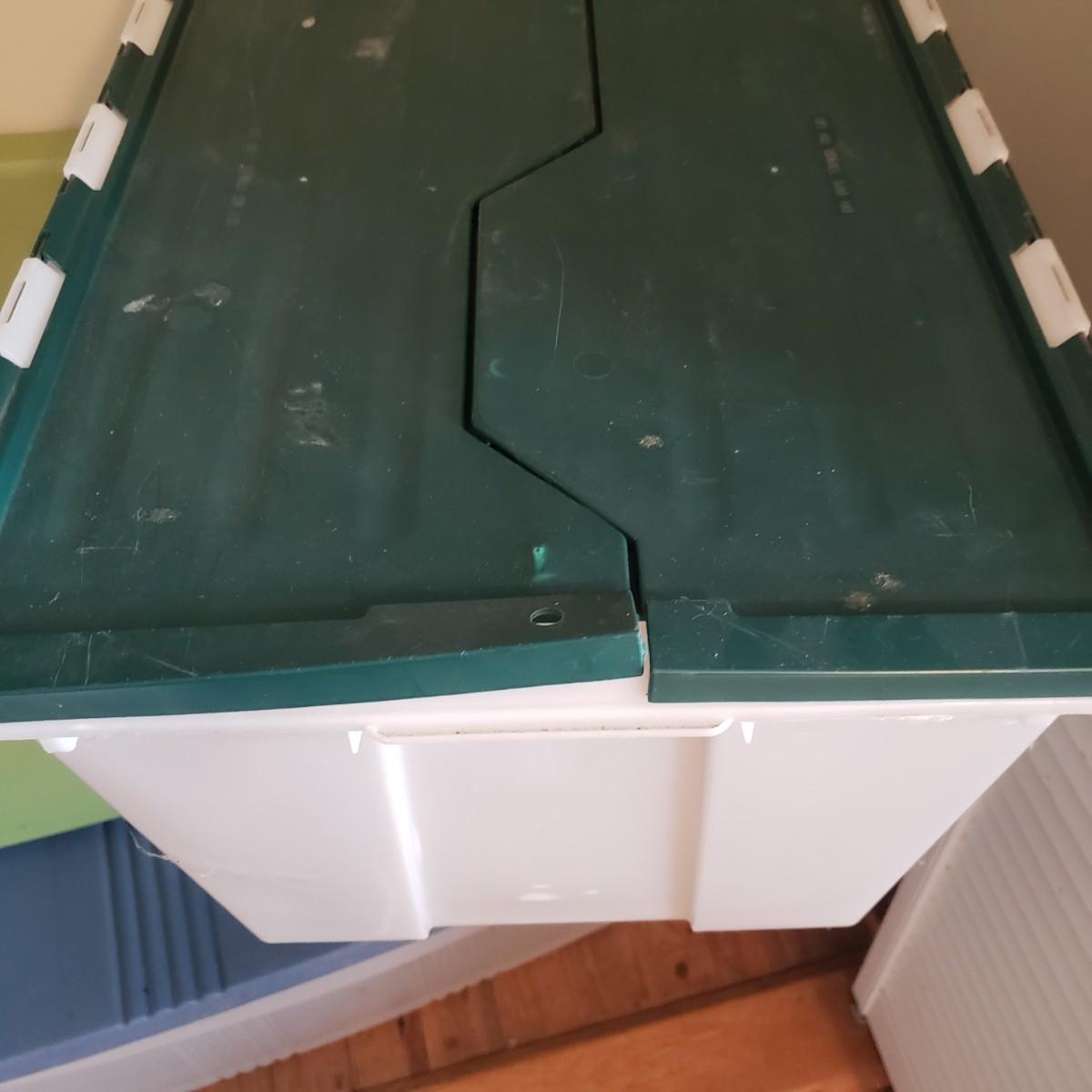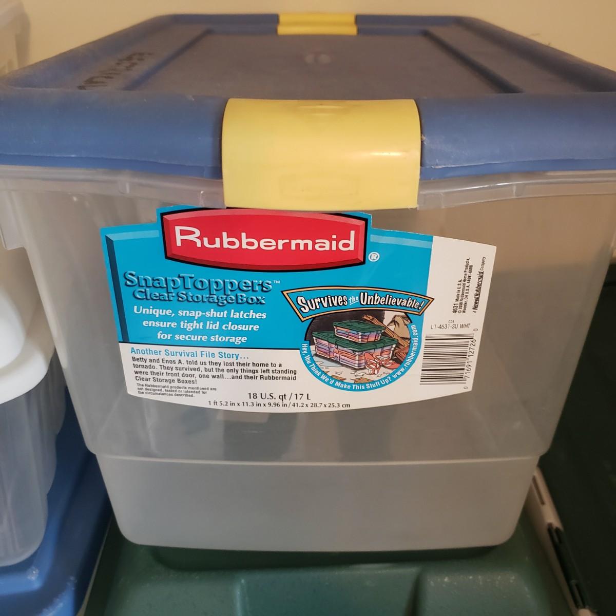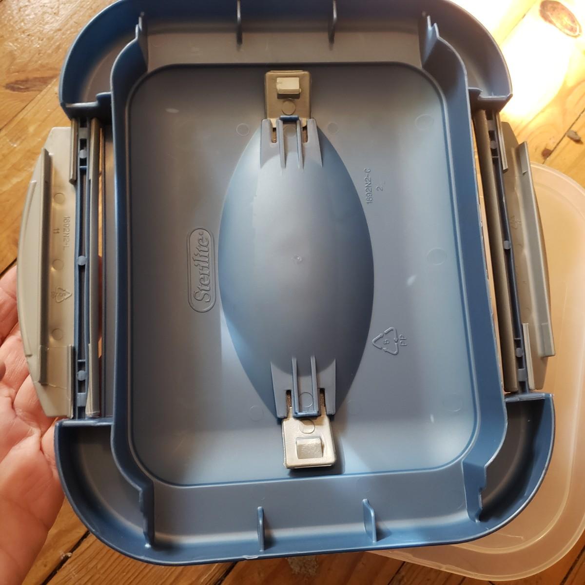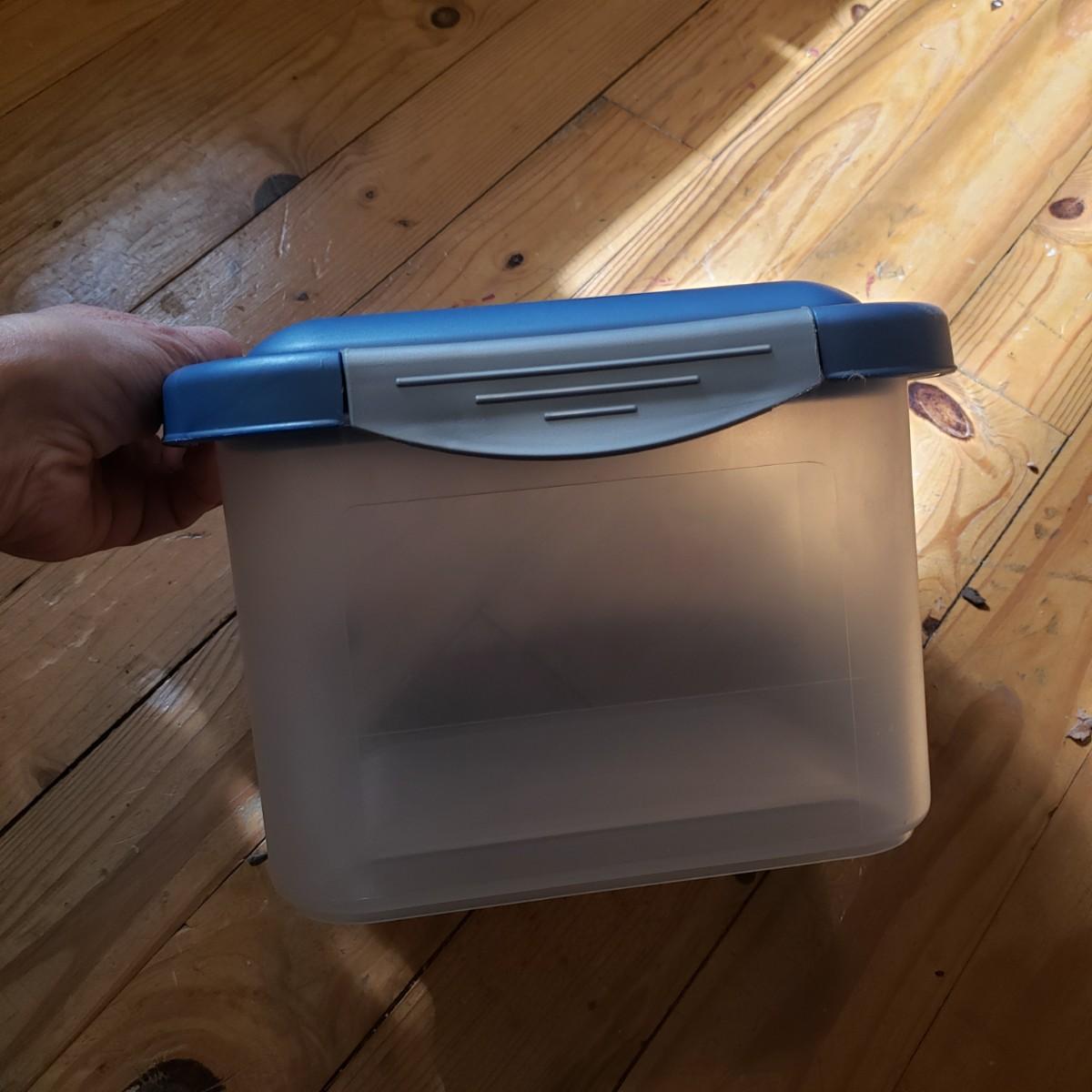 This plastic bin lot has every size you need! The seven small blue lidded Sterlite bins did not make the group shot, but are included! See pictures for sizes and condition. Bins appear to be blemish free, only one bin with the fold together lid was bent, but still shut all the way. The bins could use a washing, as some are dirty.
