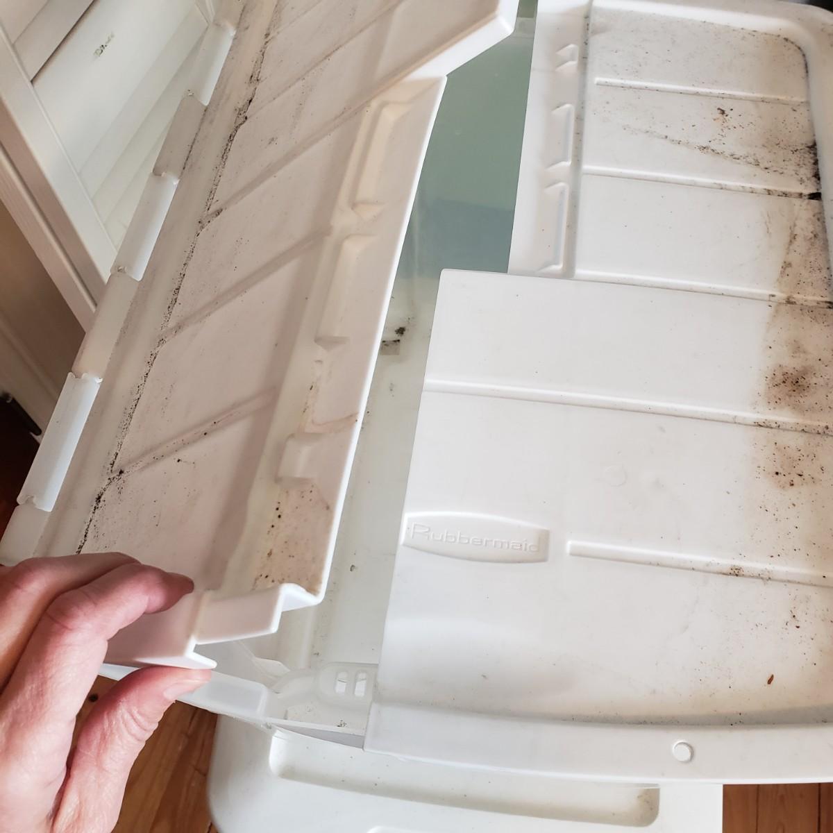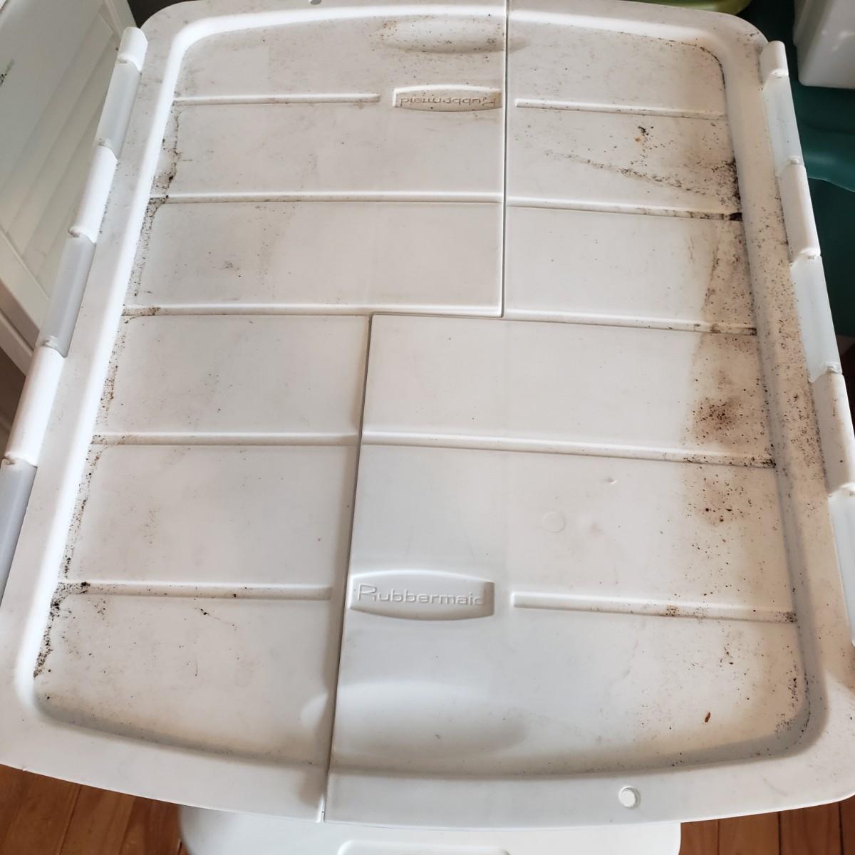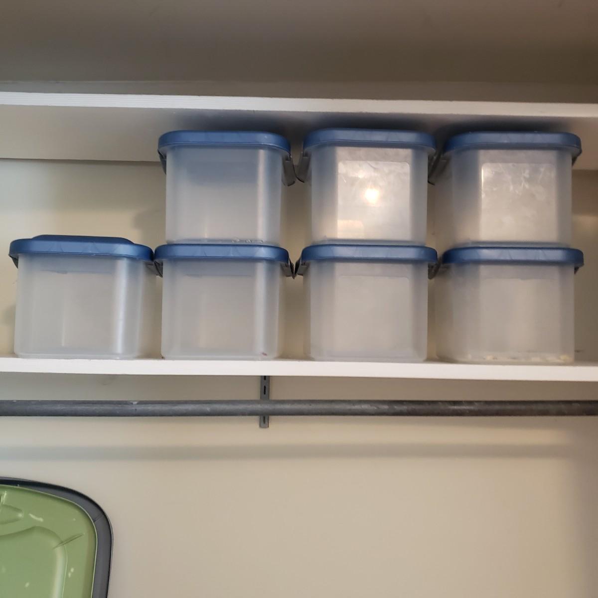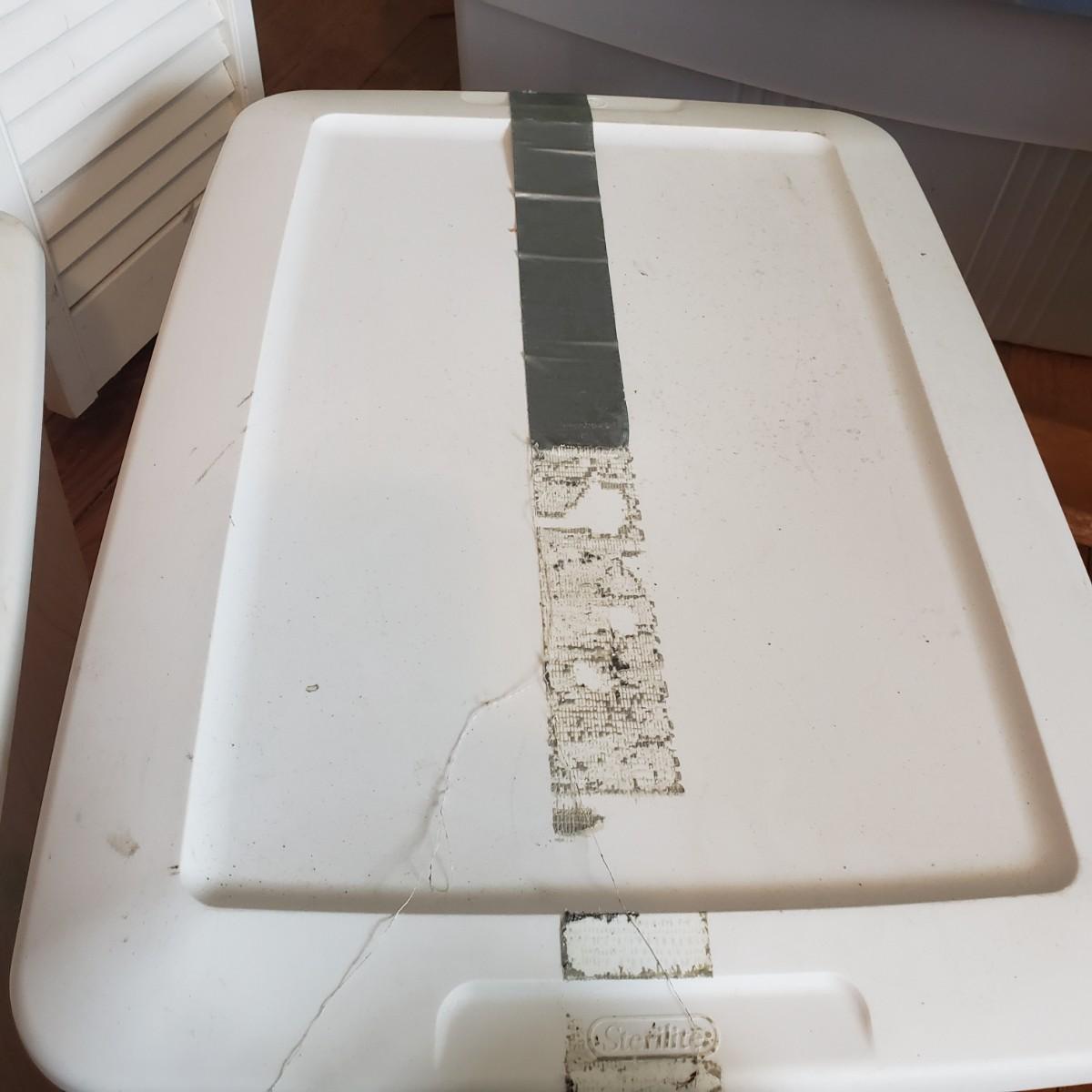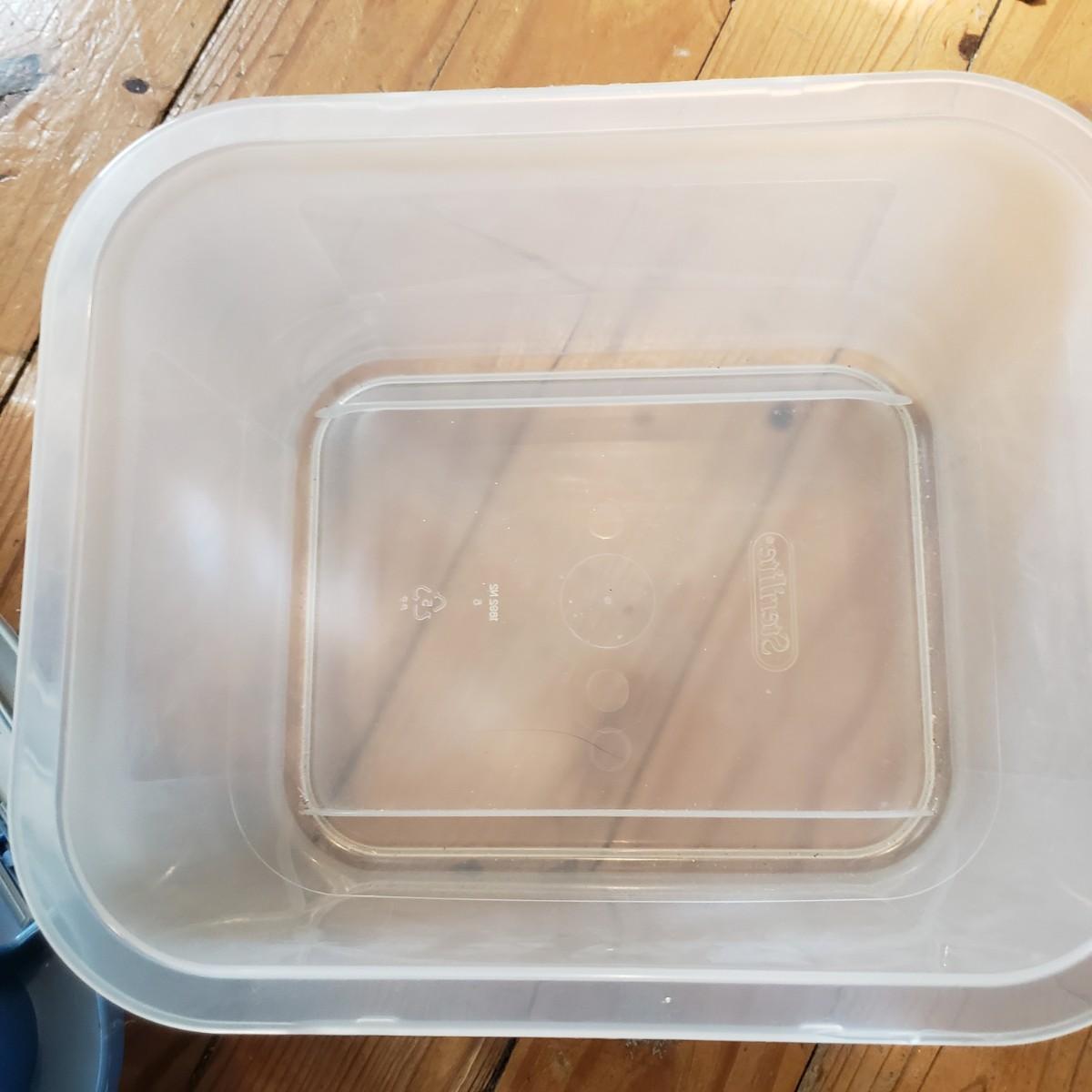 This plastic bin lot has every size you need! The seven small blue lidded Sterlite bins did not make the group shot, but are included! See pictures for sizes and condition. Bins appear to be blemish free, only one bin with the fold together lid was bent, but still shut all the way. The bins could use a washing, as some are dirty.