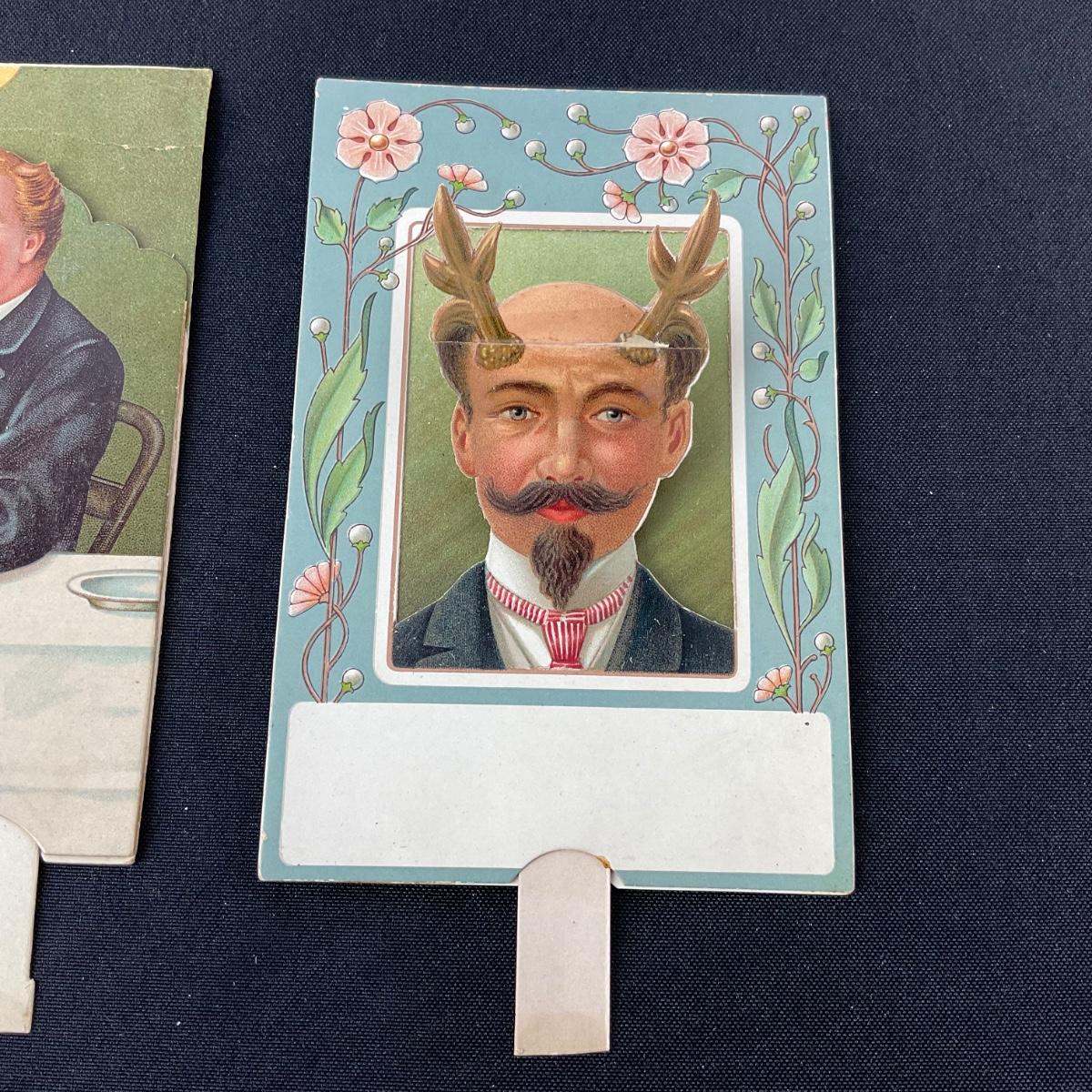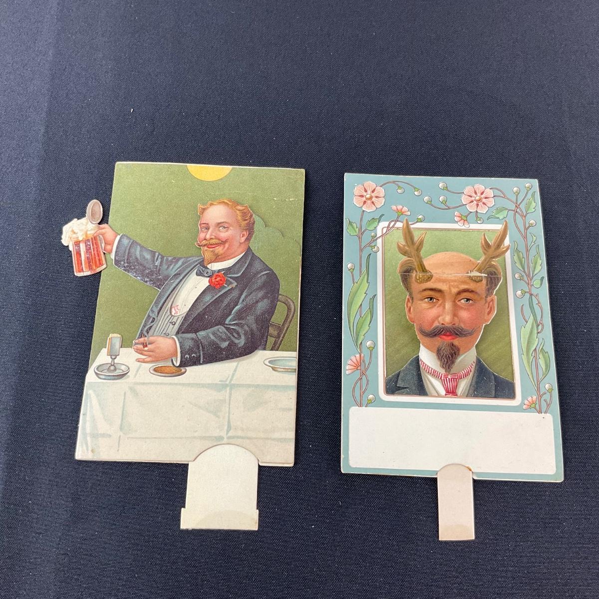 Two vintage interactive postcards one is repaired with visible tape but otherwise appear to be in good shape. Please see photos for details and condition. Any condition statement is given as a courtesy to a client, is an opinion, and should not be treated as a statement of fact. Reference to condition written, oral or within a condition report shall not be regarded as a full account of condition and may not include all defects, alterations, or restorations. Absence of a condition report does not imply a lot is flawless or lacking imperfections or damage. Katherine’s Auction & Appraisal Service shall have no responsibility for any error or omission. Returns shall not be accepted on the basis of condition. ::: Shipping is available on this lot. If you require shipping you must let us know at the close of the auction. We will coordinate with you after the item has been won. Shipping fees will include insurance up to or exceeding the value of all items being mailed. If you have any questions regarding this lot please contact the auctioneer either via this website, by direct email or by phone. PICK UP TIMES and other important information can be found in the TERMS and DESCRIPTION of the auction. Please take a look for pertinent information. Thanks!