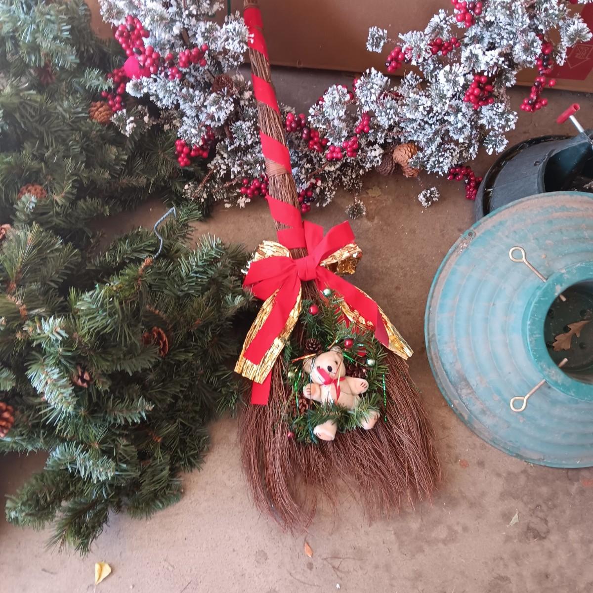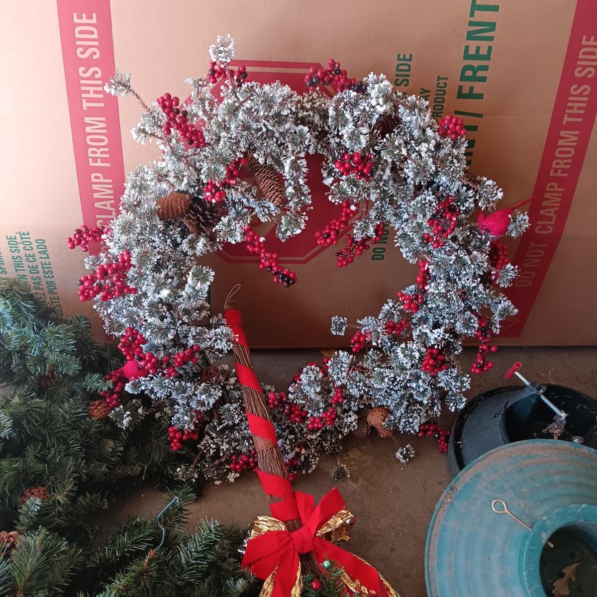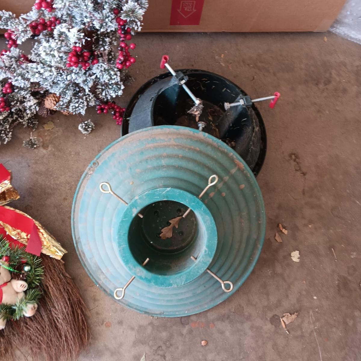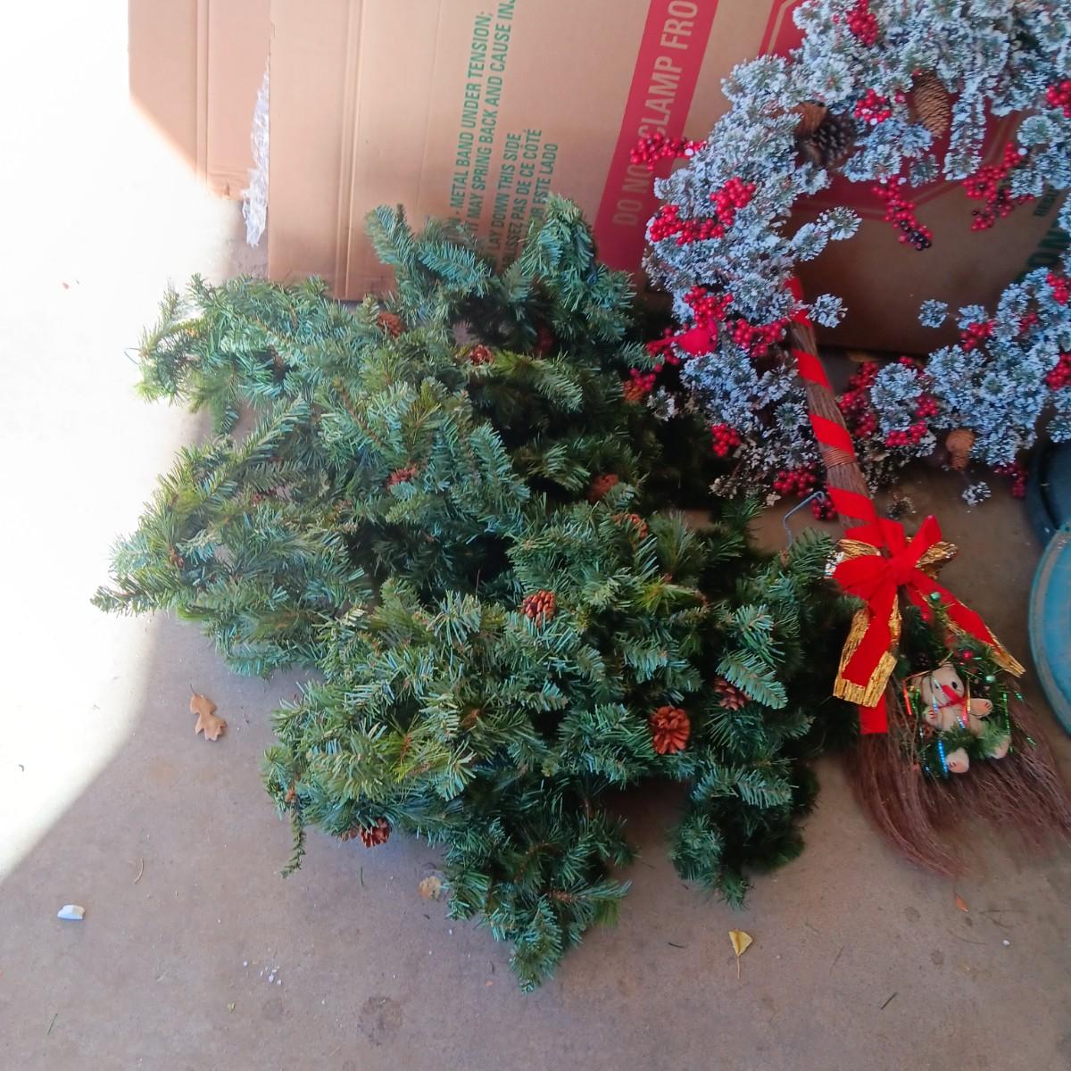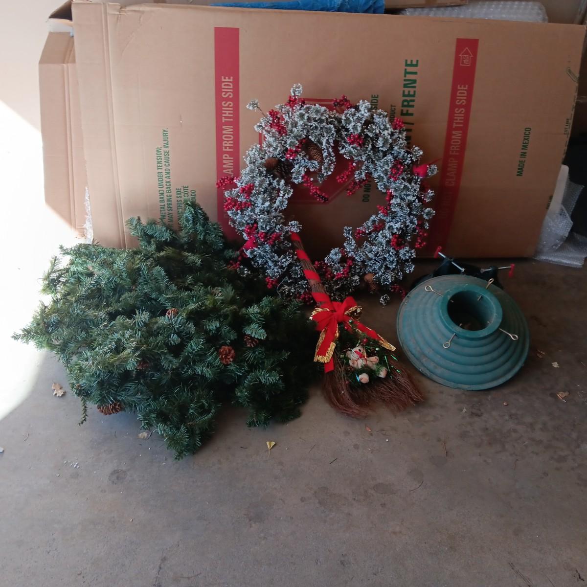 22 TREE STANDS, EVERGREEN GARLAND W/PINECONES AND A WREATH